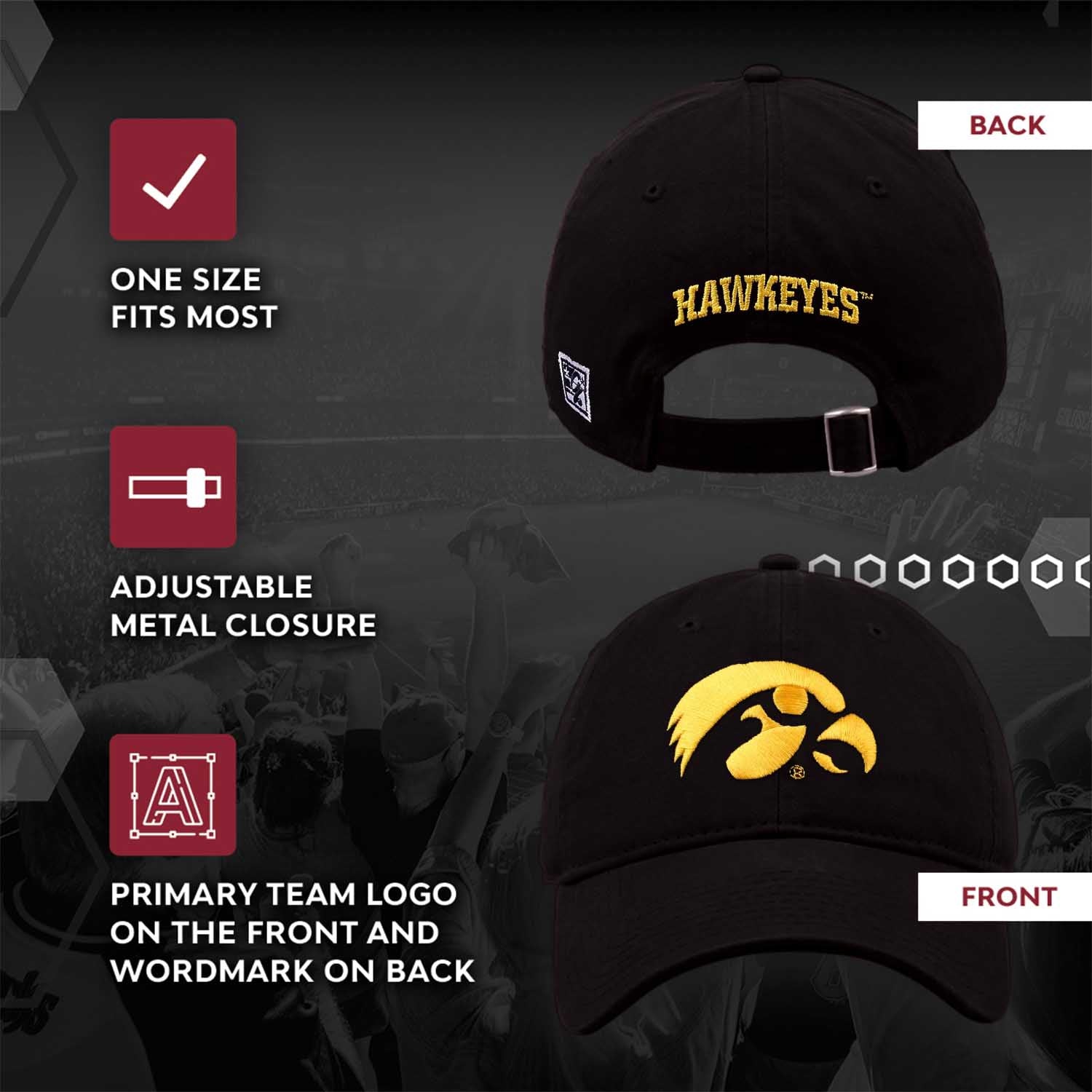This Iowa hat is a must-have for any Hawkeyes fan! These college hats are made from 100% cotton and garment-washed twill, and are durable and comfortable to wear. The garment-washed fabric gives this vivid Iowa hat a cool, stylish, and fashionable look. The Iowa Hawkeyes logo is embroidered on the front, with the team wordmark on the back. The relaxed, unstructured hat design feels soft & easy to wear, making it a good dad baseball hat for everyday wear. The adjustable metal closure ensures a one size fits all. If you are looking for the perfect Iowa gift for Father's Day, look no further than the Iowa Hawkeyes dad hat! Wear it with the classic Iowa Hawkeyes apparel on game day with your Iowa Hawkeyes clothes and Iowa Hawkeyes merch, or wear it out running errands. This Iowa cap is a staple in every Hawkeyes fan's apparel. Show your support for Iowa this baseball hat. Show your love for soccer, baseball, basketball, and hockey all year long.