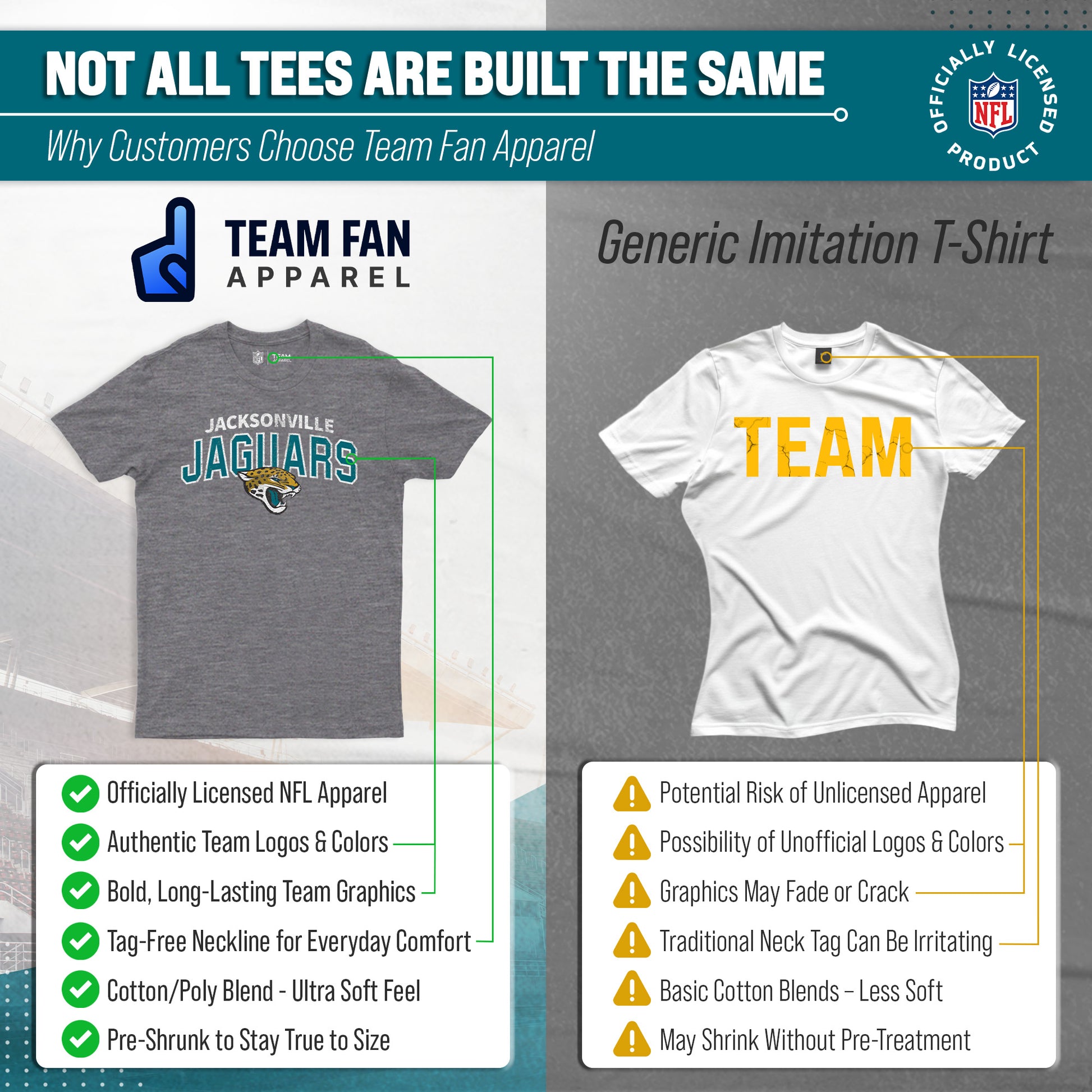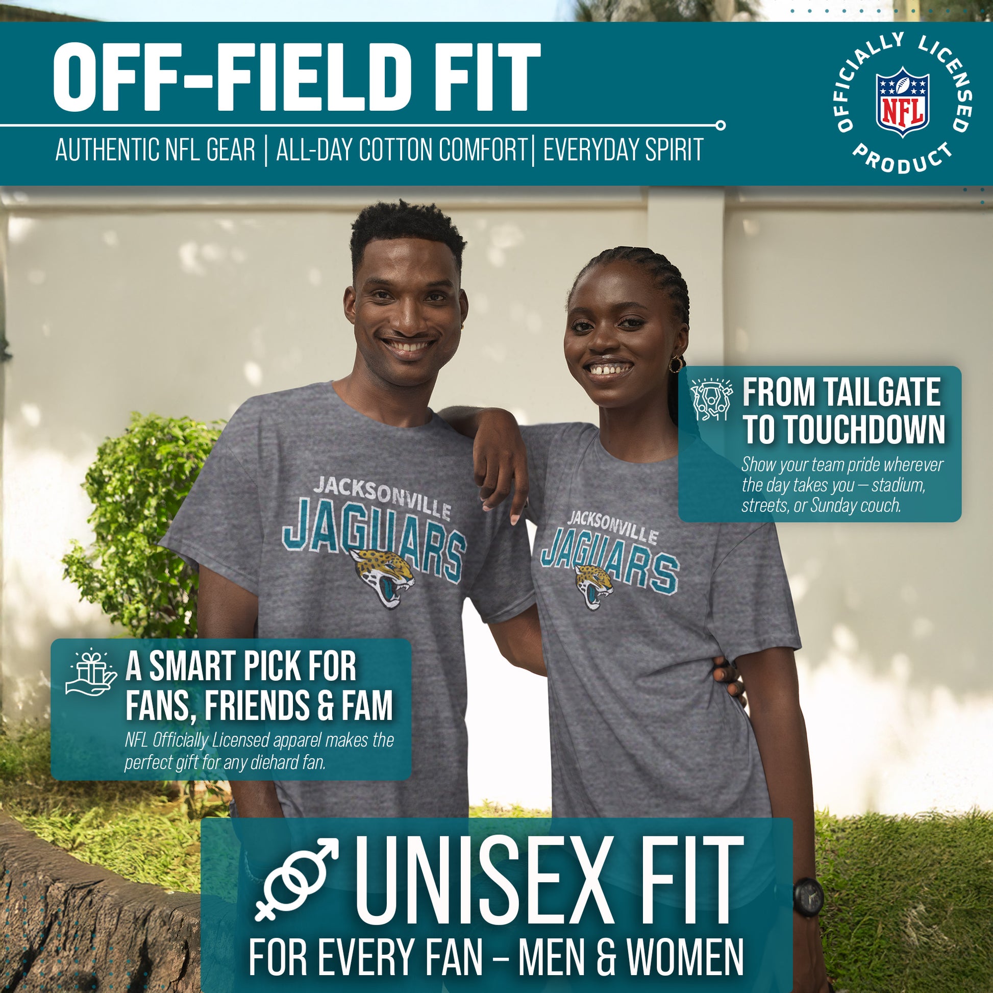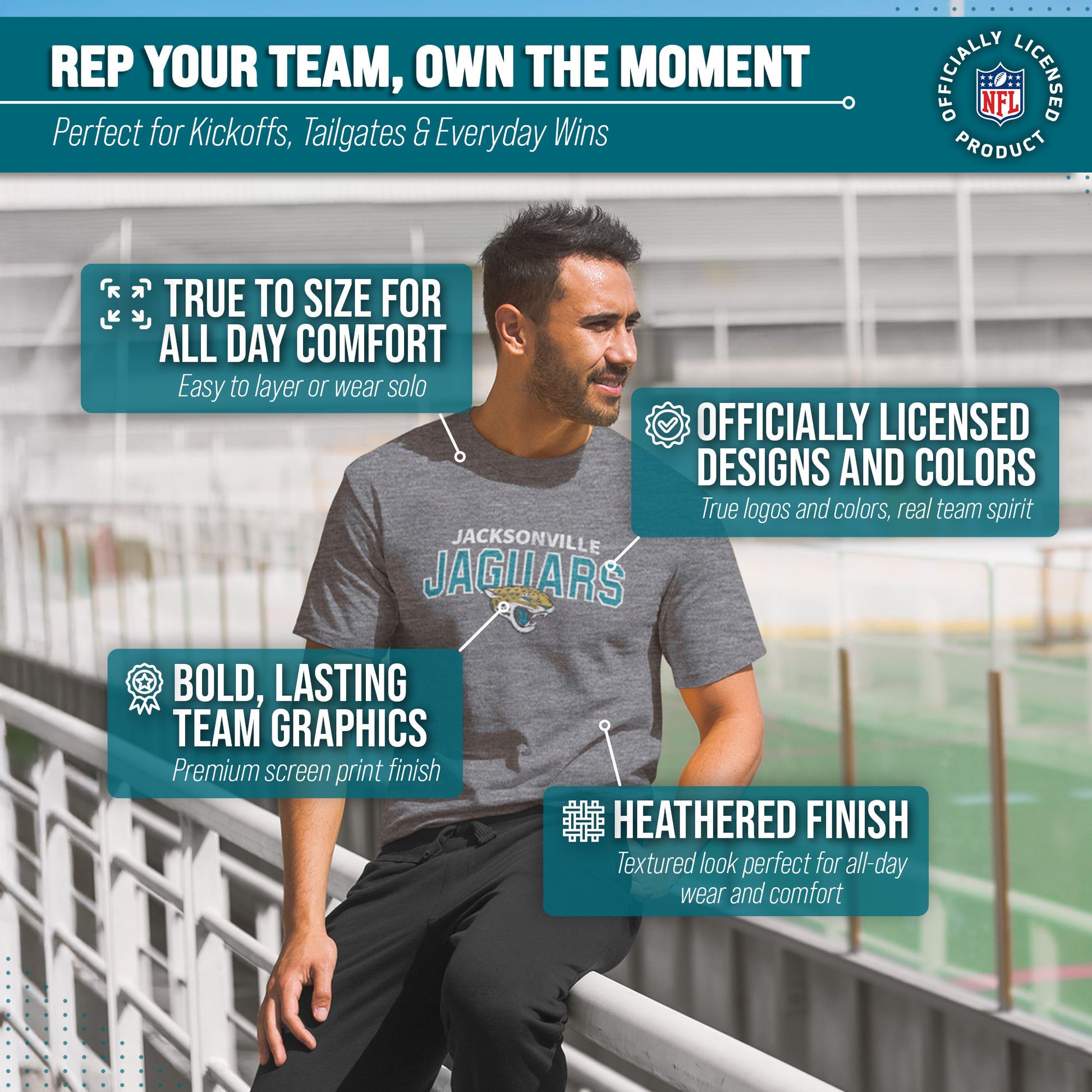 The Starting Fresh Tee is the perfect shirt for any fan of the Jacksonville Jaguars. The Jacksonville Jaguars cotton shirt is made from a polyester/cotton blend and has a soft feel. The material is lightweight, durable, and beyond comfortable. This Jacksonville Jaguars tee also features an officially licensed team wordmark design in a minimalistic style that shows off your fandom without being too flashy or bold. Whether you're wearing this shirt to the football game or just lounging around at home, you'll love how great it feels against your skin. This Jacksonville Jaguars t-shirt makes the perfect gift for Jacksonville Jaguars fans. If you're looking for Jacksonville Jaguars gifts for men, Jacksonville Jaguars for women, athletic shirts, Jaguars merchandise, Jaguars gear, Jacksonville Jaguars Christmas gifts or Jacksonville Jaguars birthday gifts, look no further than the Jaguars shirt. It's the best Jaguars gear for men and short-sleeve Jaguars pro football t-shirt. Get yours today!