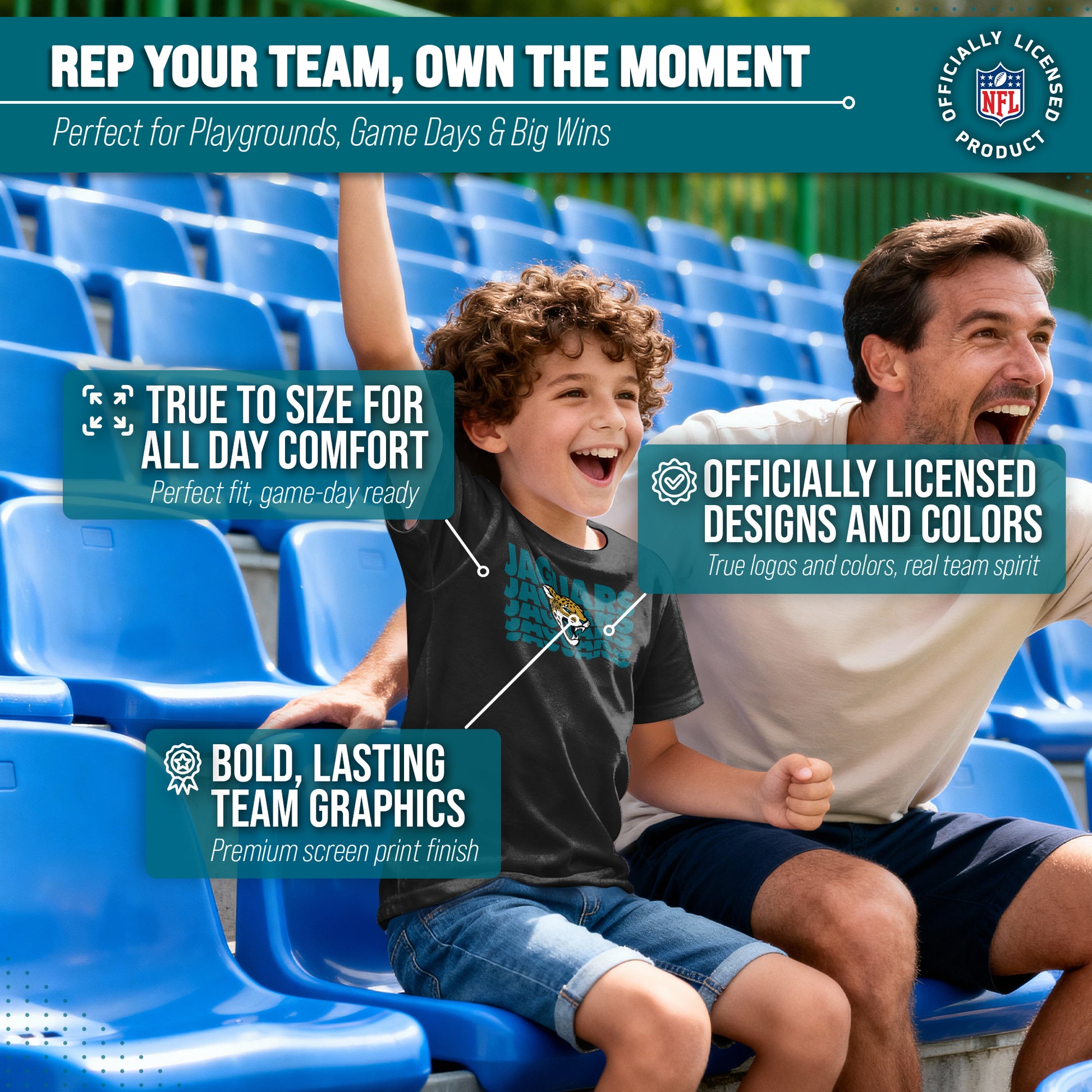 Jacksonville Jaguars NFL Youth Repeating Logo Football T-Shirt Unisex Tag Free Comfortable - Black