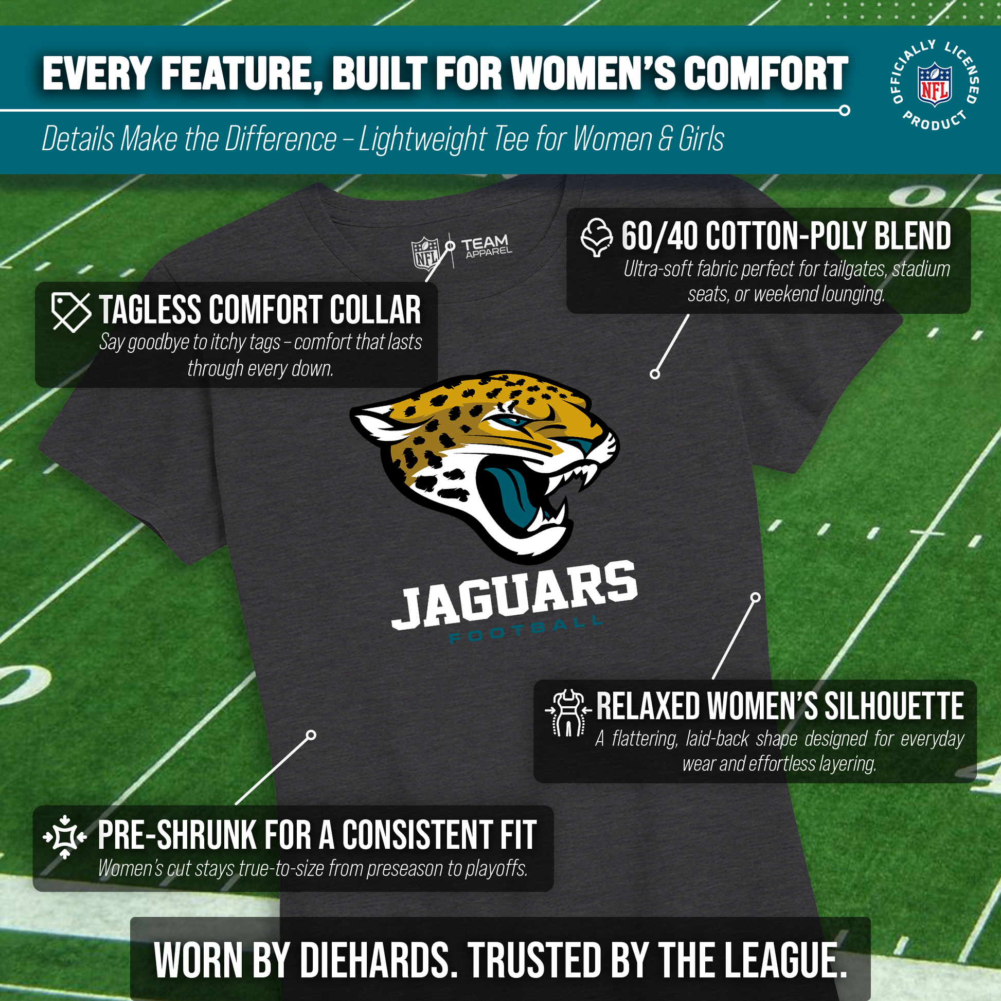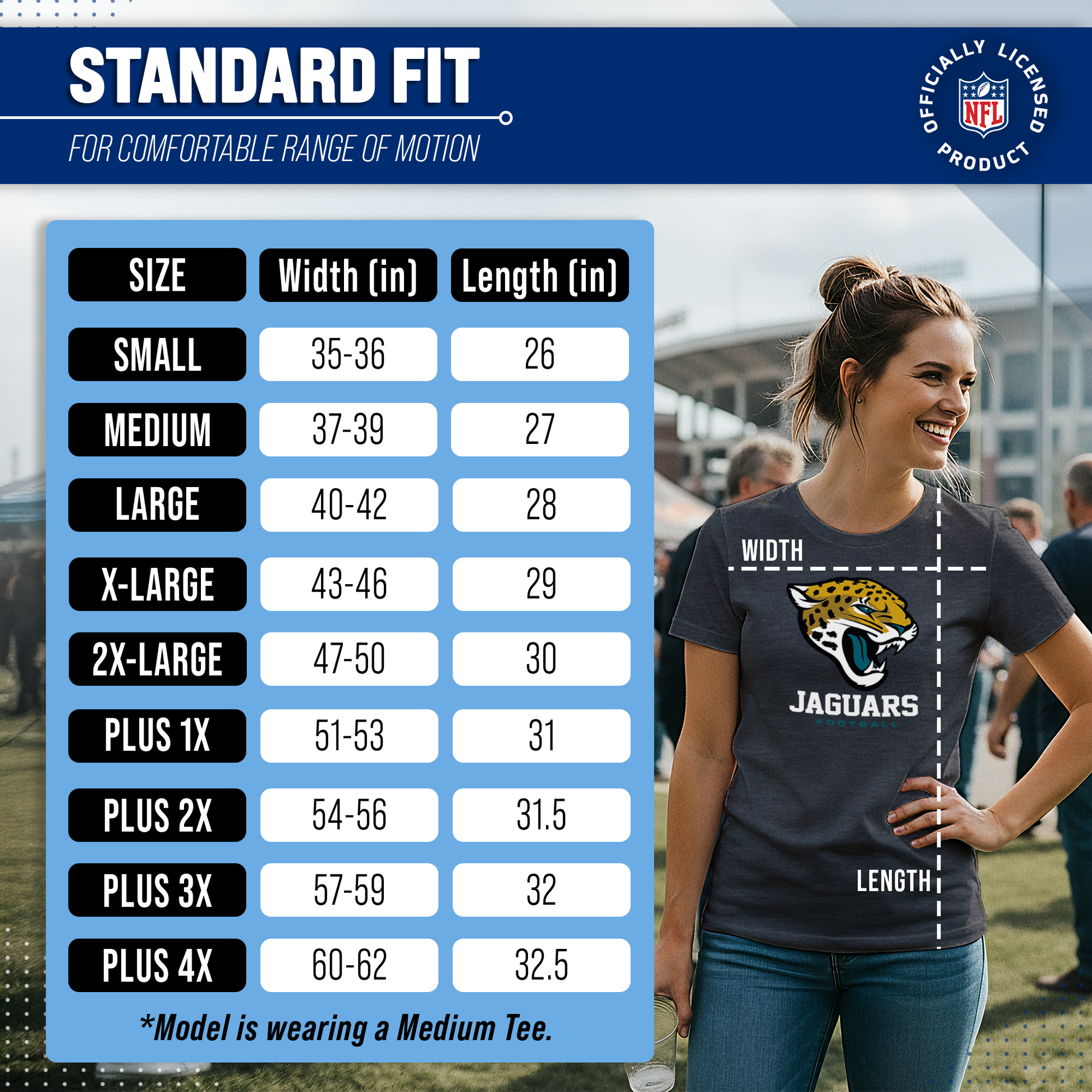 Score with Team Fan Apparel, the ultimate destination for officially licensed NFL apparel for men and women. We use only the highest-quality screen printing techniques to bring you the most comfortable, durable, and stylish clothing possible. Go ahead and show your team pride at the big game or any time! This premium womens t-shirt comes in small, medium, large, XL, and XXL. So needless to say, it fits Jacksonville Jaguars fans of all types! Maybe you aren't a Jaguars fan but you know someone who is? Don't worry! This high-quality t-shirt is soft, lightweight, breathable, and a GREAT gift for any birthday, anniversary, Mother's day, Valentine's day, or Christmas gift! So, if you want to stand out as the #1 female fan at the next big game or watch party, you're going to want to be wearing one of these Jacksonville Jaguars Women's Big Logo t-shirts.