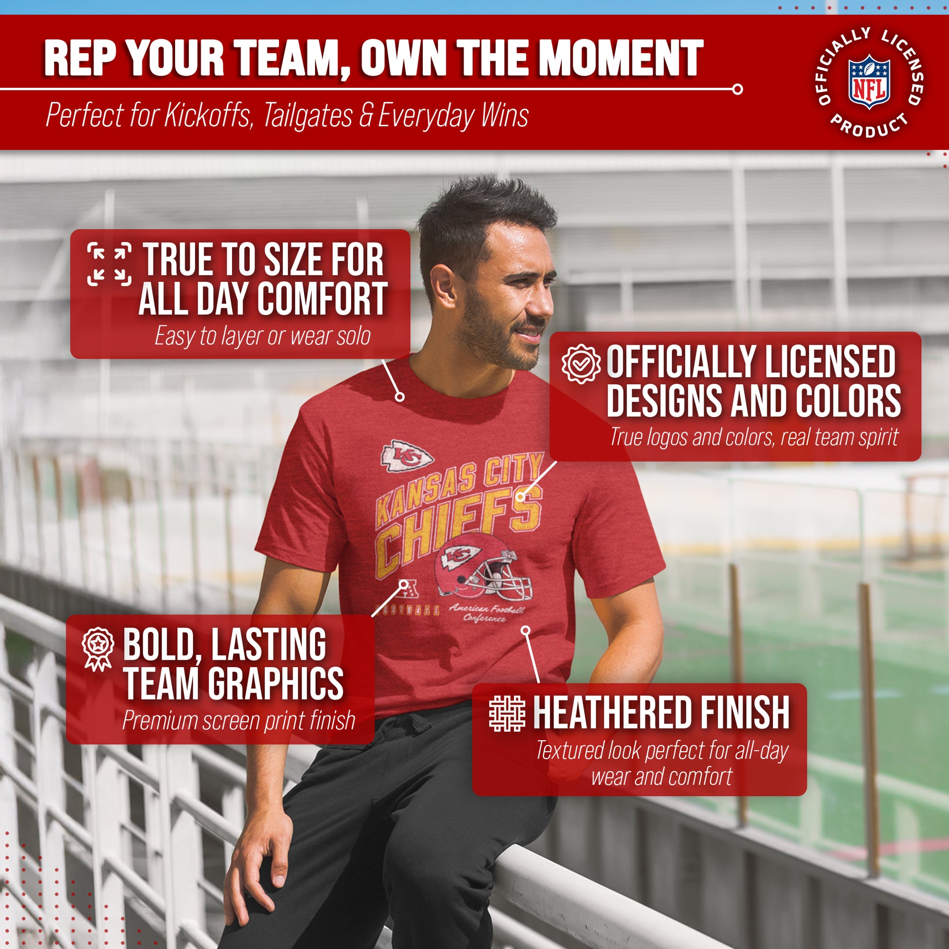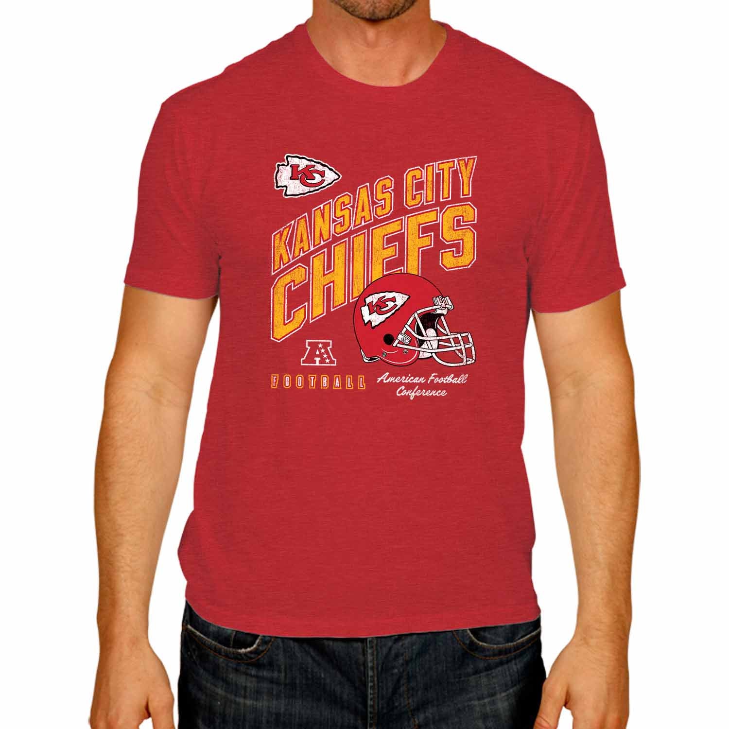 Kansas City Chiefs NFL Adult Distressed Helmet Tag-Less T-Shirt - Red Heather