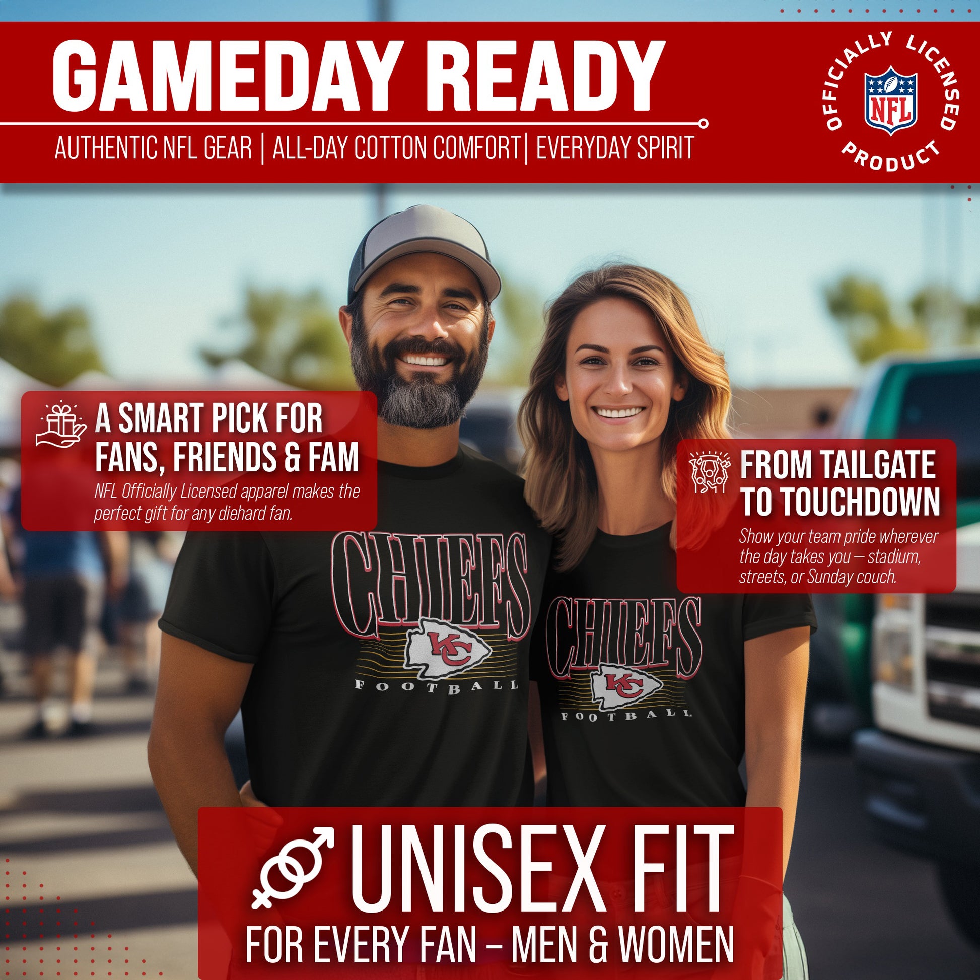 Show off your team spirit in style with our Team Fan Apparel Kansas City Chiefs NFL Overtime Blueprint Tag-Less T-Shirt! Made for both men and women, this unisex t-shirt is the perfect addition to any football fan's wardrobe. With its soft and comfortable cotton blend fabric, you'll love wearing it to games or just lounging at home. The tag-less design ensures maximum comfort without any annoying tags scratching at your neck. Featuring a colorful logo with outlined text of your favorite team, this shirt will make you stand out from the crowd and show off your die-hard fandom. It comes in multiple sizes, so you can choose the one that fits best & represents your team spirit. Whether you're cheering on your Chiefs at the stadium or watching from home, our NFL Overtime Blueprint Tag-Less T-Shirt is a must-have for all fans! So grab yours today and support your team in comfort and style. Go team!