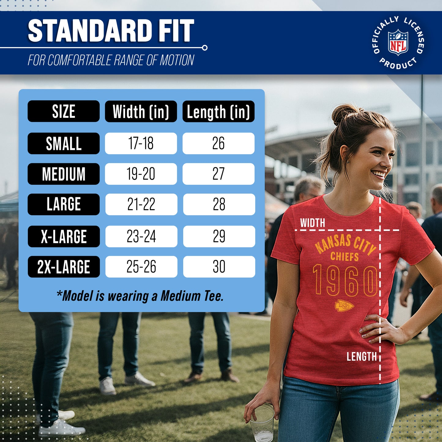 Calling all ladies! Get ready to rock game day with the Women's Team Fan Apparel Big Date T-Shirt! This comfortable and stylish Kansas City Chiefs womens tee is perfect for any female football fan, whether you're cheering on your favorite team at the stadium or watching from home. Made from a super soft cotton fabric , this shirt will keep you cool and comfortable all game long. The text, logo and official team color adds a touch of retro flair, while the tag-less design ensures itch-free wear. Whether you're a die-hard fan or just love a good simple look, this shirt is perfect for showing off your team spirit. Available in a wide range of women's sizes, it's suitable for all shapes and sizes! So grab your girlfriends and get ready to cheer on your team in style with the Women's Team Fan Apparel Big Date T-Shirt!