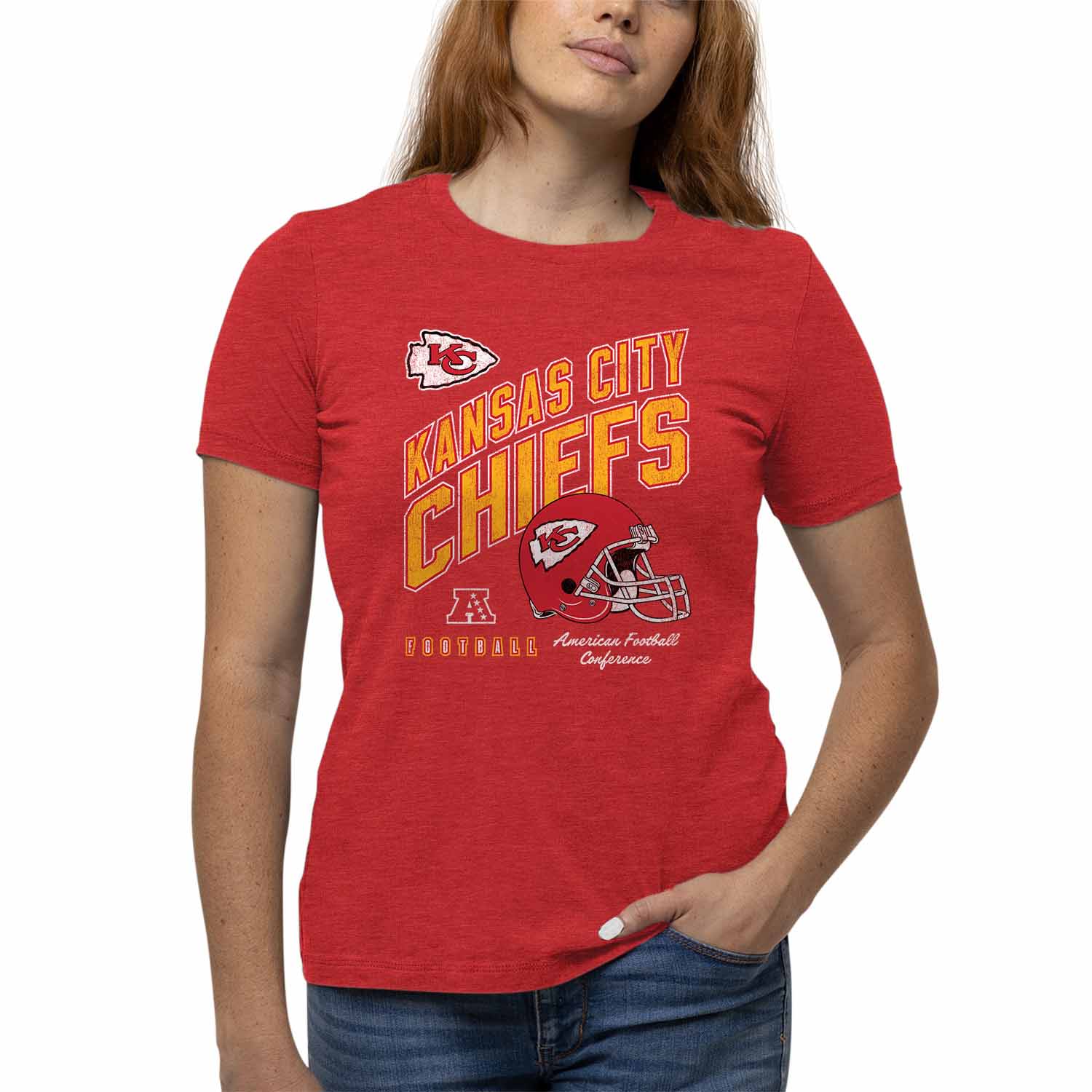 Kansas City Chiefs NFL Womens Distressed Helmet Tag-Less Soft T-Shirt - Red Heather