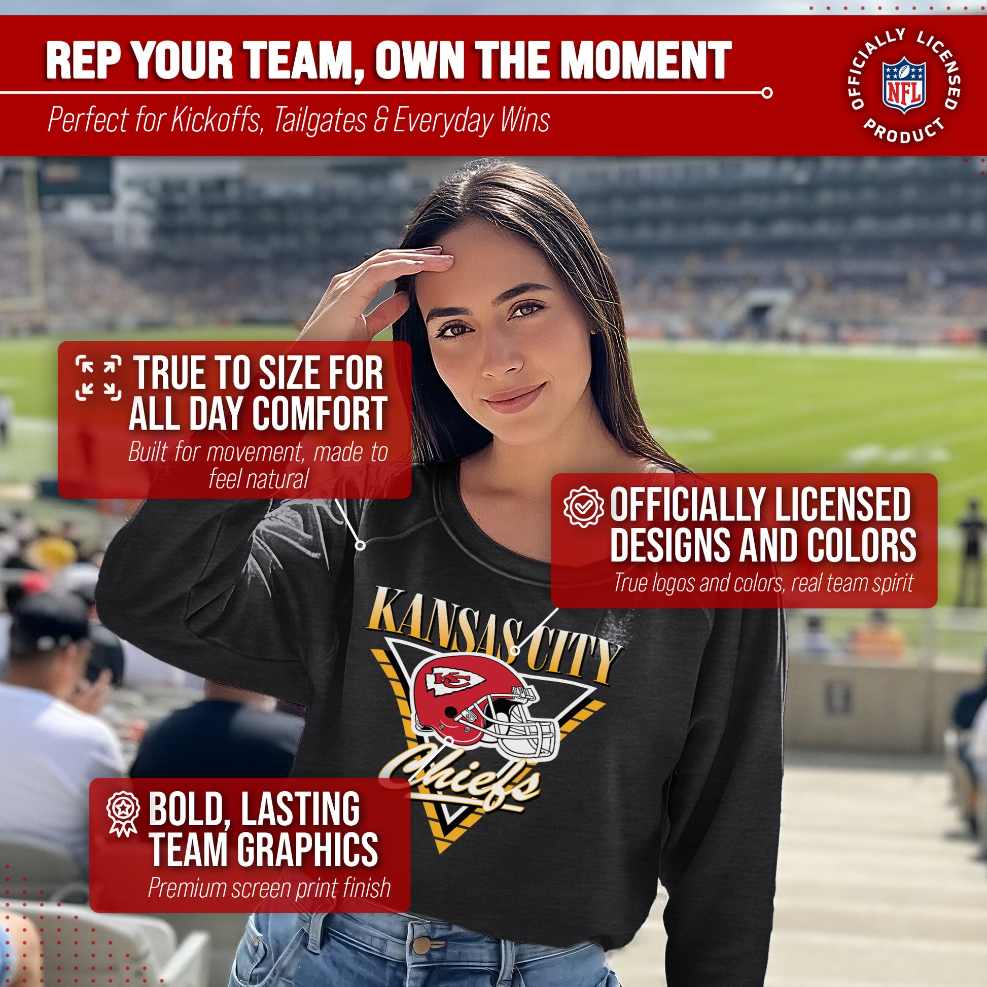 Kansas City Chiefs NFL Womens Retro Triangle Slouchy Crewneck - Heather Charcoal