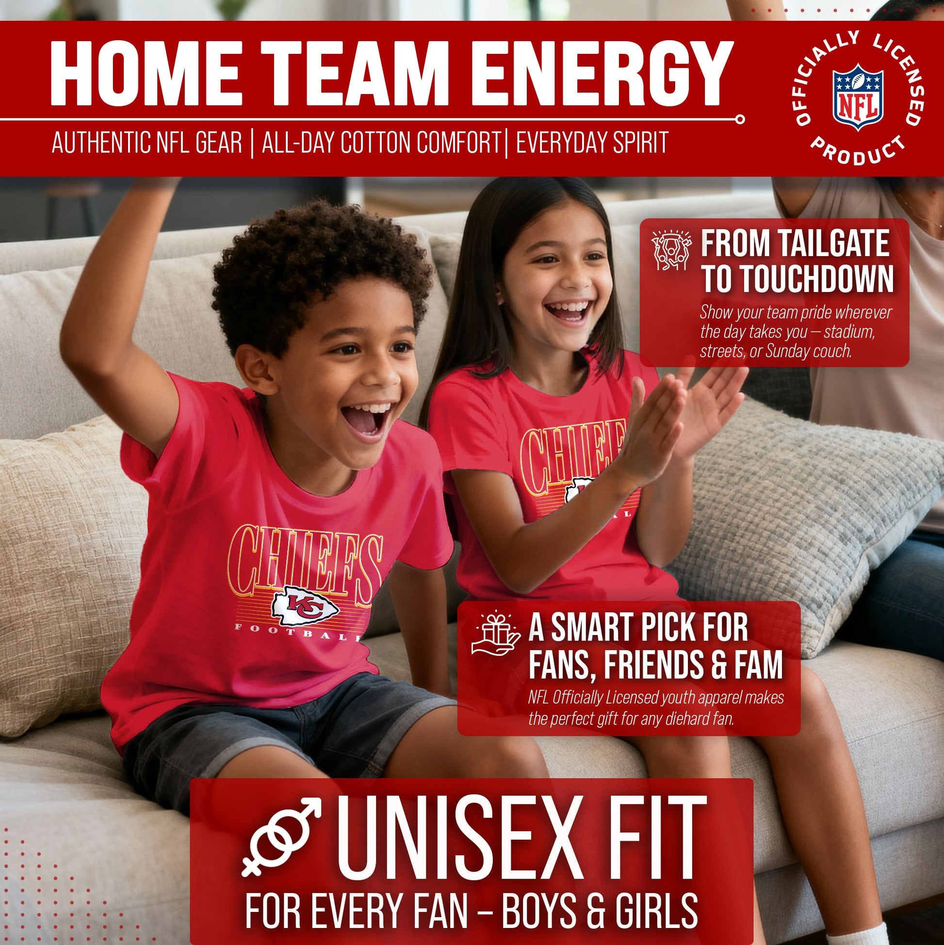 Kansas City Chiefs NFL Youth Overtime Blueprint Football T-Shirt Unisex Tag Free Comfortable - Red