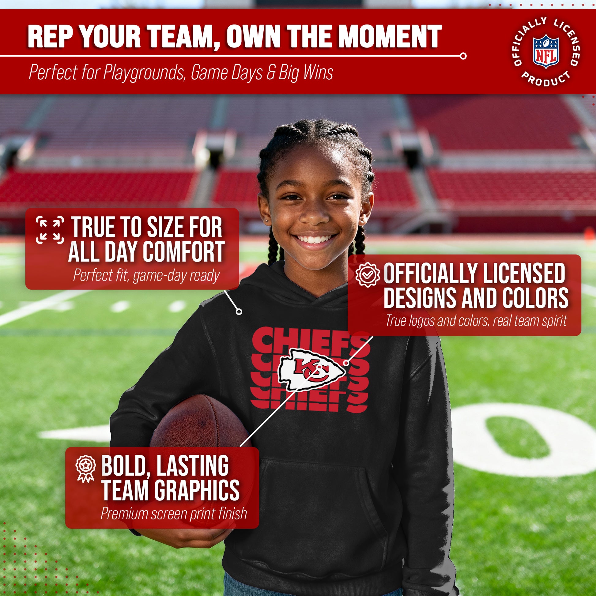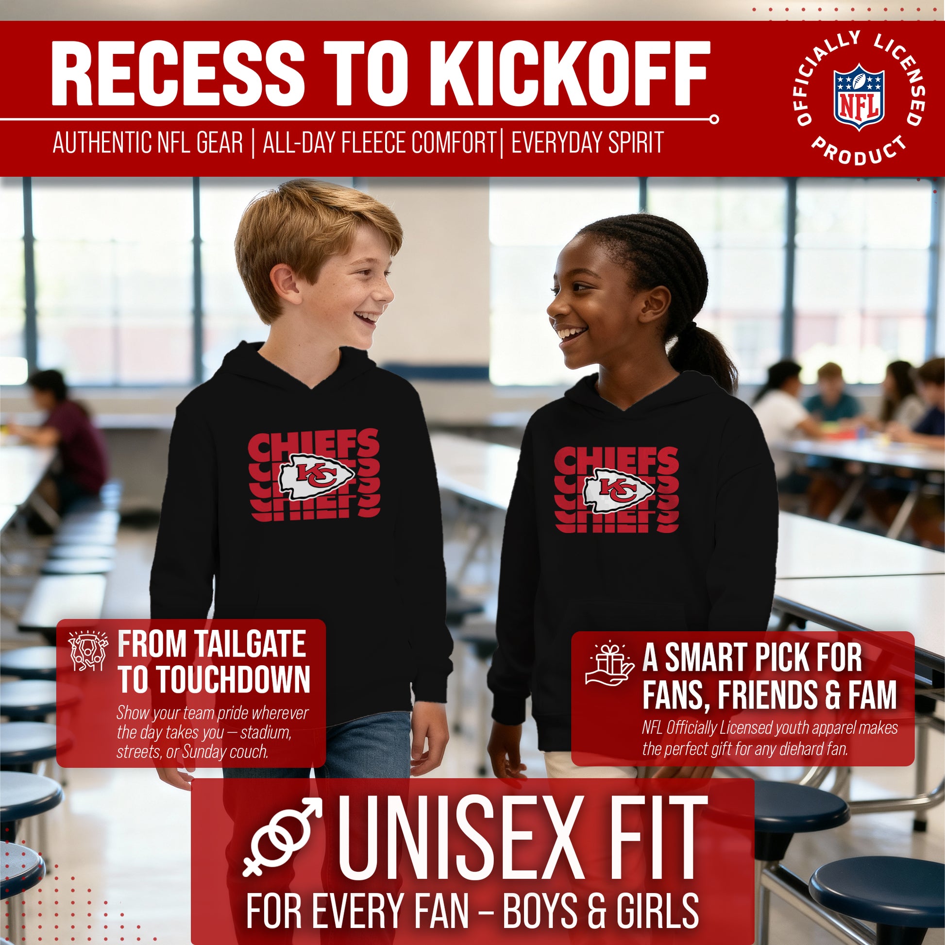 Kansas City Chiefs NFL Youth Repeating Logo Football Fleece Hooded Sweatshirt - Black