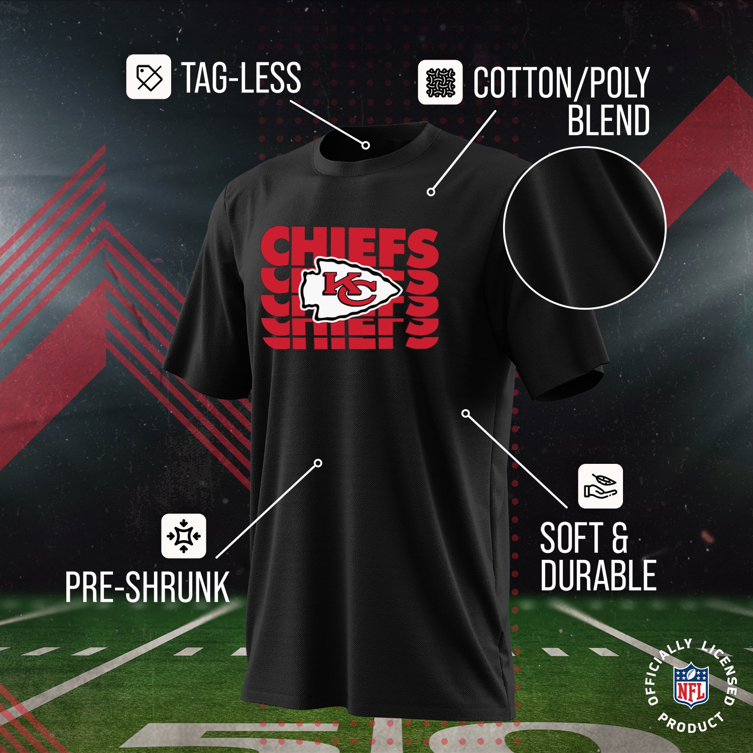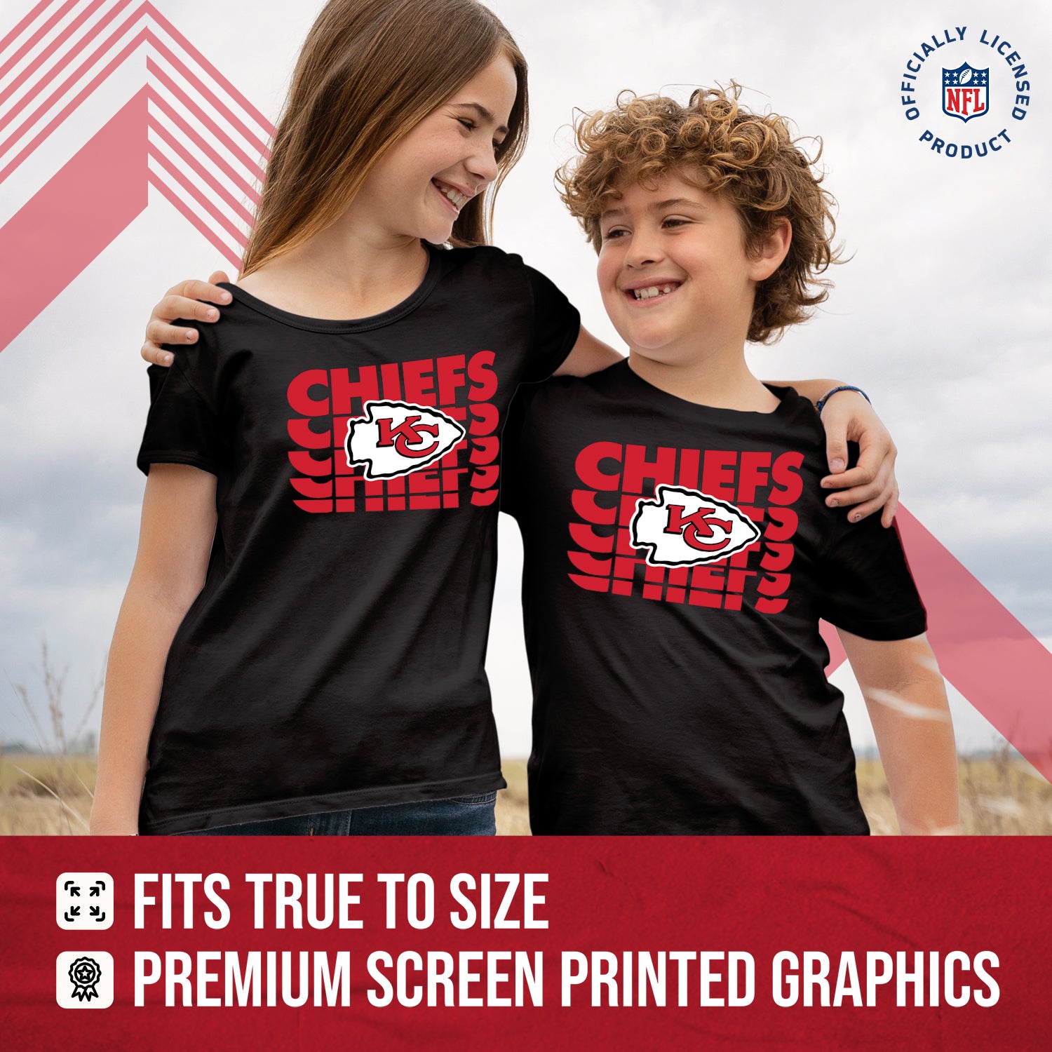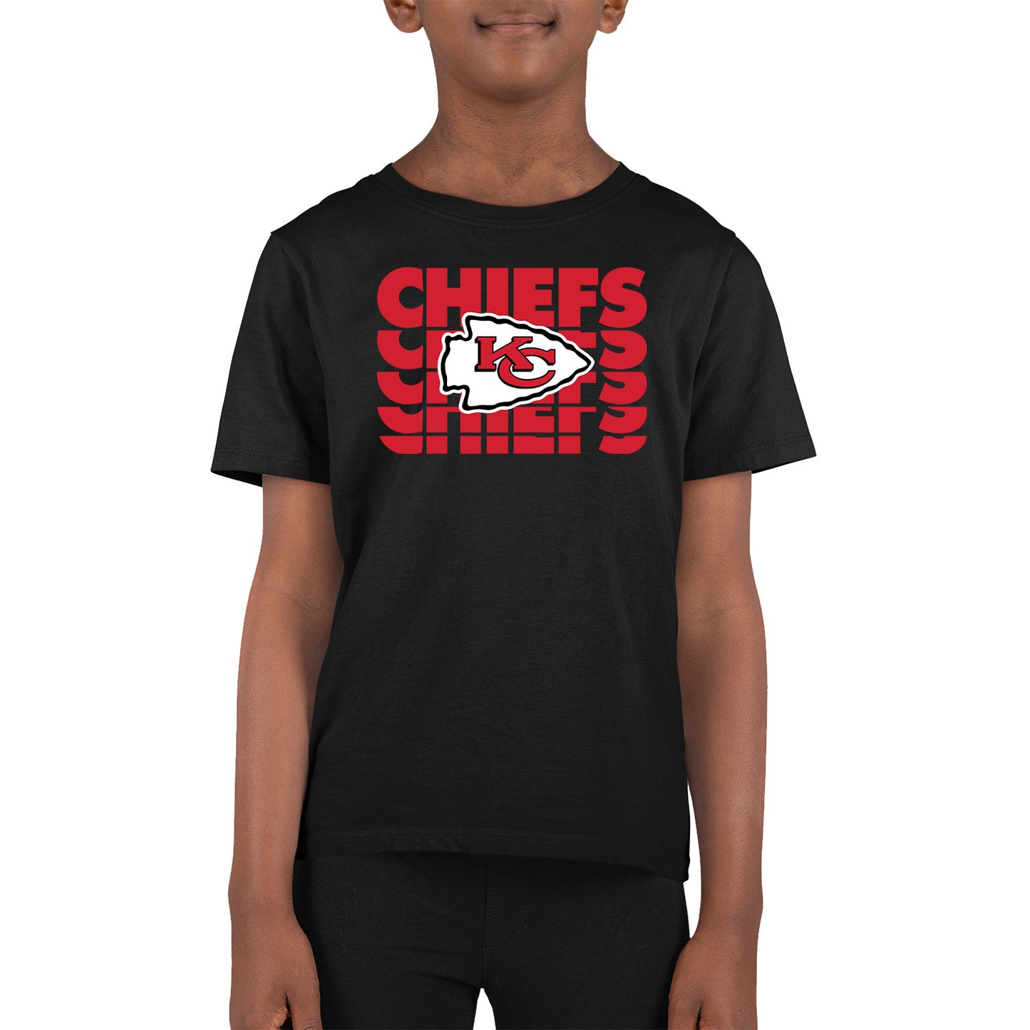 Kansas City Chiefs NFL Youth Repeating Logo Football T-Shirt Unisex Tag Free Comfortable - Black