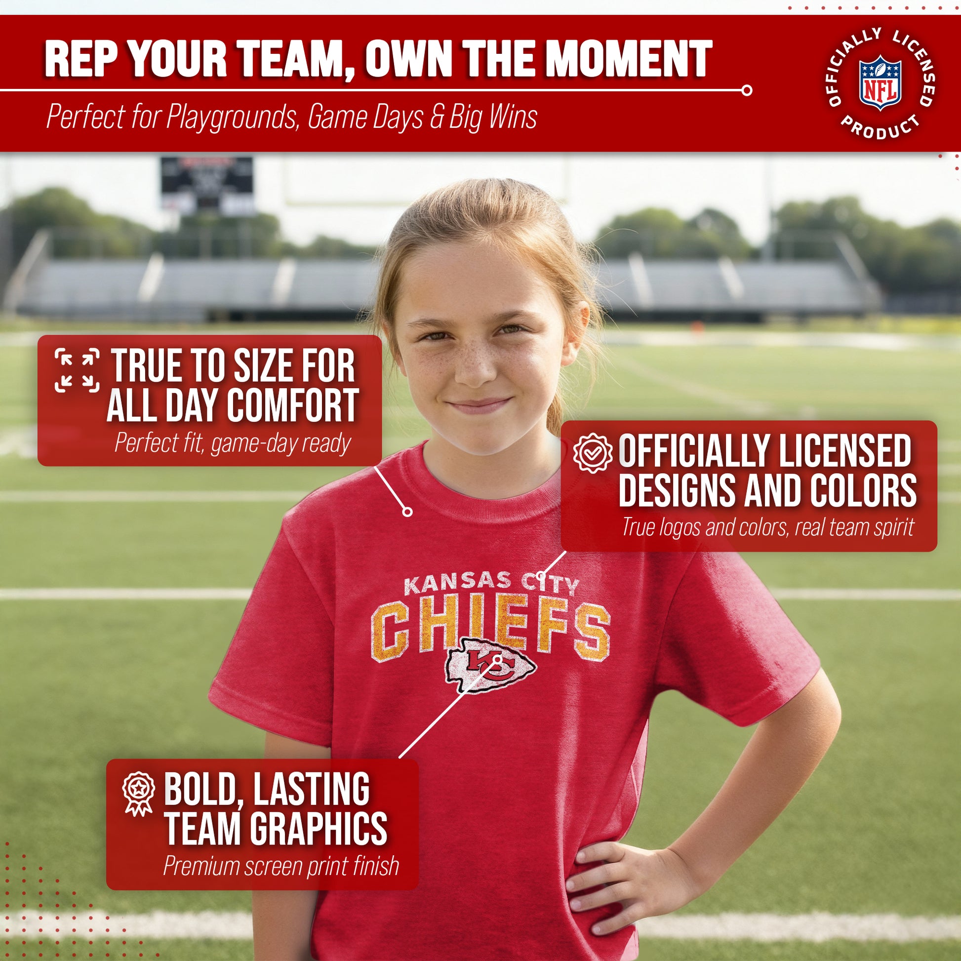 Kansas City Chiefs NFL Youth Starting Fresh Tee- Pro Football Tag-Less T-Shirt For Boys & Girls - Red