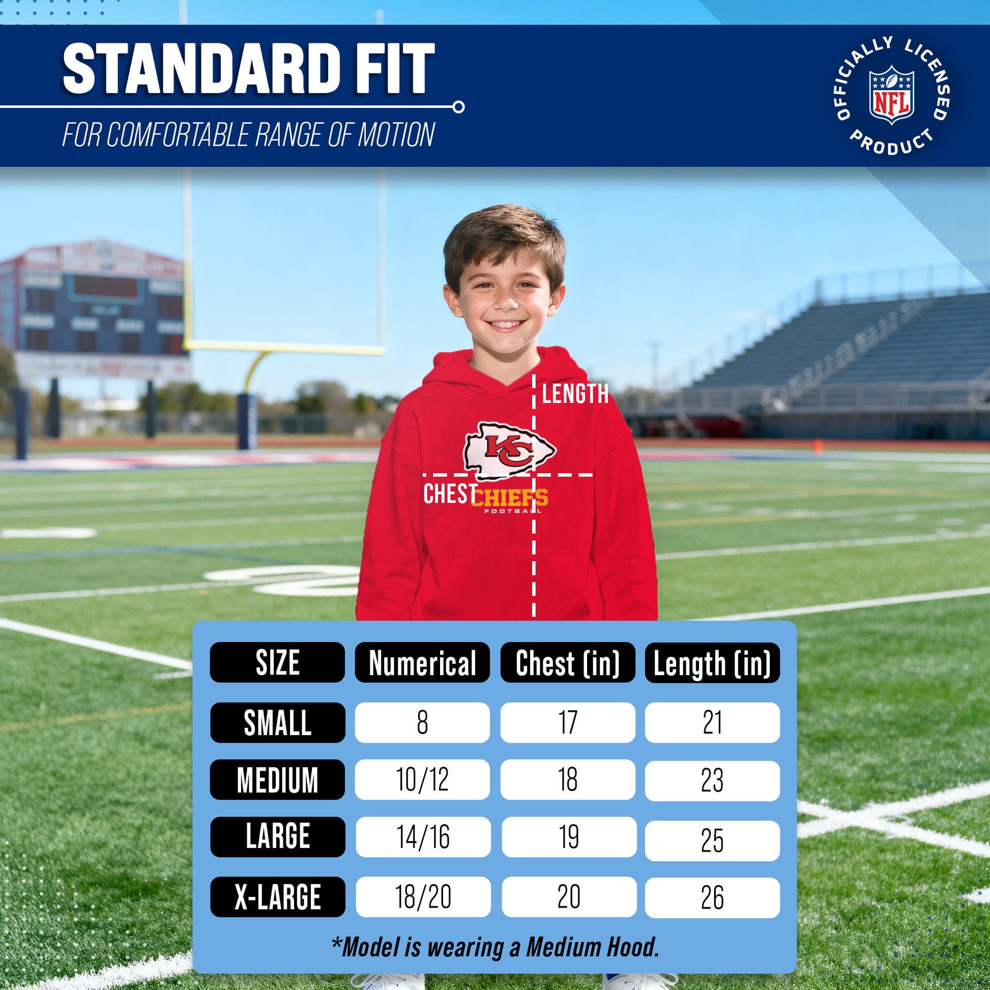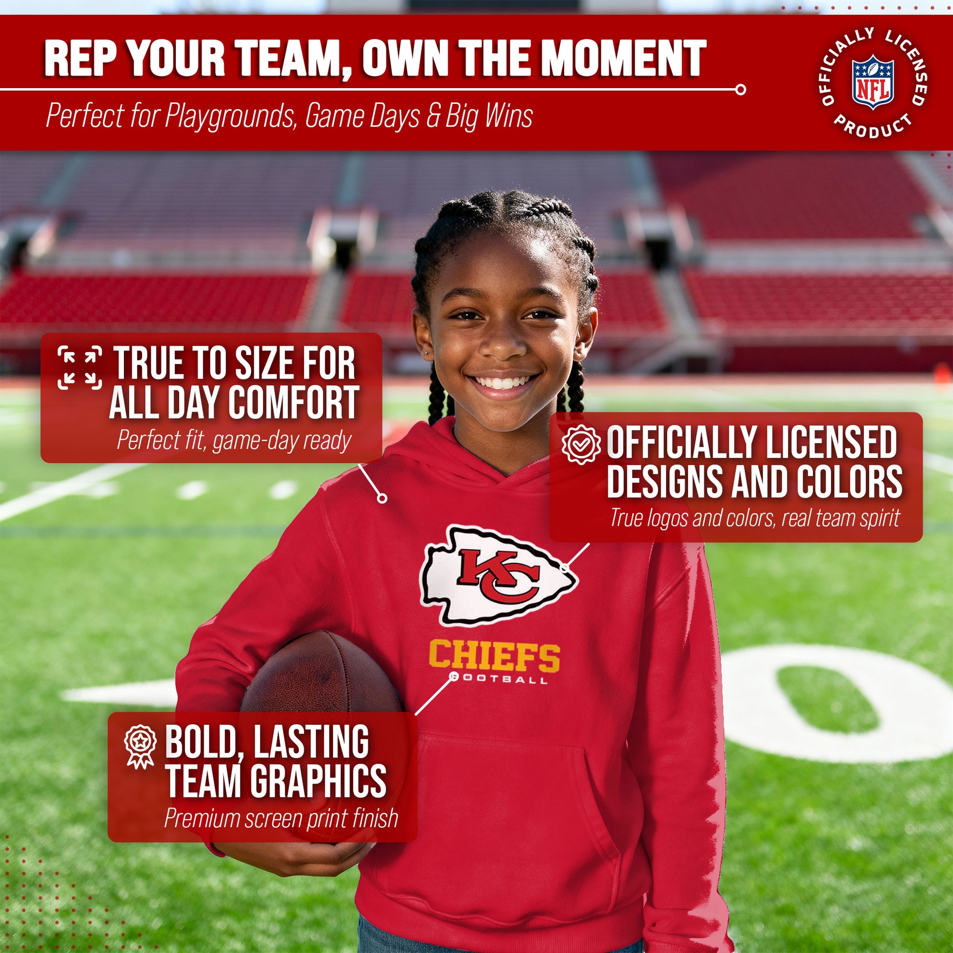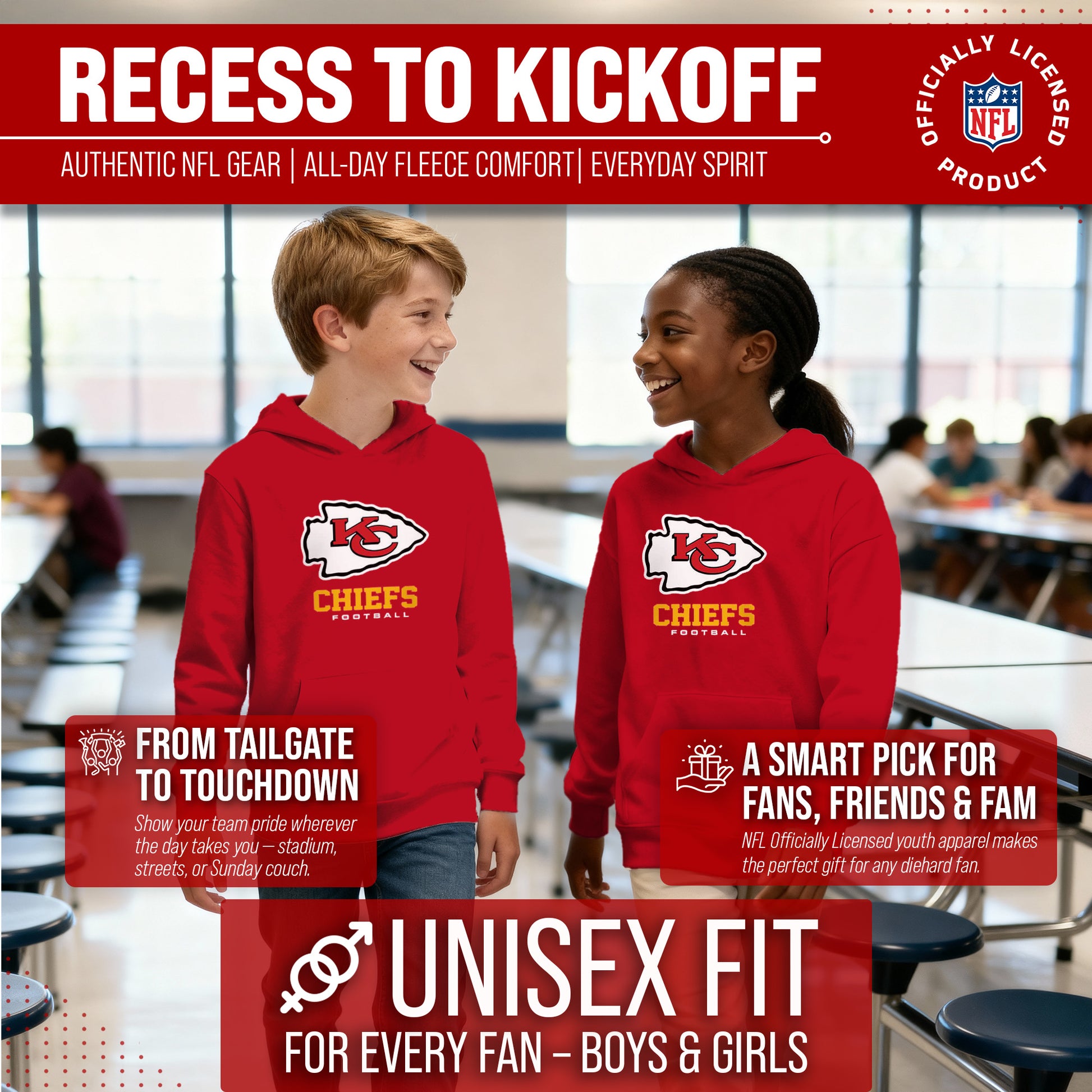 Kansas City Chiefs Youth NFL Ultimate Fan Logo Fleece Hooded Sweatshirt -Tagless Football Pullover For Kids - Red
