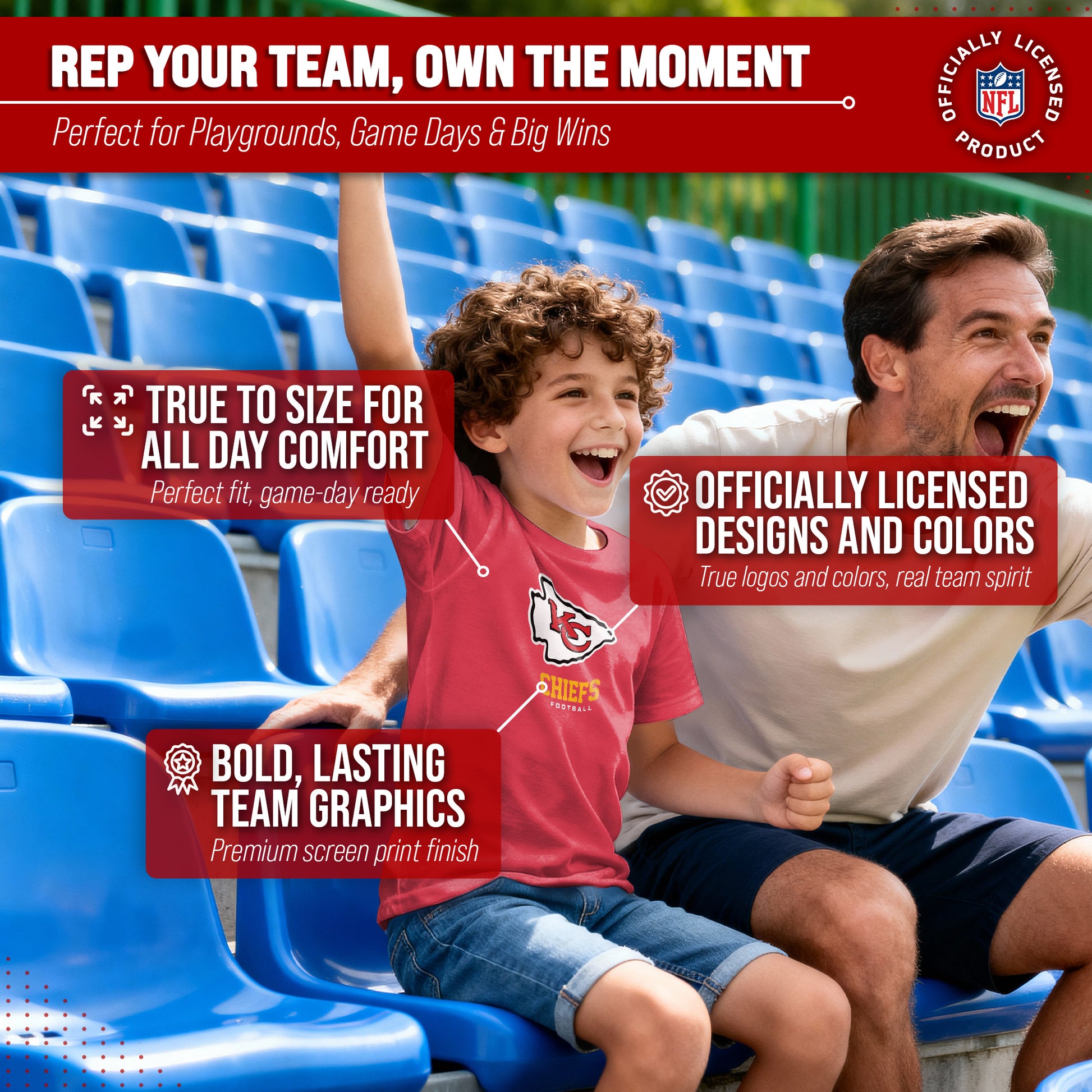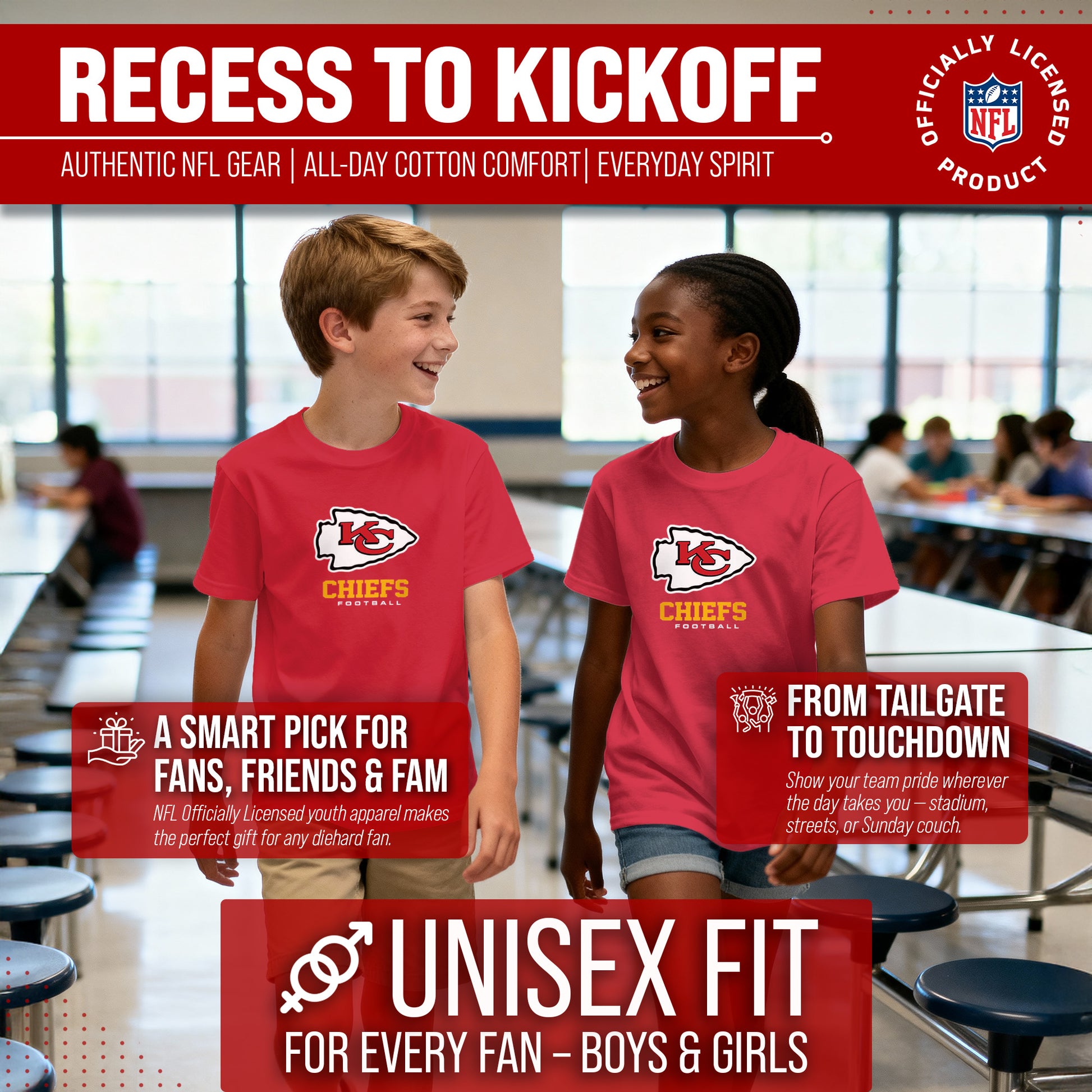 Score with Team Fan Apparel, the ultimate destination for officially licensed NFL apparel for all whether with youth or adult we got you covered . We use only the highest-quality screen printing techniques to bring you the most comfortable, durable, and stylish clothing possible. Go ahead and show your team pride at the big game or any time! This premium youth t-shirt comes in small, medium, large, XL. So needless to say, it fits young [team_long] fans of all types! Maybe you aren't a [team_nickname] fan but you know someone who is? Don't worry! This high-quality t-shirt is soft, lightweight, breathable, and a GREAT gift for any birthday or Christmas gift! So, if you want your young fan to feel bold and proud at the next big game or tailgate, you're going to want to be getting your hands on our [team_long] Youth Big Logo t-shirt today!