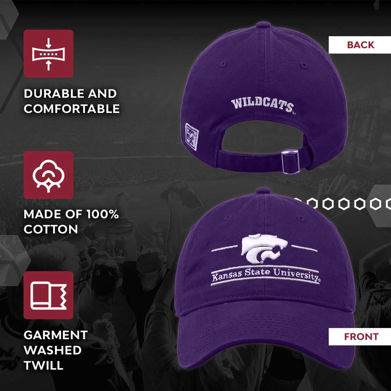 Looking for a way to support your team? Try this Kansas State Wildcats game bar hat! These Kansas State Wildcats caps are made from 100% garment-washed cotton twill. This Kansas State hat also features a relaxed and unstructured design, making it a perfect Kansas State Wildcats fitted Wildcats hat. It boldly displays the Kansas State Wildcats embroidered logo so you can represent the Kansas State. In addition, the Kansas State Wildcats logo with the school wordmark is on the front of the hat in a bar design. The team wordmark is on the back of the Wildcats baseball cap. This gameday hat has a metal closure to ensure an adjustable size. Wear these caps for women and men along with your favorite Kansas State clothes, clothing & apparel. These ball caps for men and women are the perfect Kansas State Wildcats gifts for men. Buy one for yourself, your dad, or any fan. Whether tailgating at Kansas State football games or cheering from home, show your team pride by wearing your Kansas State gear with your Kansas State cap.