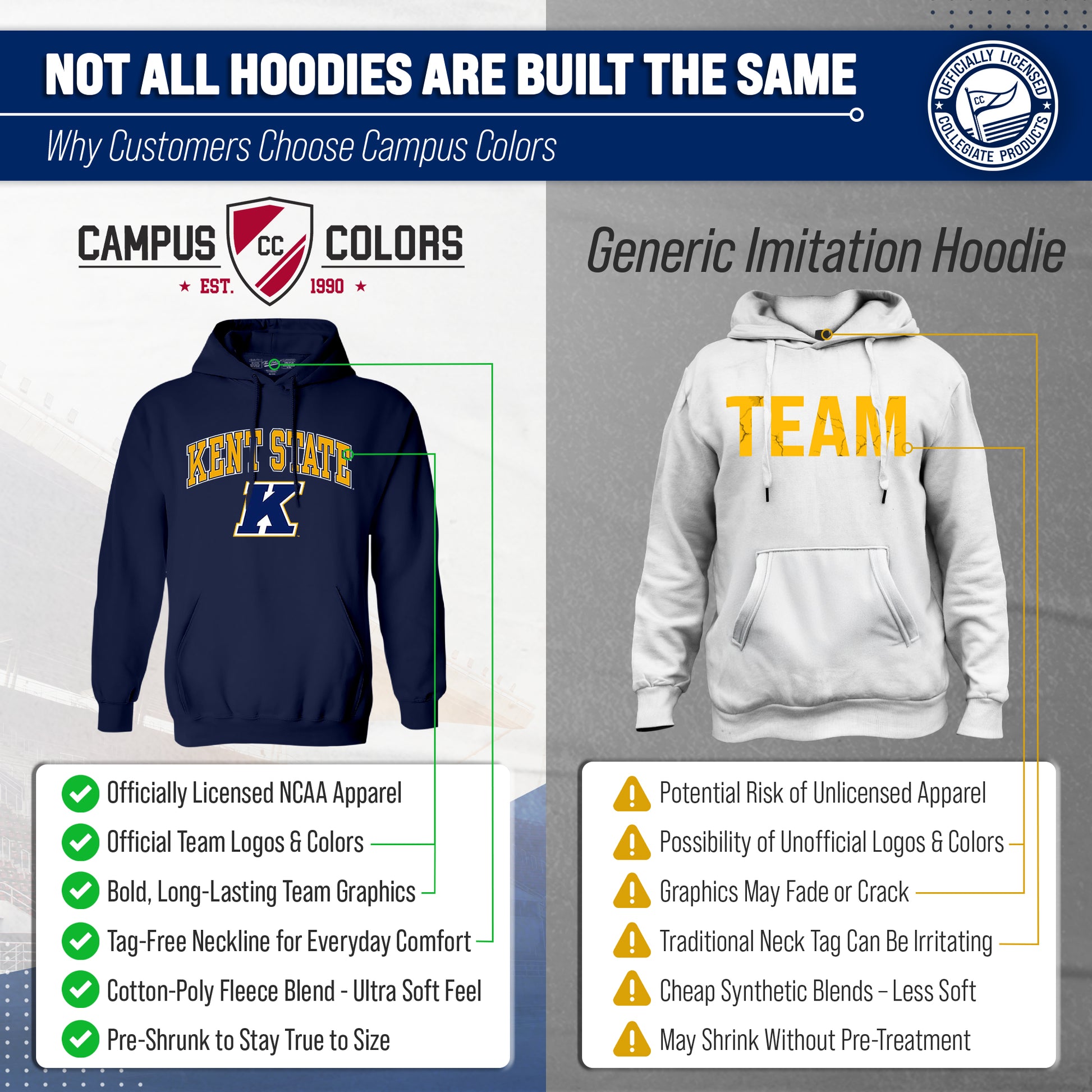 Score with Campus Colors, the ultimate destination for officially licensed college apparel for men and women. Design and printed in the USA, we use only the highest quality screen printing techniques to bring you the most comfortable, durable, and stylish clothing possible. Go ahead and show your team pride at the big game or any time! This premium-quality Gameday hoodie is super comfy, fits both male and female adults, and comes in small, medium, large, XL, and XXL. So needless to say, it fits Kent State Golden Flashes fans of all types! Maybe you aren't a Kent State fan but you know someone who is? Don't worry! This high-quality sweatshirt is soft, lightweight, breathable and a GREAT gift for any birthday, anniversary, Father's Day, Mother's day, you name it! So, if you want to stand out as the #1 Golden Flashes fan at the next big tailgate party, homecoming parade, or watch party, you're going to want to be wearing one of these Gameday sweatshirts.