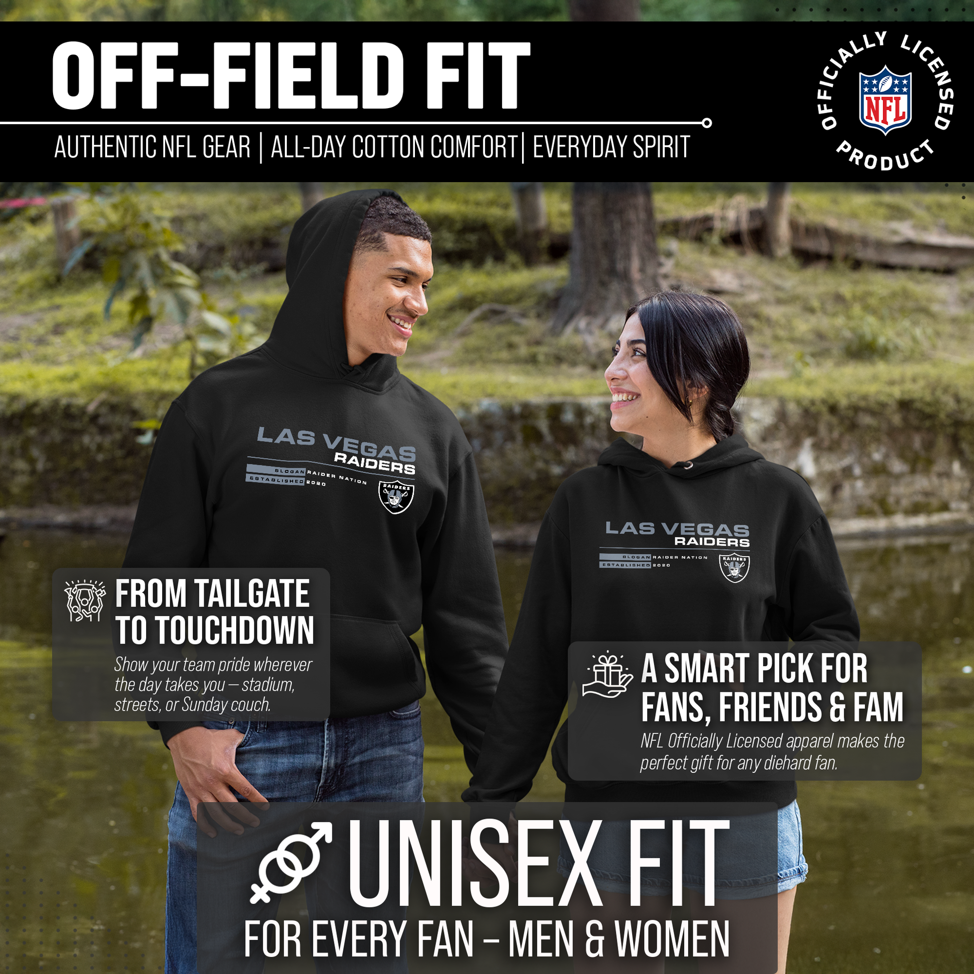 Score with Team Fan Apparel, the ultimate destination for officially licensed NFL apparel for men and women. We use only the highest quality screen printing techniques to bring you the most comfortable, durable, and stylish clothing possible. Go ahead and show your team pride at the big game or any time! This premium hooded sweatshirt fits both male and female adults and comes in small, medium, large, XL, and XXL. So needless to say, it fits Las Vegas Raiders fans of all types! Maybe you aren't a Raiders fan but you know someone who is? Don't worry! This high-quality sweatshirt is soft, lightweight but cozy, breathable and a GREAT gift for any birthday, anniversary, or Christmas gift; Father's Day, Mother's day, you name it! The front pouch pocket, drawstring hood, and soft fleece will keep you warm and keep your fandom hot! So, if you want to stand out as the #1 fan at the next big game, tailgate or watch party, you're going to want to be wearing one of these stat sheet hooded sweatshirts