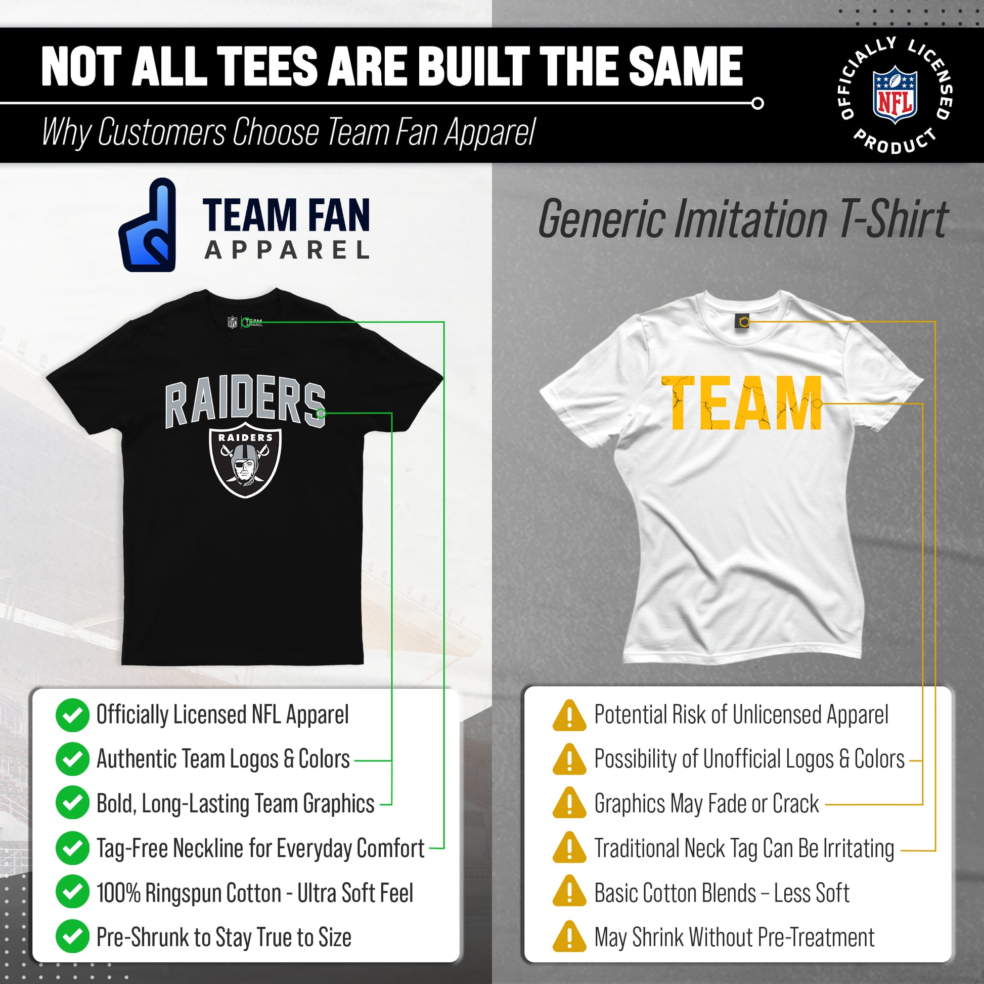 Looking for a comfortable, lightweight tee representing your favorite team? The Home Team Tee is for you! This Raiders t-shirt is made of cotton-poly fabric. It features the officially licensed Raiders wordmark in a trendy, thermally-printed design. It was made in the USA and is perfect for men or women. This tagless Raiders shirt is beyond comfortable and will keep you looking and feeling your best while you cheer on your favorite football team on game day. If you are looking for the best Las Vegas Raiders gifts for men, Las Vegas Raiders for women, pro football Las Vegas Raiders shirts, football tshirts, mens and womens Raiders t-shirts, football merchandise Las Vegas Raiders gear for men and women, lightweight & tagless Las Vegas Raiders shirts, or Las Vegas Raiders apparel, look no further than this Las Vegas Raiders short sleeve fan shirt. It makes the perfect Father's Day or Christmas gift for Las Vegas Raiders fans.