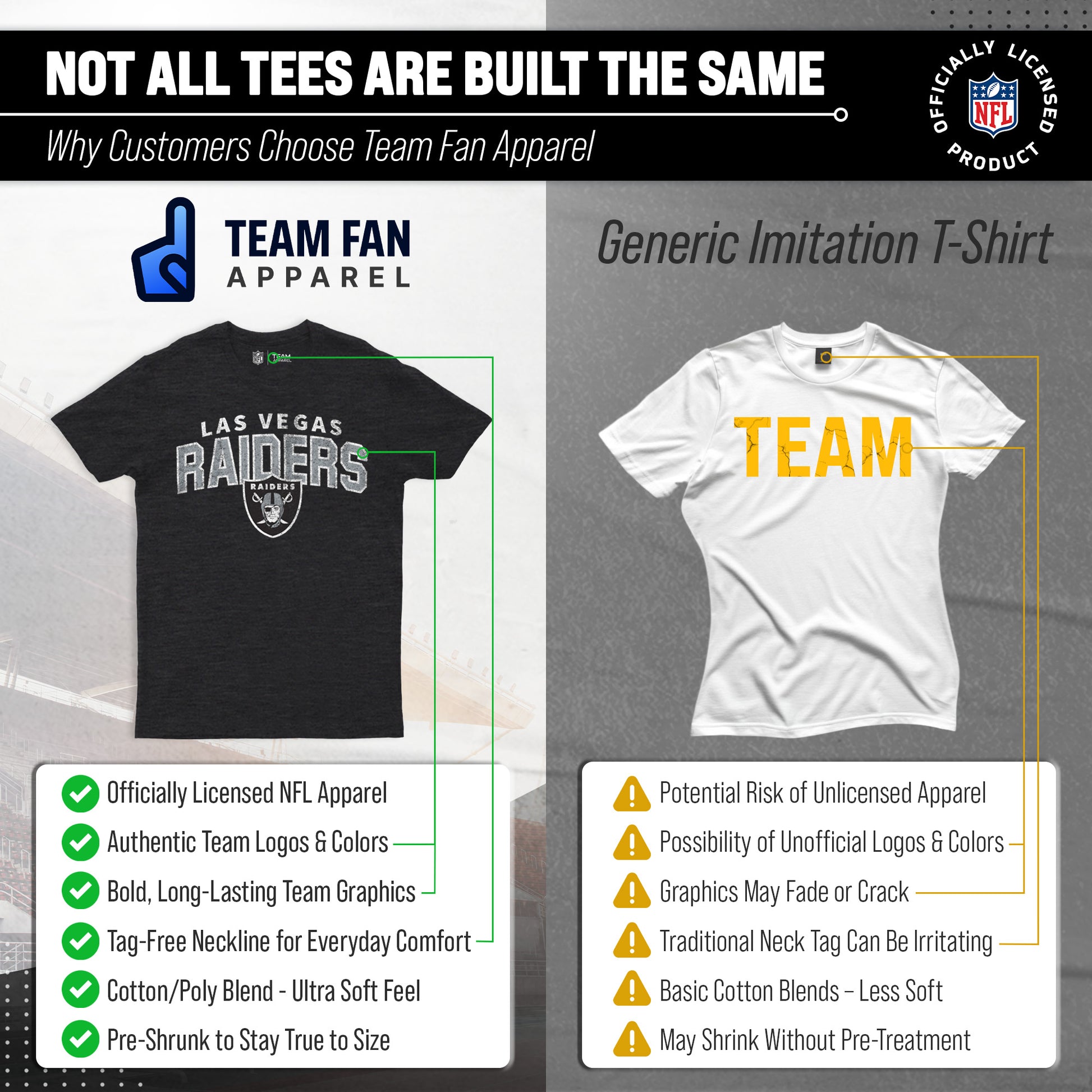 The Starting Fresh Tee is the perfect shirt for any fan of the Las Vegas Raiders. The Las Vegas Raiders cotton shirt is made from a polyester/cotton blend and has a soft feel. The material is lightweight, durable, and beyond comfortable. This Las Vegas Raiders tee also features an officially licensed team wordmark design in a minimalistic style that shows off your fandom without being too flashy or bold. Whether you're wearing this shirt to the football game or just lounging around at home, you'll love how great it feels against your skin. This Las Vegas Raiders t-shirt makes the perfect gift for Las Vegas Raiders fans. If you're looking for Las Vegas Raiders gifts for men, Las Vegas Raiders for women, athletic shirts, Raiders merchandise, Raiders gear, Las Vegas Raiders Christmas gifts or Las Vegas Raiders birthday gifts, look no further than the Raiders shirt. It's the best Raiders gear for men and short-sleeve Raiders pro football t-shirt. Get yours today!