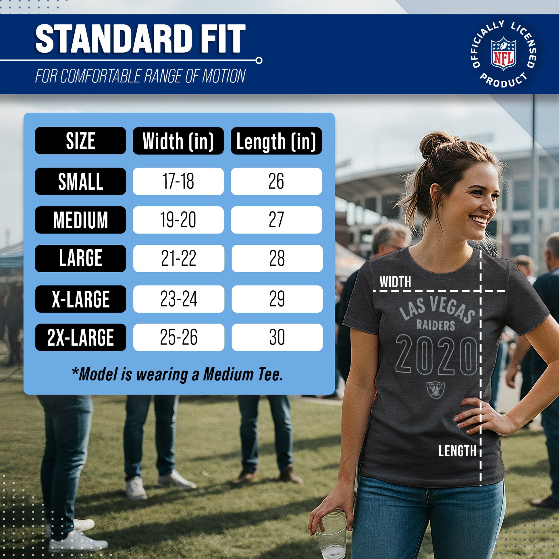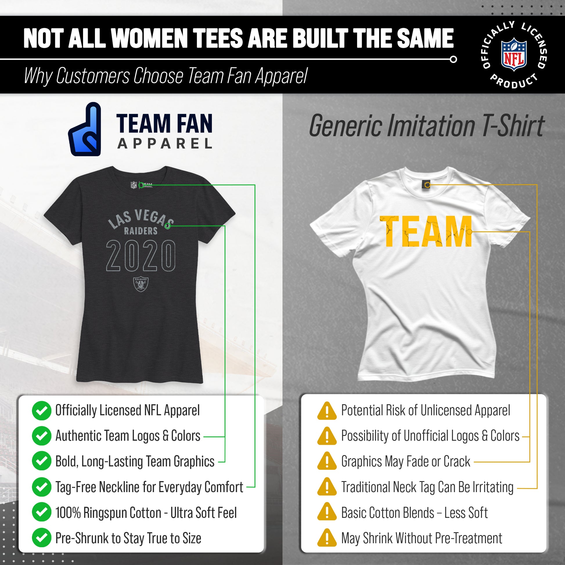 Calling all ladies! Get ready to rock game day with the Women's Team Fan Apparel Big Date T-Shirt! This comfortable and stylish Las Vegas Raiders womens tee is perfect for any female football fan, whether you're cheering on your favorite team at the stadium or watching from home. Made from a super soft cotton fabric , this shirt will keep you cool and comfortable all game long. The text, logo and official team color adds a touch of retro flair, while the tag-less design ensures itch-free wear. Whether you're a die-hard fan or just love a good simple look, this shirt is perfect for showing off your team spirit. Available in a wide range of women's sizes, it's suitable for all shapes and sizes! So grab your girlfriends and get ready to cheer on your team in style with the Women's Team Fan Apparel Big Date T-Shirt!