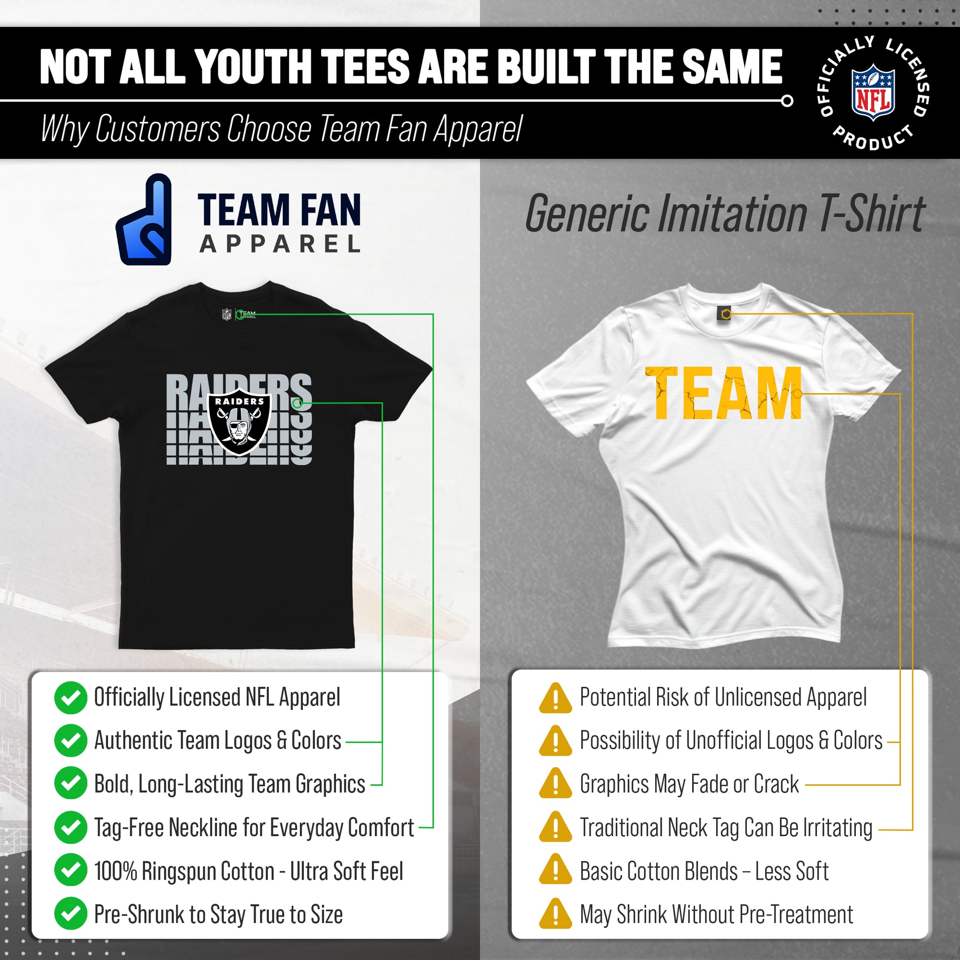 Las Vegas Raiders NFL Youth Repeating Logo Football T-Shirt Unisex Tag Free Comfortable - Black