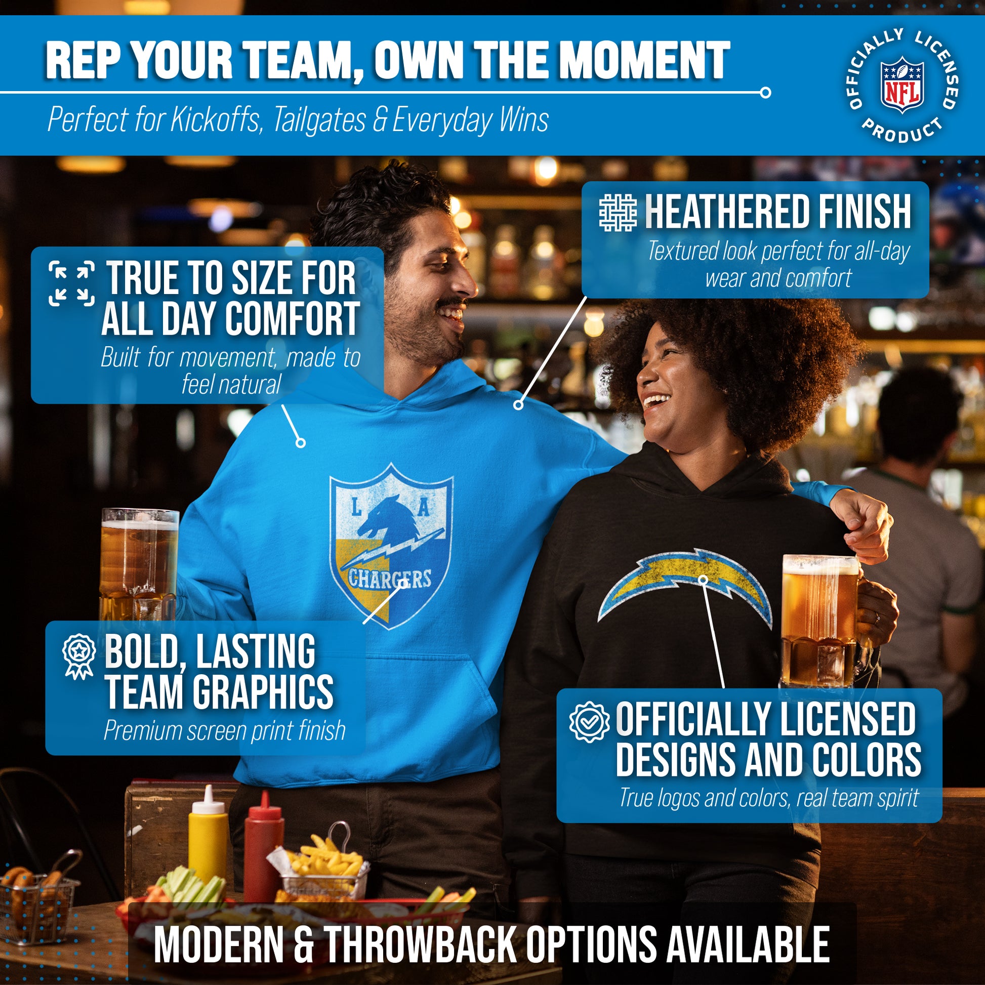 Los Angeles Chargers NFL Adult Unisex Modern Throwback Ultra Soft Fleece Hooded Sweatshirt - Black Heather