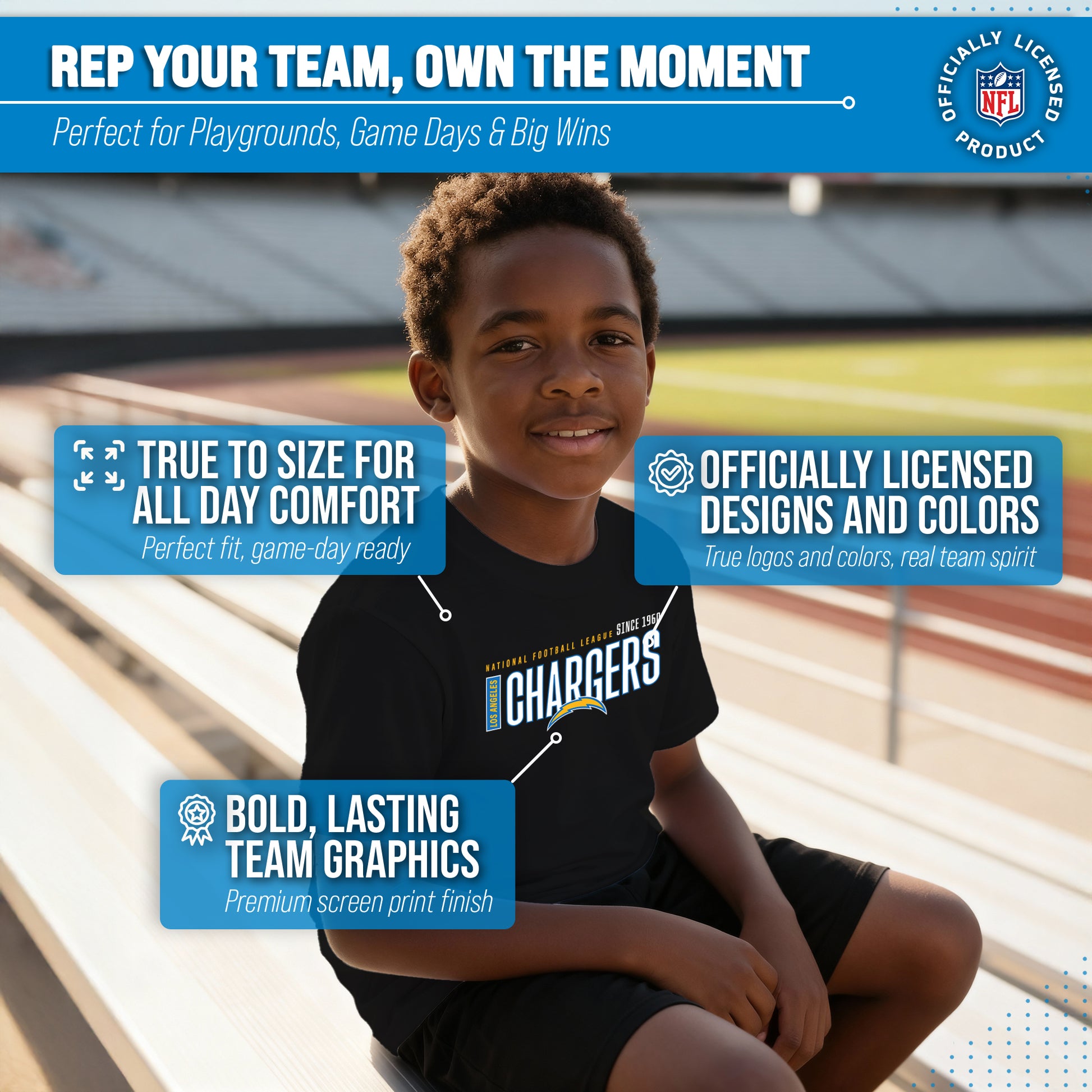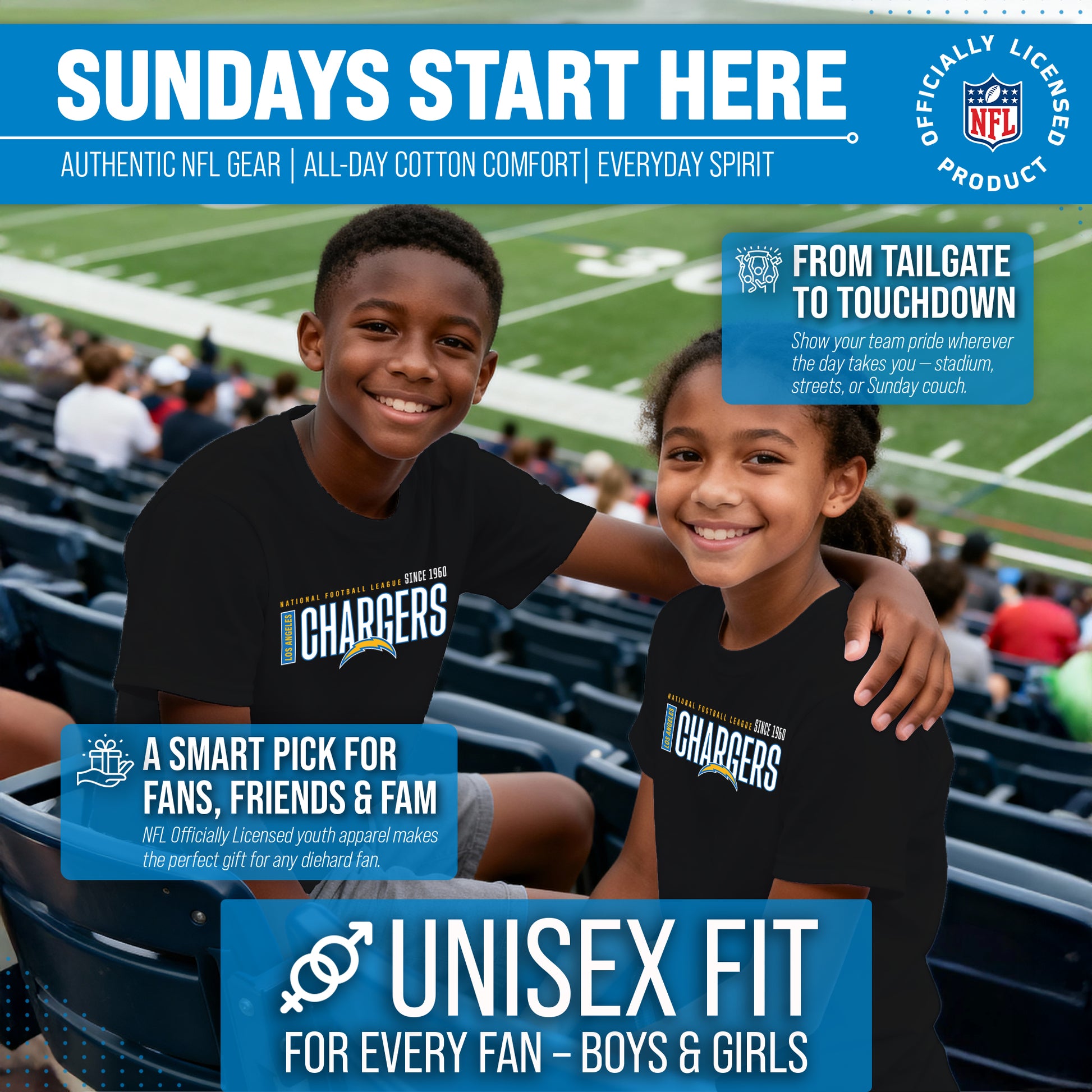 Los Angeles Chargers NFL Youth Modern Endzone Football T-Shirt Unisex Tag Free Comfortable - Black