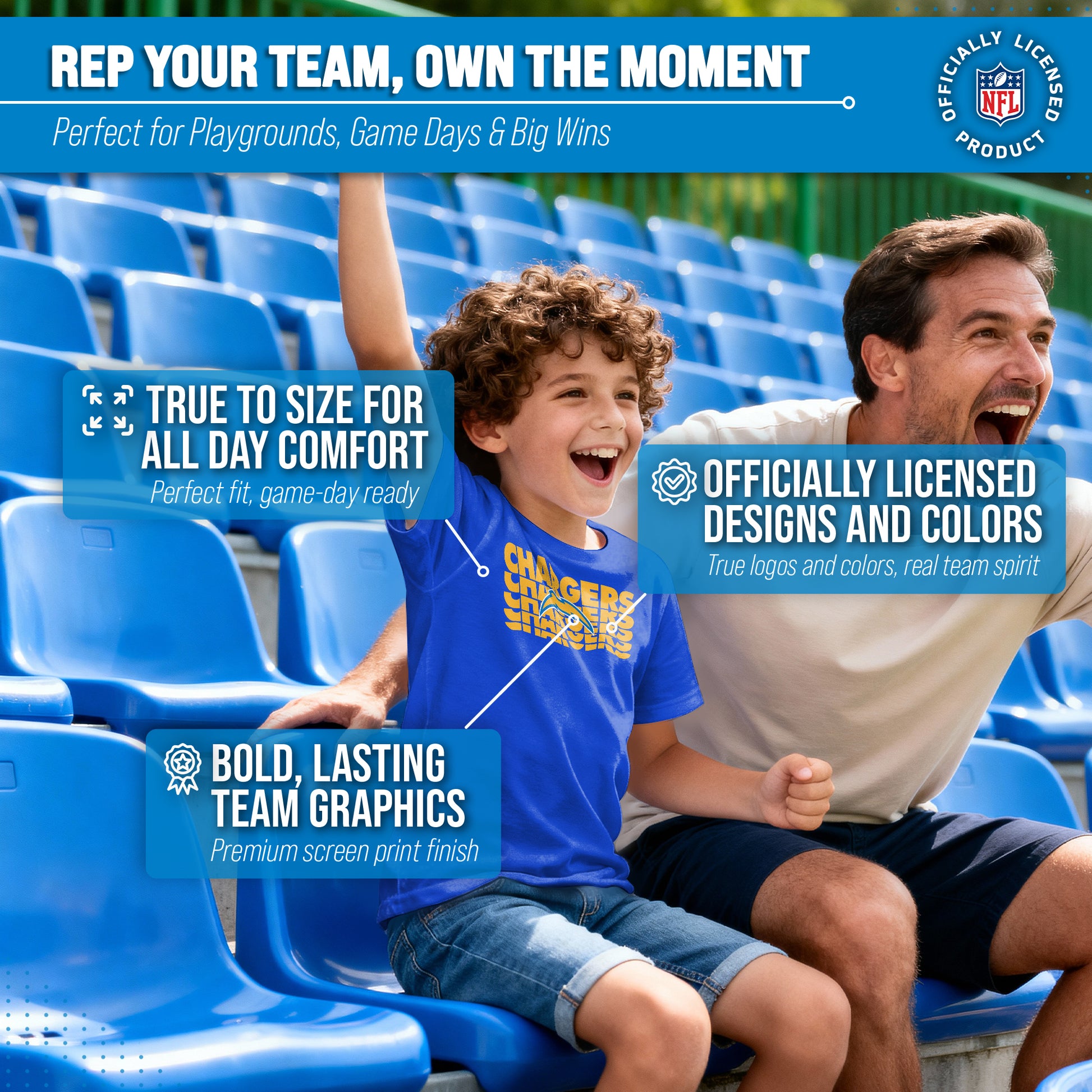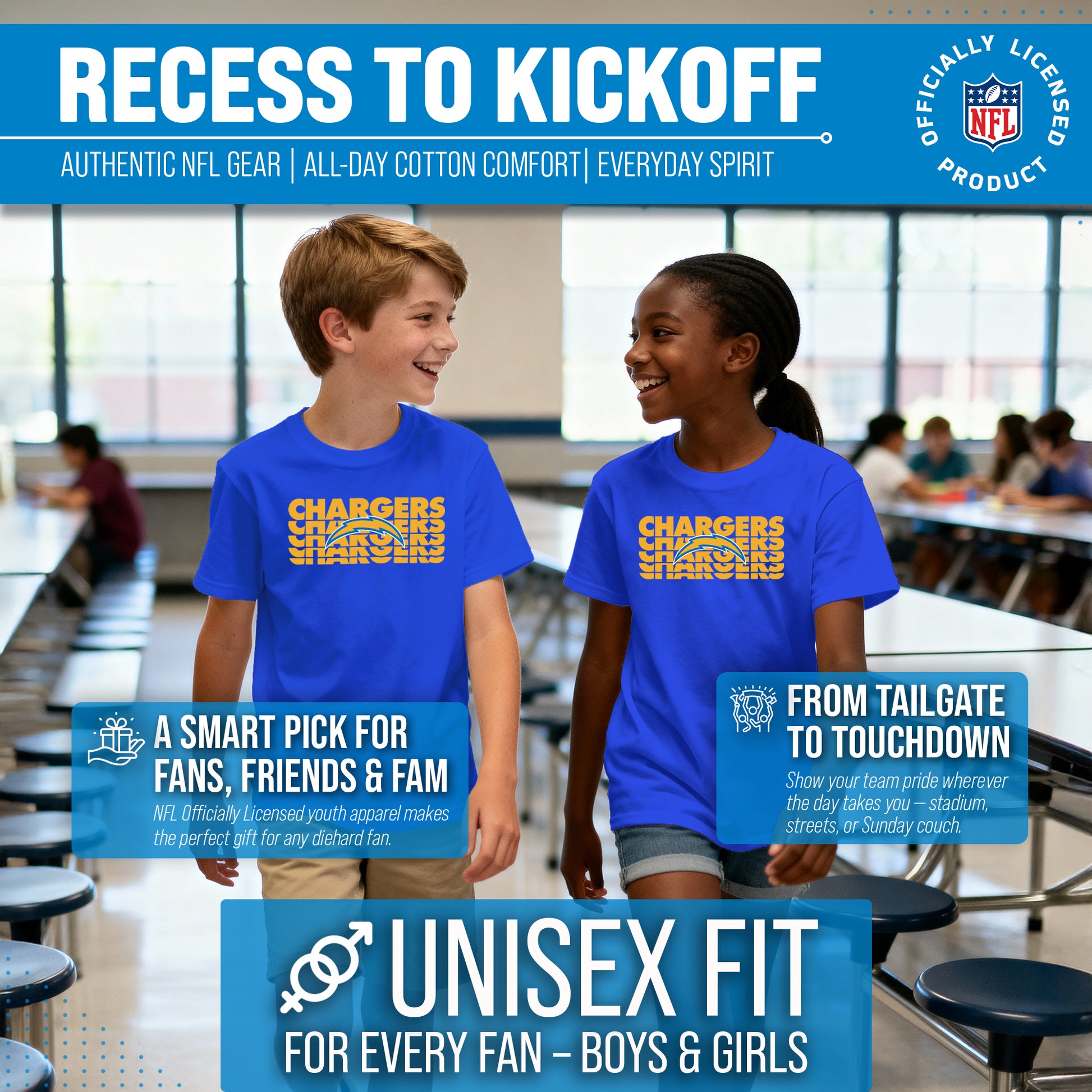 Los Angeles Chargers NFL Youth Repeating Logo Football T-Shirt Unisex Tag Free Comfortable - Royal
