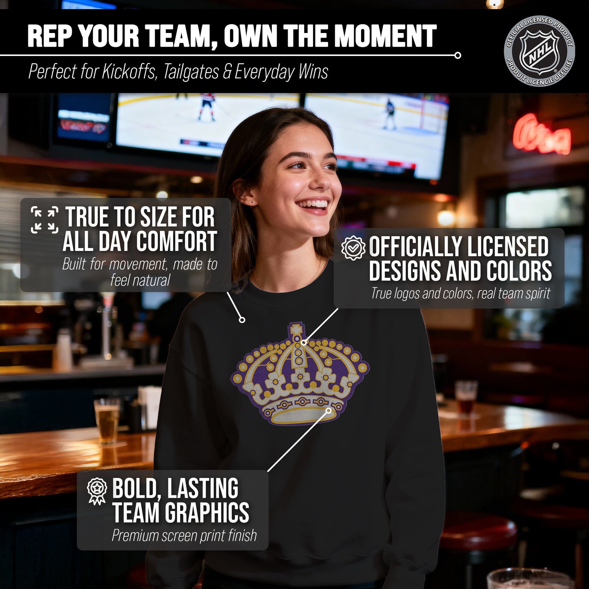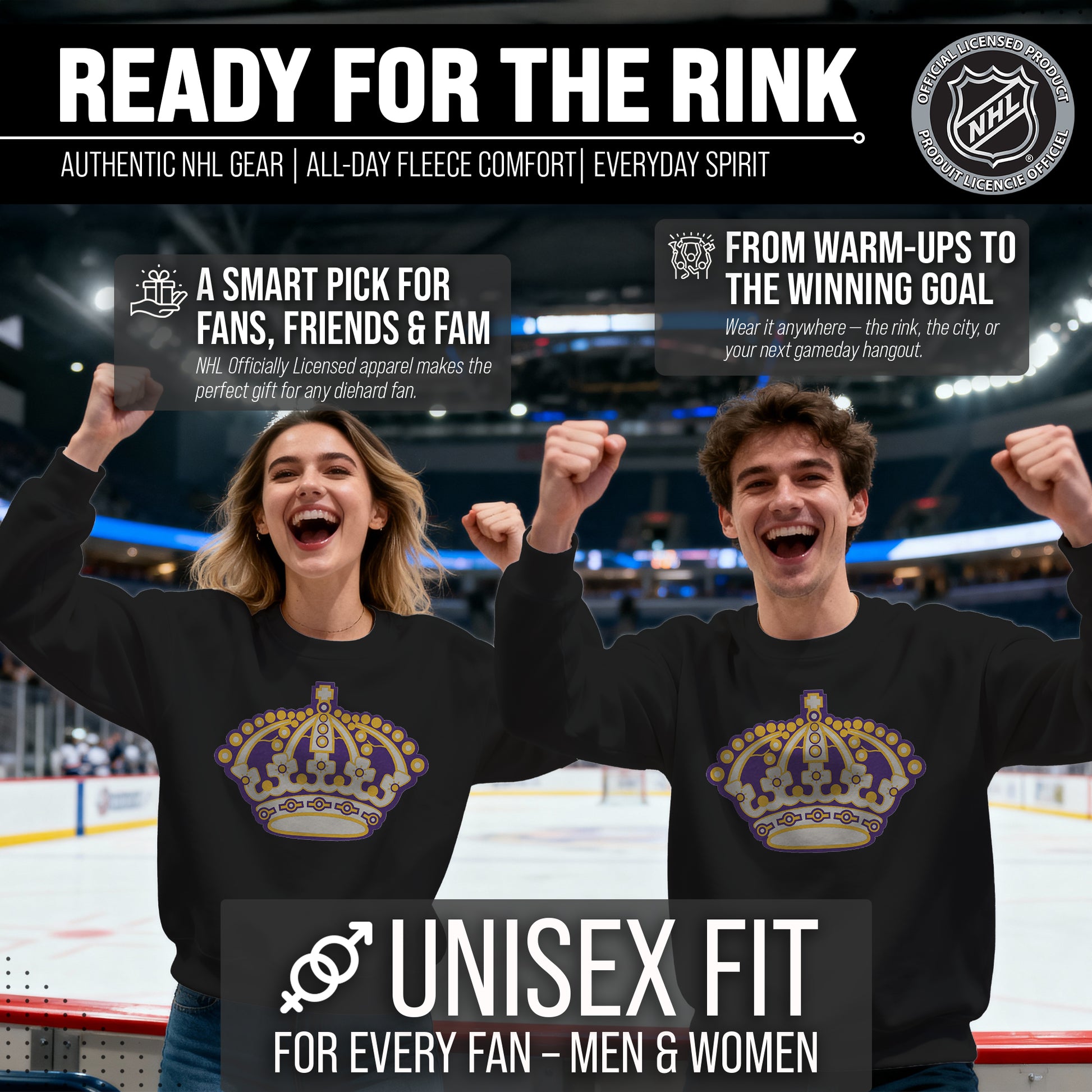 Hey there, fellow hockey fans! Show your team spirit in style with the Adult NHL Vintage Logo Crewneck Sweatshirt. Whether you're cheering on your team at the arena or snuggled up on the couch for game day, this ultra-soft fleece crew has got you covered. Designed for both men and women, this Los Angeles Kings sweatshirt has a true-to-size fit and is made from a comfortable poly-cotton fleece blend that will keep you cozy all season long. It features a Vintage Logo design with the Kings retro logo, making it the perfect addition to any fan's wardrobe. Officially licensed by the NHL, you can trust that you're getting a high-quality product that shows off your team pride. Available in a range of adult sizes, there's an option for every Kings fan out there. The cuffed waistband and wrists will keep you warm on cold winter days. So don't wait any longer - grab your NHL Vintage Logo Sweatshirt and get ready to root for your team in ultimate comfort and style!
