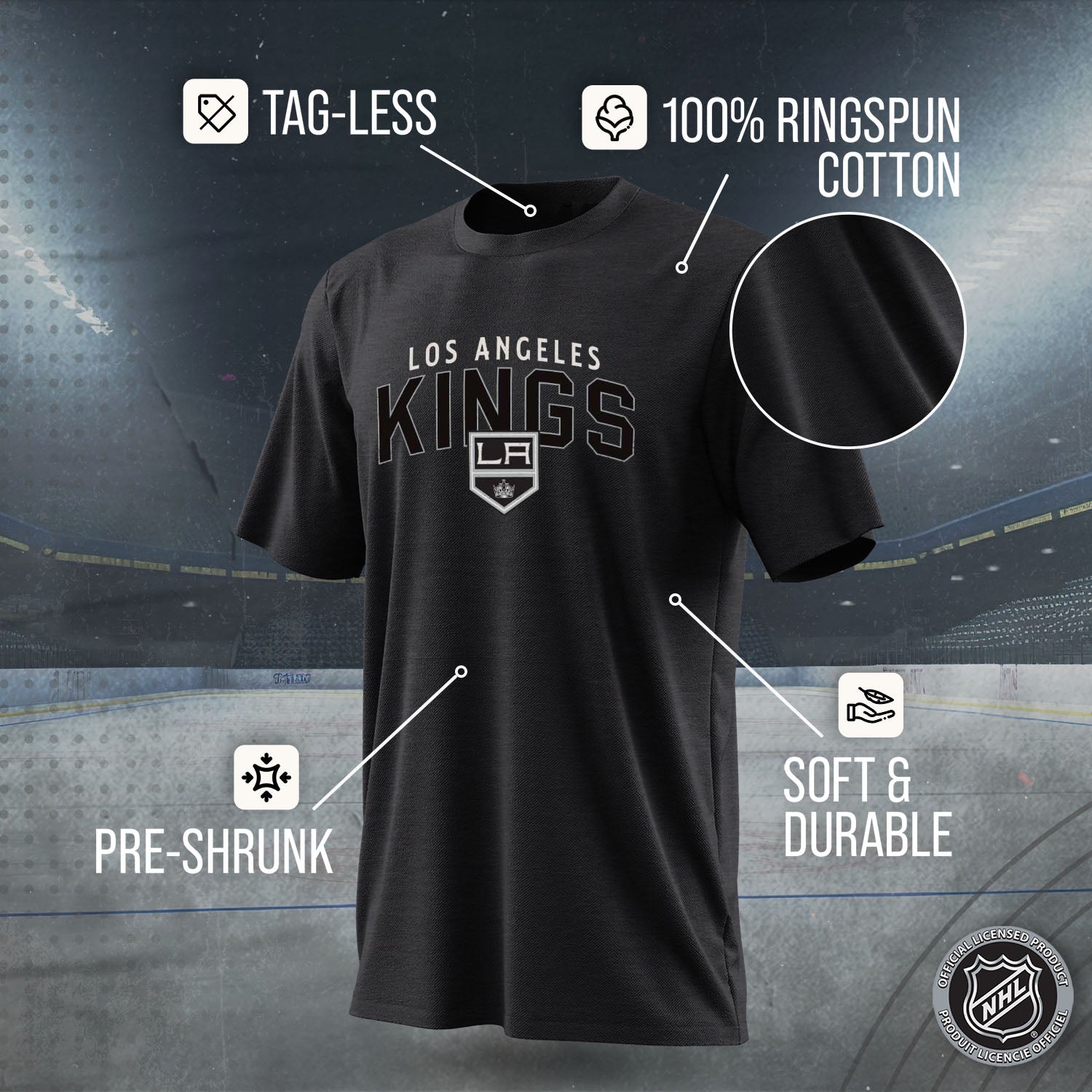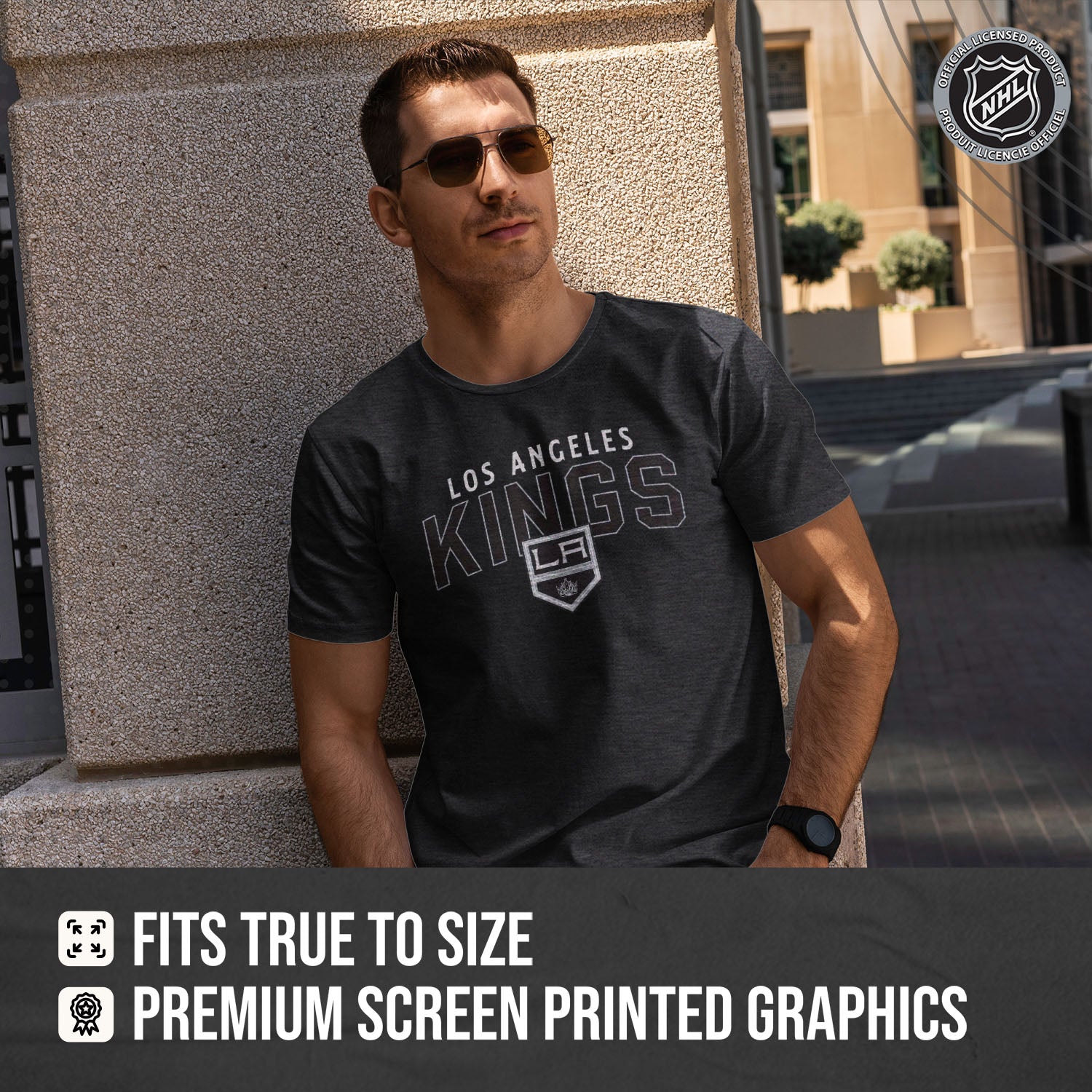Score with Team Fan Apparel, the ultimate destination for officially licensed NHL apparel for men and women. Design and printed in the USA, we use only the highest quality screen printing techniques to bring you the most comfortable, durable, and stylish clothing possible. Go ahead and show your team pride at the big game or any time! This premium Los Angeles Kings heather t-shirt fits both male and female adults and comes in small, medium, large, XL, and XXL. So needless to say, it fits Kings fans of all types! Maybe you aren't a hockey fan but you know someone who is? Don't worry! This high-quality t-shirt is soft, lightweight, breathable and a GREAT gift for any birthday, graduation, anniversary, Father's Day, Mother's day, you name it! So, if you want to stand out as the #1 fan at the next big game or watch party, you're going to want to be wearing one of these hockey t-shirts.