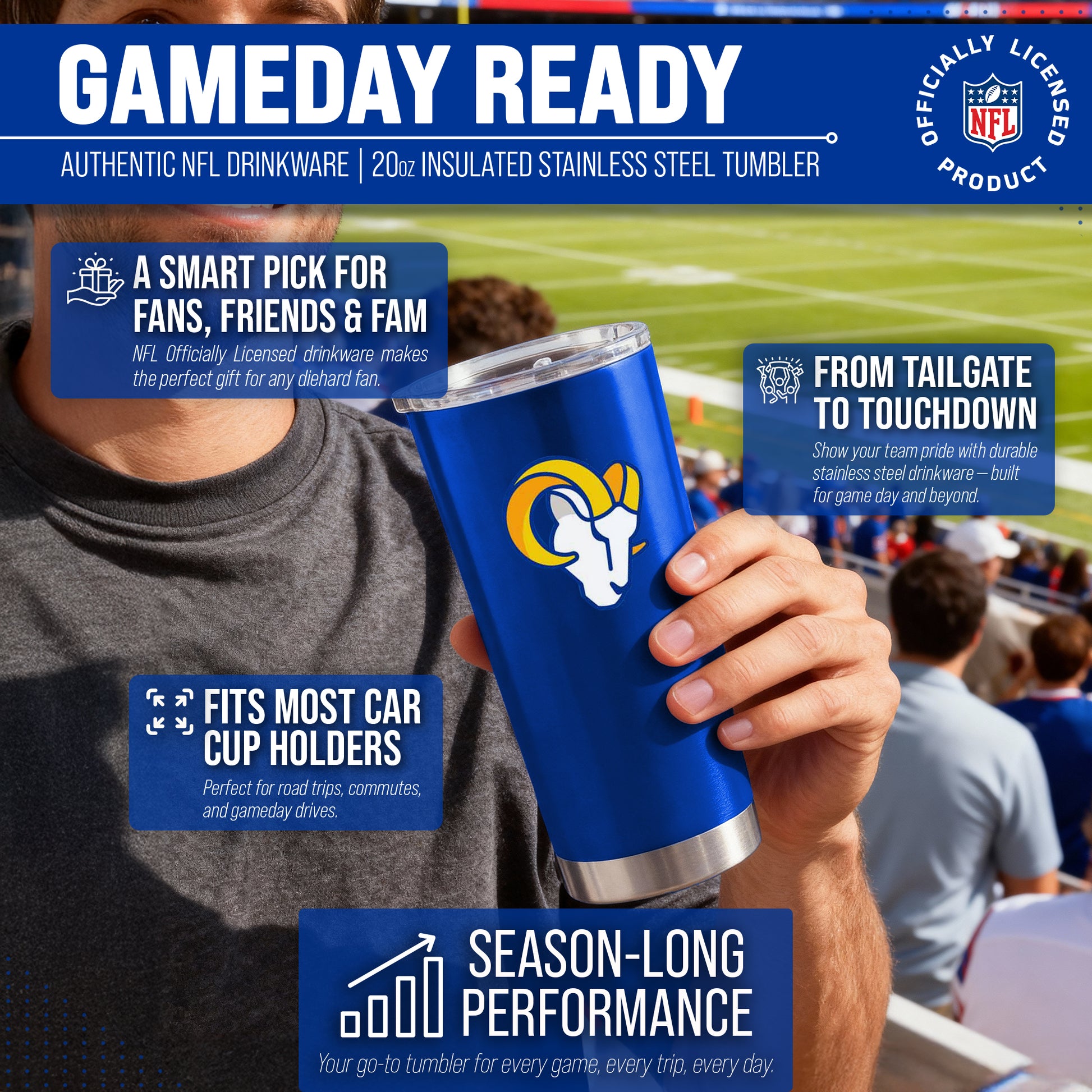 Los Angeles Rams NFL 20oz Gameday Stainless Steel Tumbler - Royal
