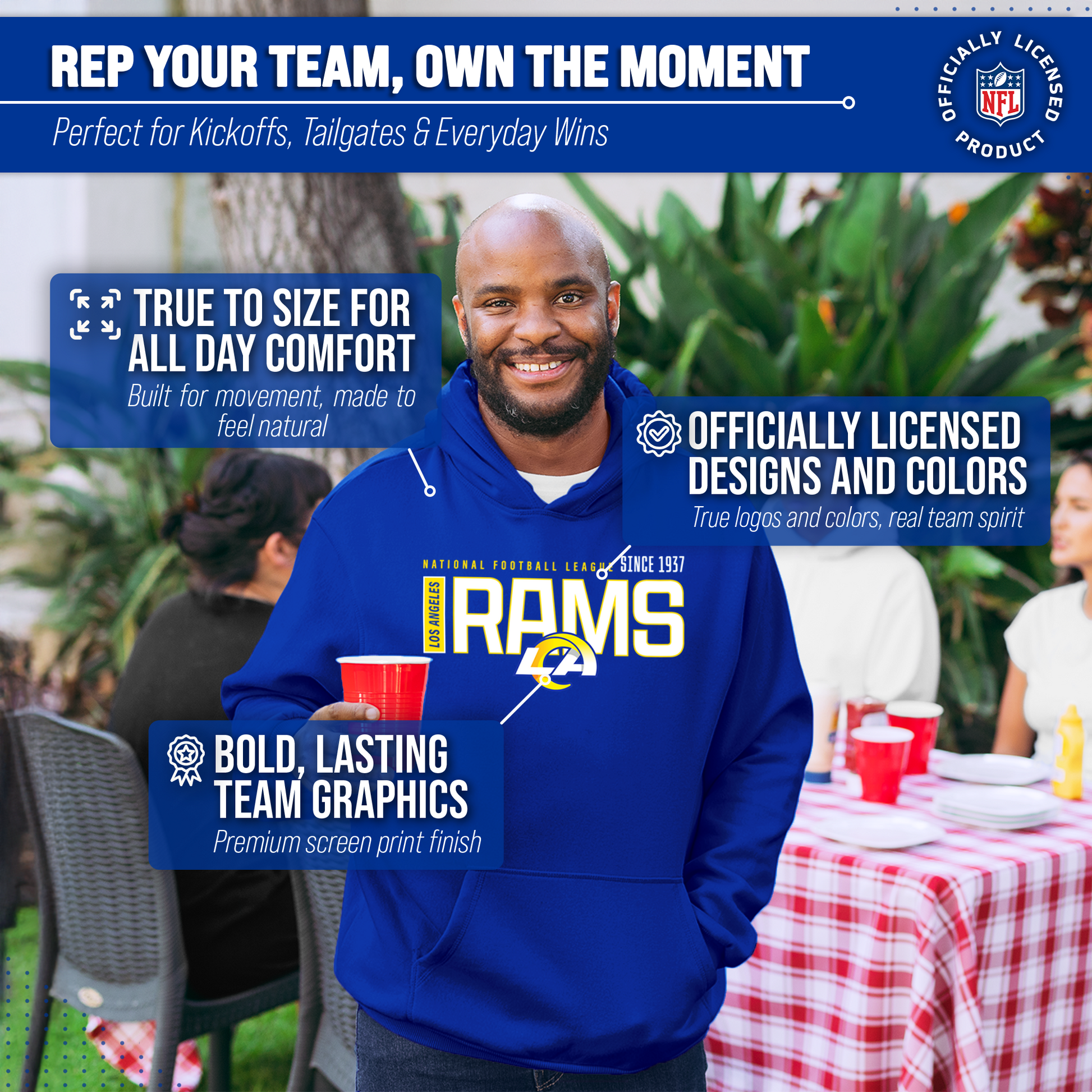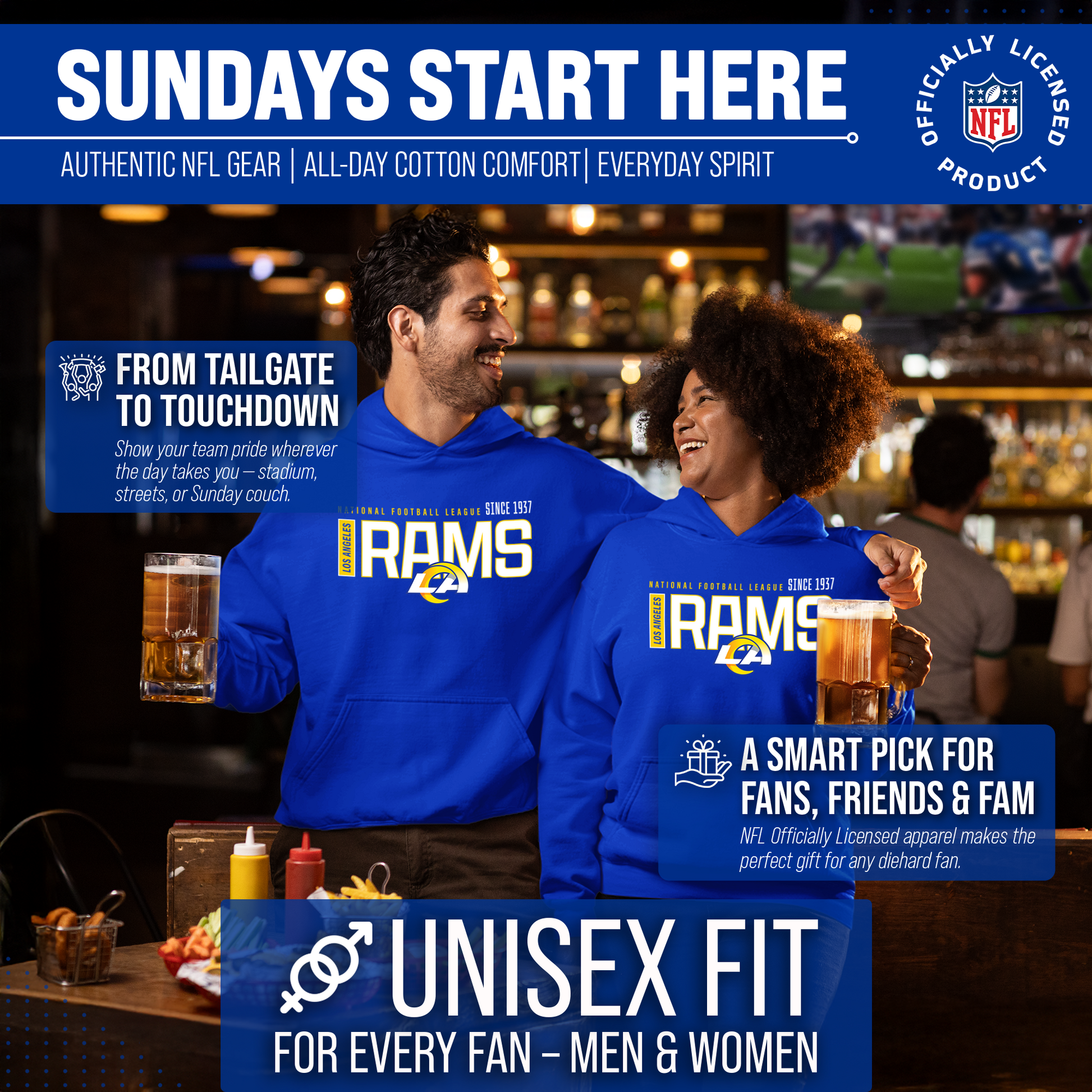 Los Angeles Rams NFL Adult Unisex Modern Endzone Soft Fleece Hooded Sweatshirt - Royal