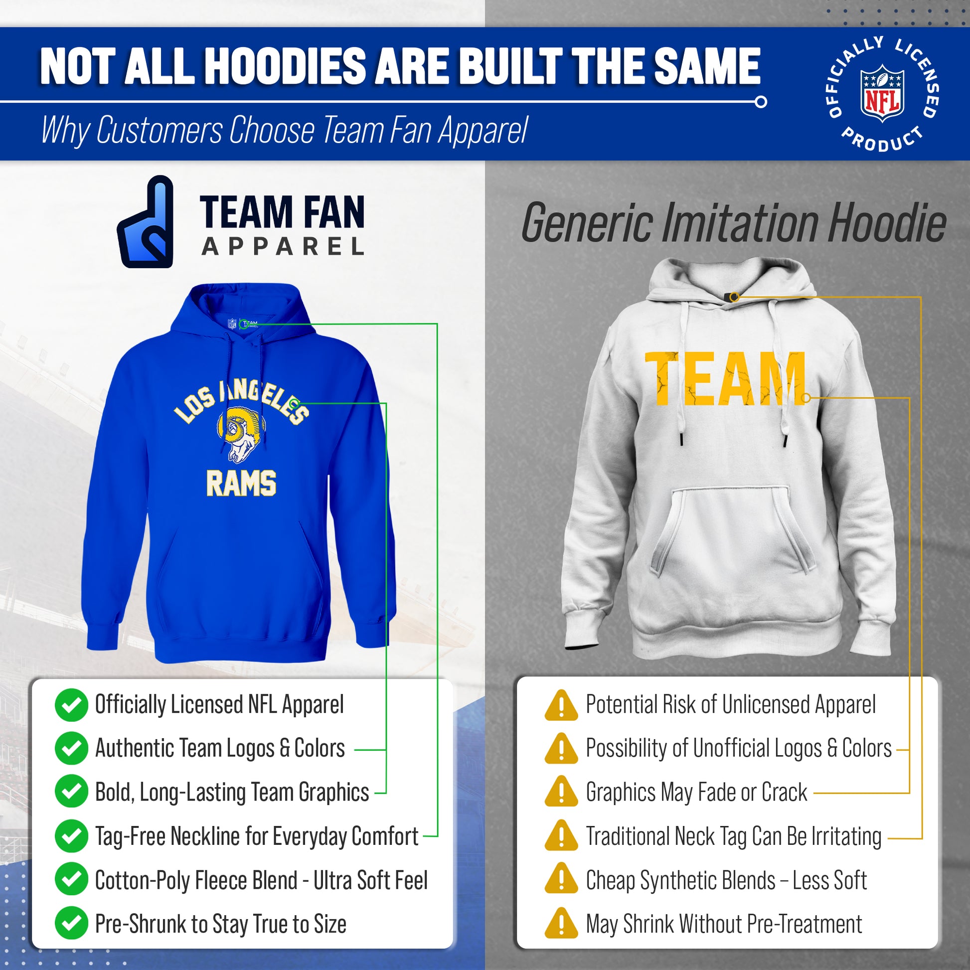 Get Ready to Show Your Team Spirit in the Most Comfortable Way Possible with Team Fan Apparel's Los Angeles Rams NFL Retro Gameday Hooded Sweatshirt! Made with ultra-soft fleece material, this hooded sweatshirt is perfect for game days or just lounging around the house. With its unique design and performance material, you can proudly represent your favorite team wherever you go. Not only is it officially licensed by the NFL, but it also comes in adult unisex sizing so both men and women can rock their team pride. The retro gameday design adds a vintage touch to your gameday attire, making you stand out from the crowd. So why settle for a basic sweatshirt when you can show off your style and support your team at the same time? Grab your NFL Retro Gameday Hooded Sweatshirt from Team Fan Apparel today and get ready to cheer on your Rams in ultimate comfort!