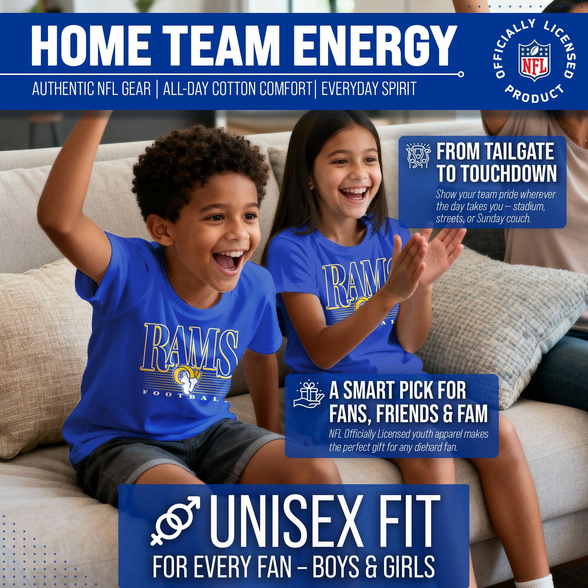 Los Angeles Rams NFL Youth Overtime Blueprint Football T-Shirt Unisex Tag Free Comfortable - Royal