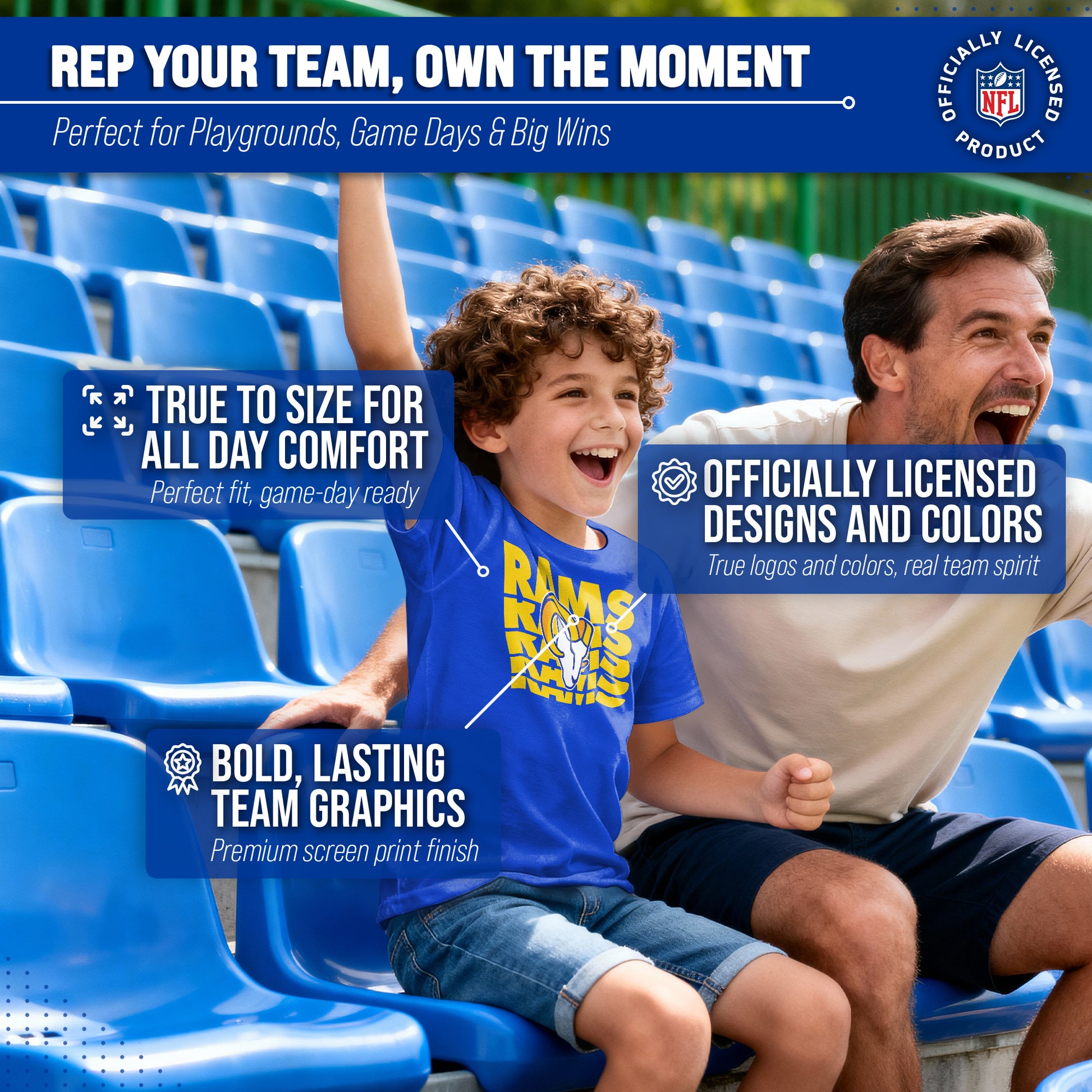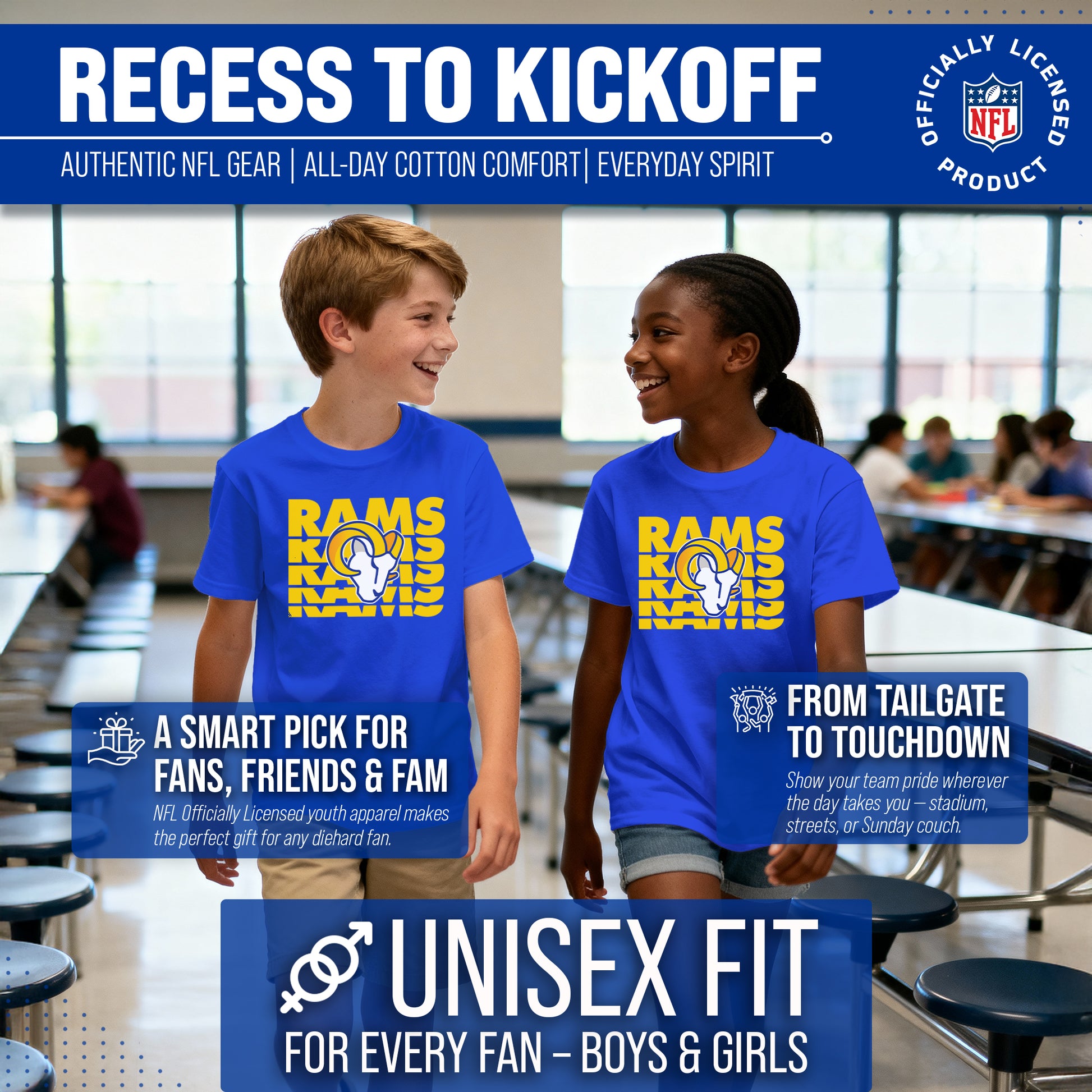 Los Angeles Rams NFL Youth Repeating Logo Football T-Shirt Unisex Tag Free Comfortable - Royal