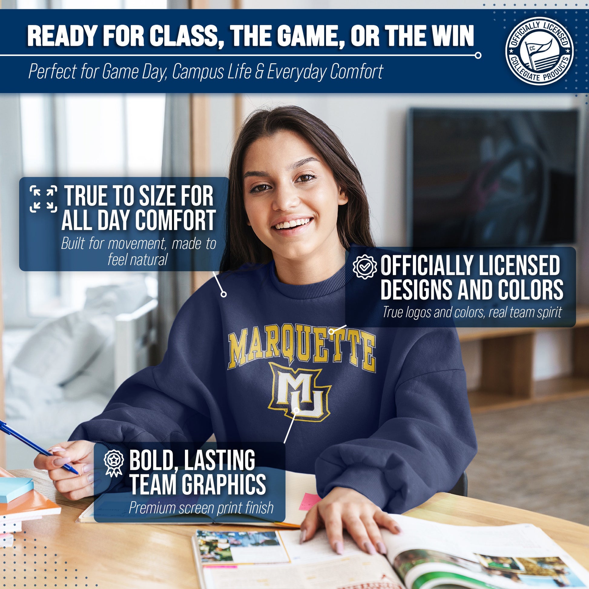 You know what's better than a perfect game? Scoring the best merch! Go ahead and show your team pride at the big game or any time! This premium-quality Gameday crew pullover is super comfy, fits both male and female adults, and comes in small, medium, large, XL, and XXL. So needless to say, it fits Marquette Golden Eagles fans of all types! Maybe you aren't a Marquette fan but you know someone who is? Don't worry! This high-quality design machine washable unisex fit crew is perfect for anyone who loves their team. We use only the highest quality screen printing techniques to bring you the most comfortable, durable, and stylish team apparel possible. It doesn't matter if your headed to the next big game or just hanging out at home, the love of your favorite team never stops. So, make sure the everyone know who's the number one team you support. Our crew sweatshirts make the perfect gift for Father's Day, birthdays, Christmas, and more.