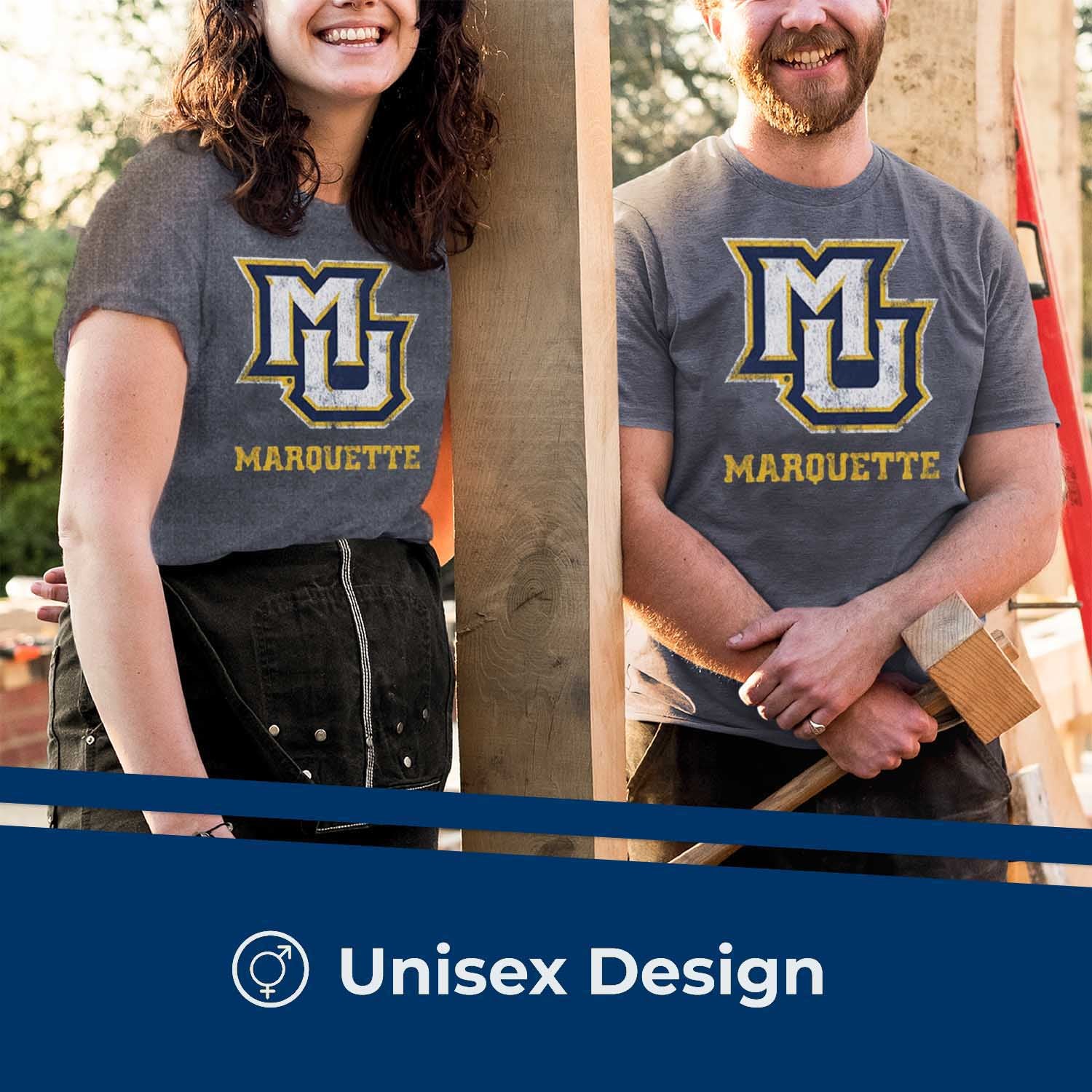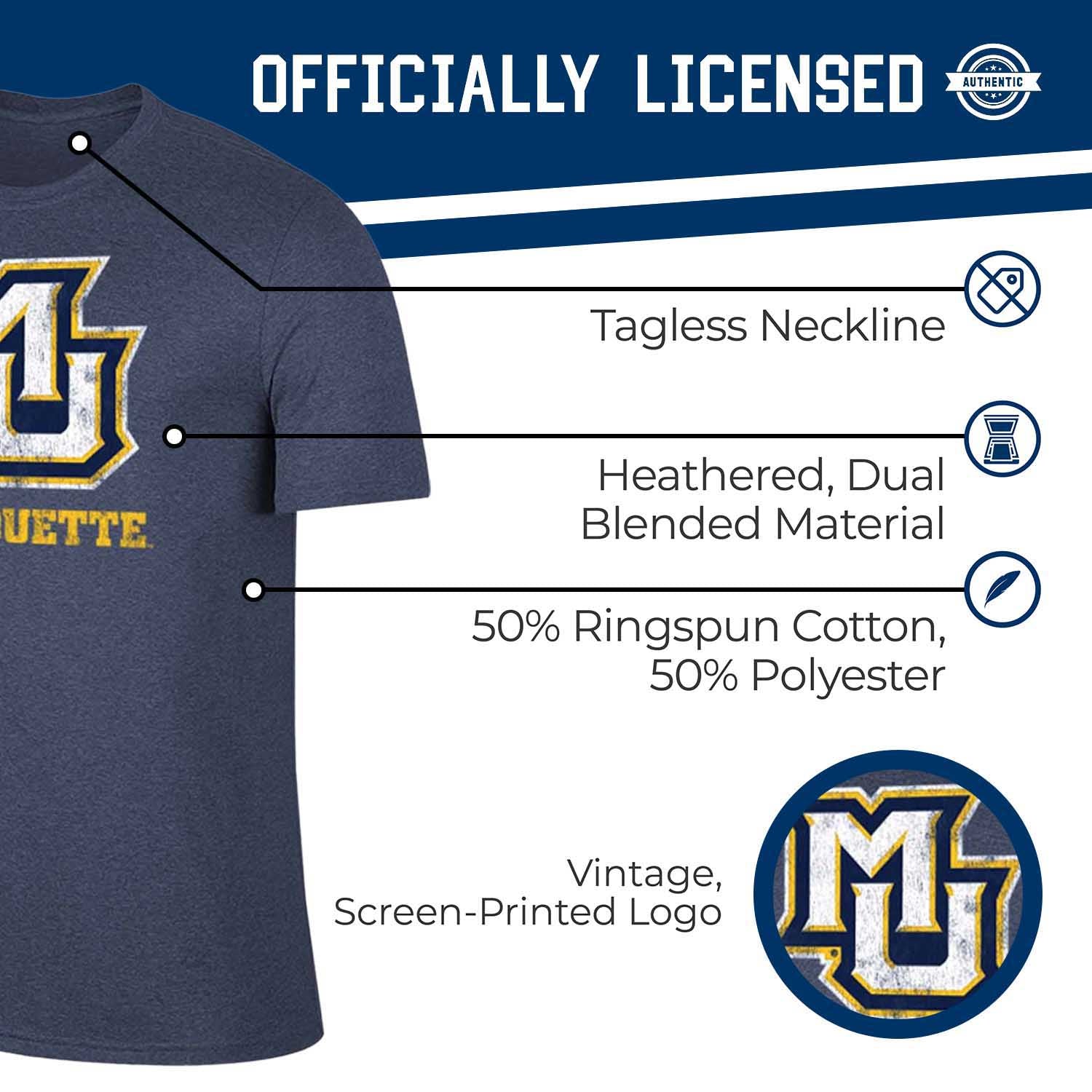 Support your Golden Eagles through another successful season while sporting this must-have shirt! Your dedication will be on full display when you wear the Marquette Golden Eagles NCAA Adult MVP Heathered Logo T-Shirt! This heathered t-shirt features official team colors as well as your favorite team name and logo! The screen printed graphics are displayed in a vintage style that gives you the look of a loyal and seasoned fan. Made from a dual blend of ringspun cotton and polyester, this super soft shirt will have you staying comfortable all day long! Wear it at the next tailgate or big game, or even while you watch your team win from home! Perfect for yourself or that next birthday, Christmas, or graduation gift you need to find! Never let your Golden Eagles fandom be questioned again, get this shirt today!