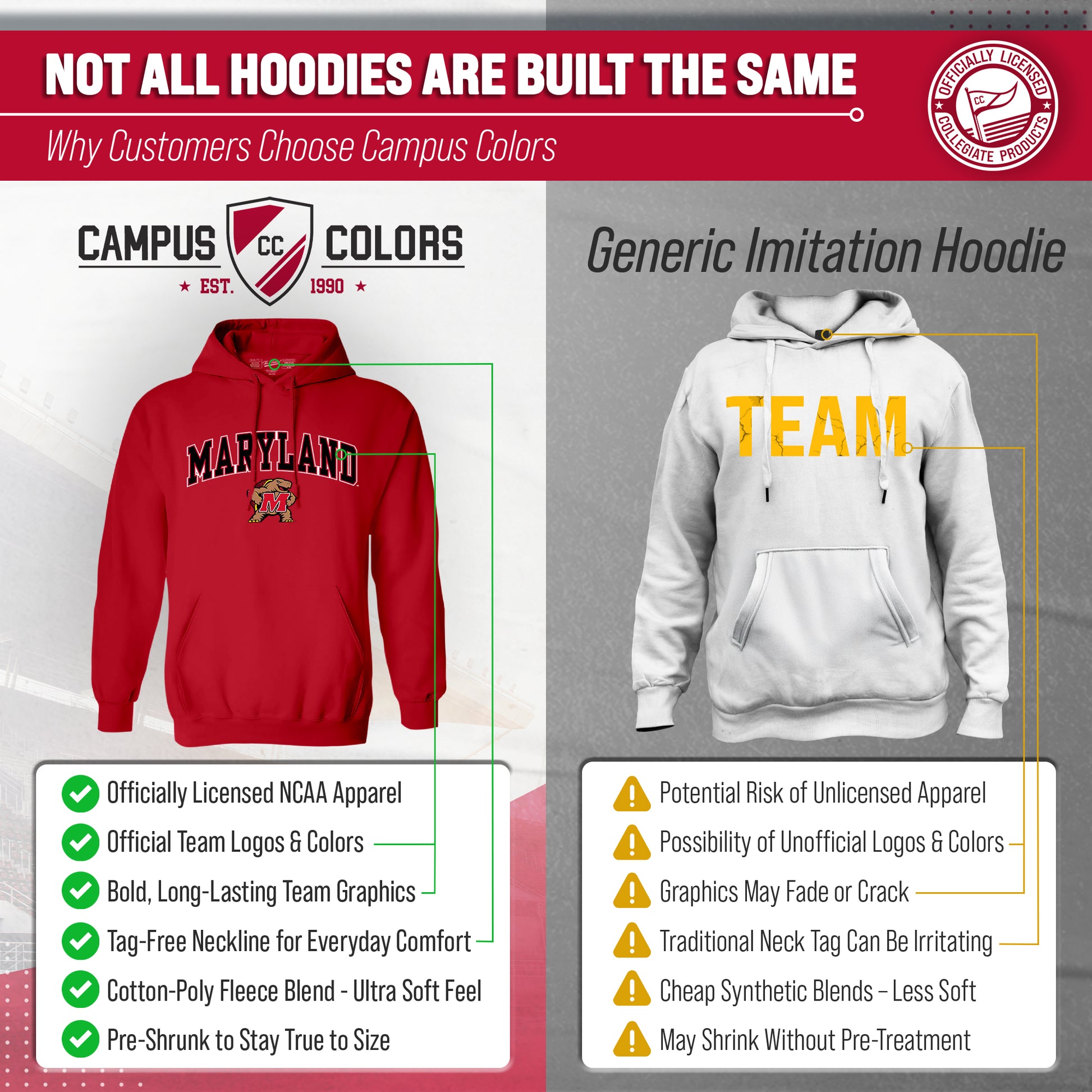 Score with Campus Colors, the ultimate destination for officially licensed college apparel for men and women. Design and printed in the USA, we use only the highest quality screen printing techniques to bring you the most comfortable, durable, and stylish clothing possible. Go ahead and show your team pride at the big game or any time! This premium-quality Gameday hoodie is super comfy, fits both male and female adults, and comes in small, medium, large, XL, and XXL. So needless to say, it fits Maryland Terrapins fans of all types! Maybe you aren't a Maryland fan but you know someone who is? Don't worry! This high-quality sweatshirt is soft, lightweight, breathable and a GREAT gift for any birthday, anniversary, Father's Day, Mother's day, you name it! So, if you want to stand out as the #1 Terrapins fan at the next big tailgate party, homecoming parade, or watch party, you're going to want to be wearing one of these Gameday sweatshirts.