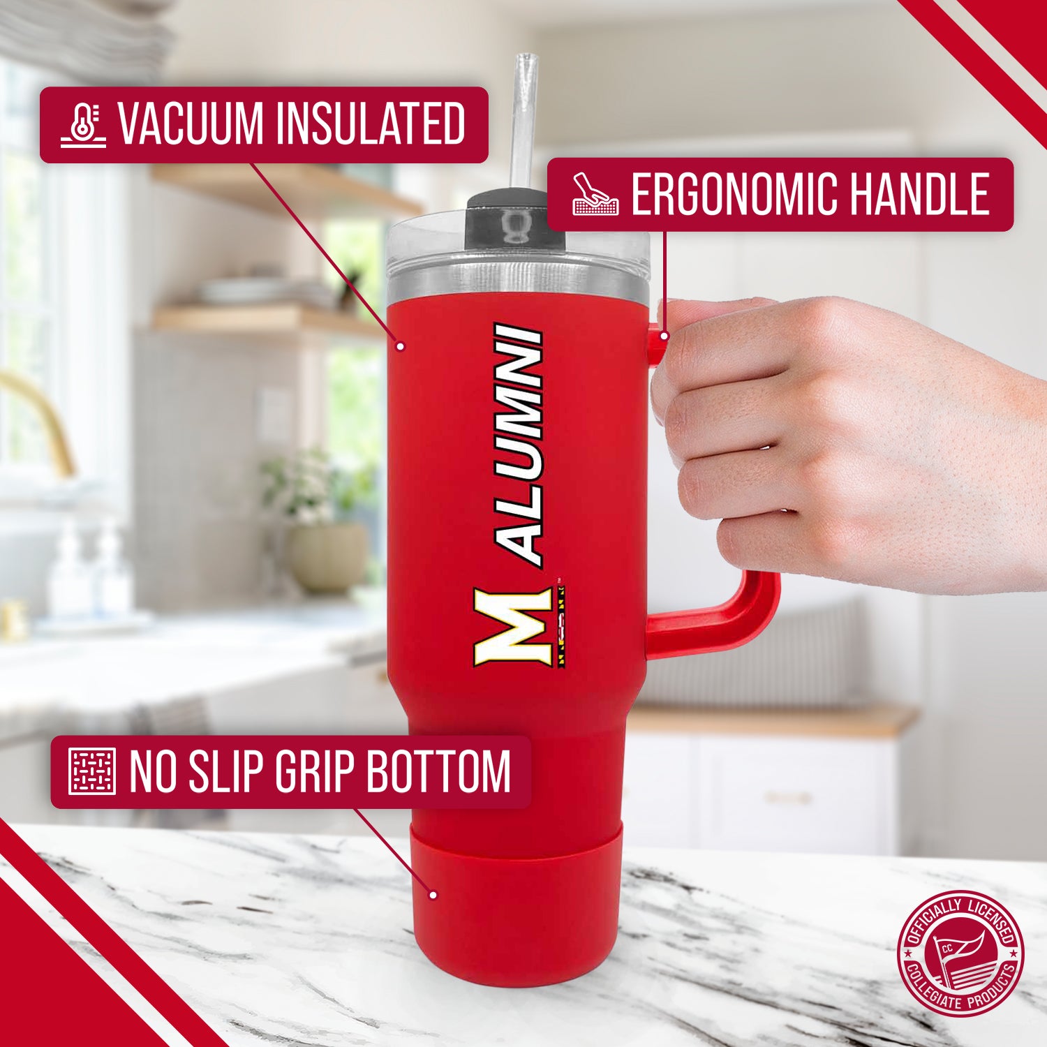Maryland Terrapins Collegiate 40oz Stainless Steel Travel Tumbler with Handle for Alumni - Red