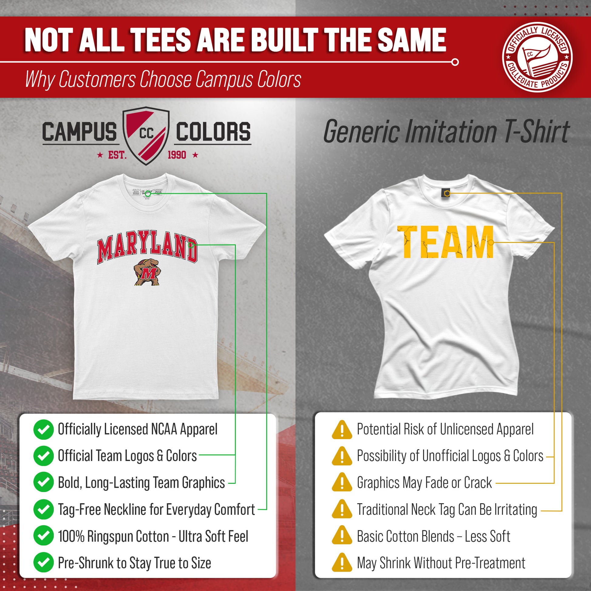 Score with Campus Colors, the ultimate destination for officially licensed college apparel for men and women. Design and printed in the USA, we use only the highest quality screen printing techniques to bring you the most comfortable, durable, and stylish clothing possible. Go ahead and show your team pride at the big game or any time! This premium-quality Gameday t-shirt fits both male and female adults and comes in small, medium, large, XL, and XXL. So needless to say, it fits Maryland Terrapins fans of all types! Maybe you aren't a Maryland fan but you know someone who is? Don't worry! This high-quality t-shirt is soft, lightweight, breathable and a GREAT gift for any birthday, anniversary, Father's Day, Mother's day, you name it! So, if you want to stand out as the #1 Terrapins fan at the next big tailgate party, homecoming parade, or watch party, you're going to want to be wearing one of these Gameday t-shirts.