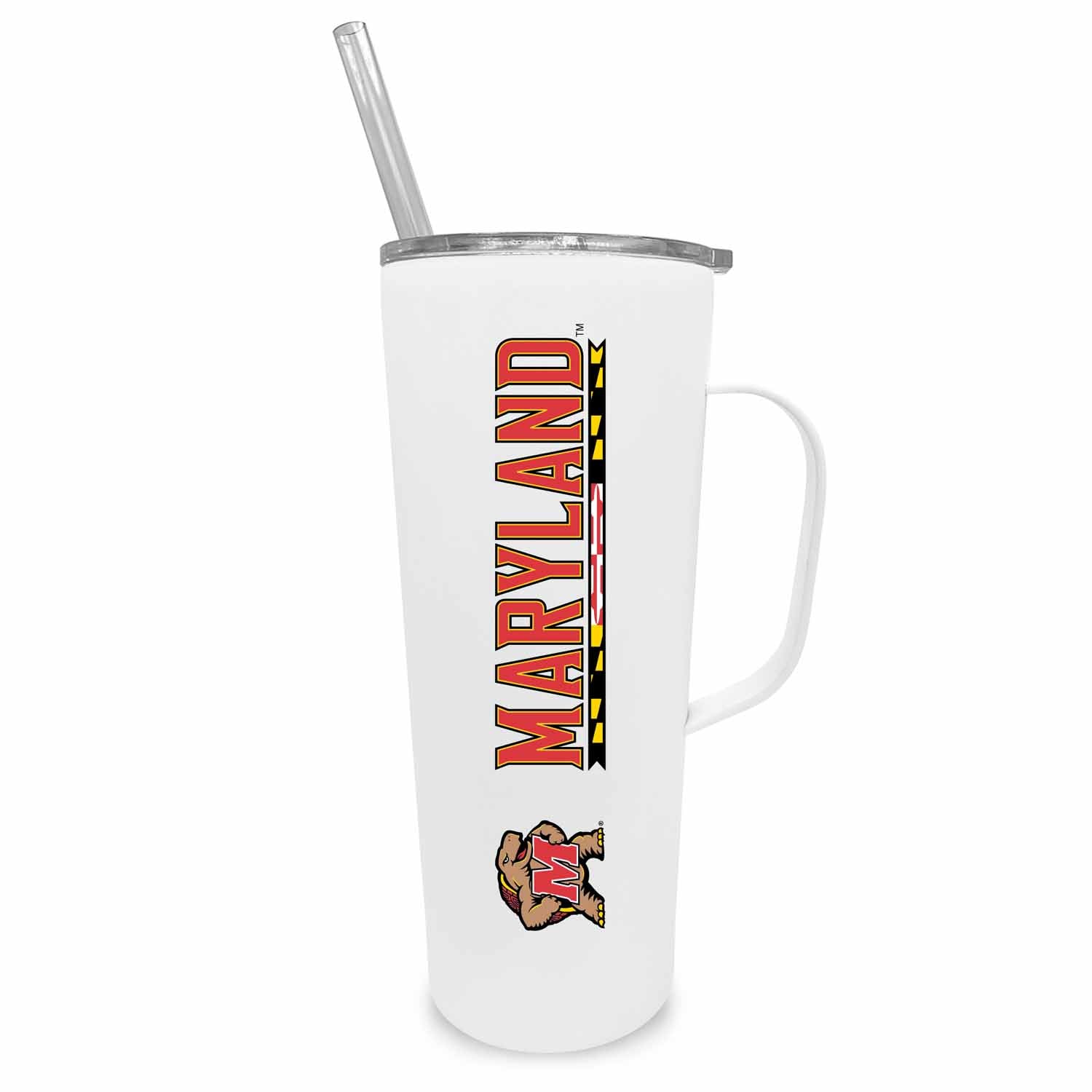 Maryland Terrapins NCAA Stainless Steel 20oz Roadie With Handle & Dual Option Lid With Straw - White