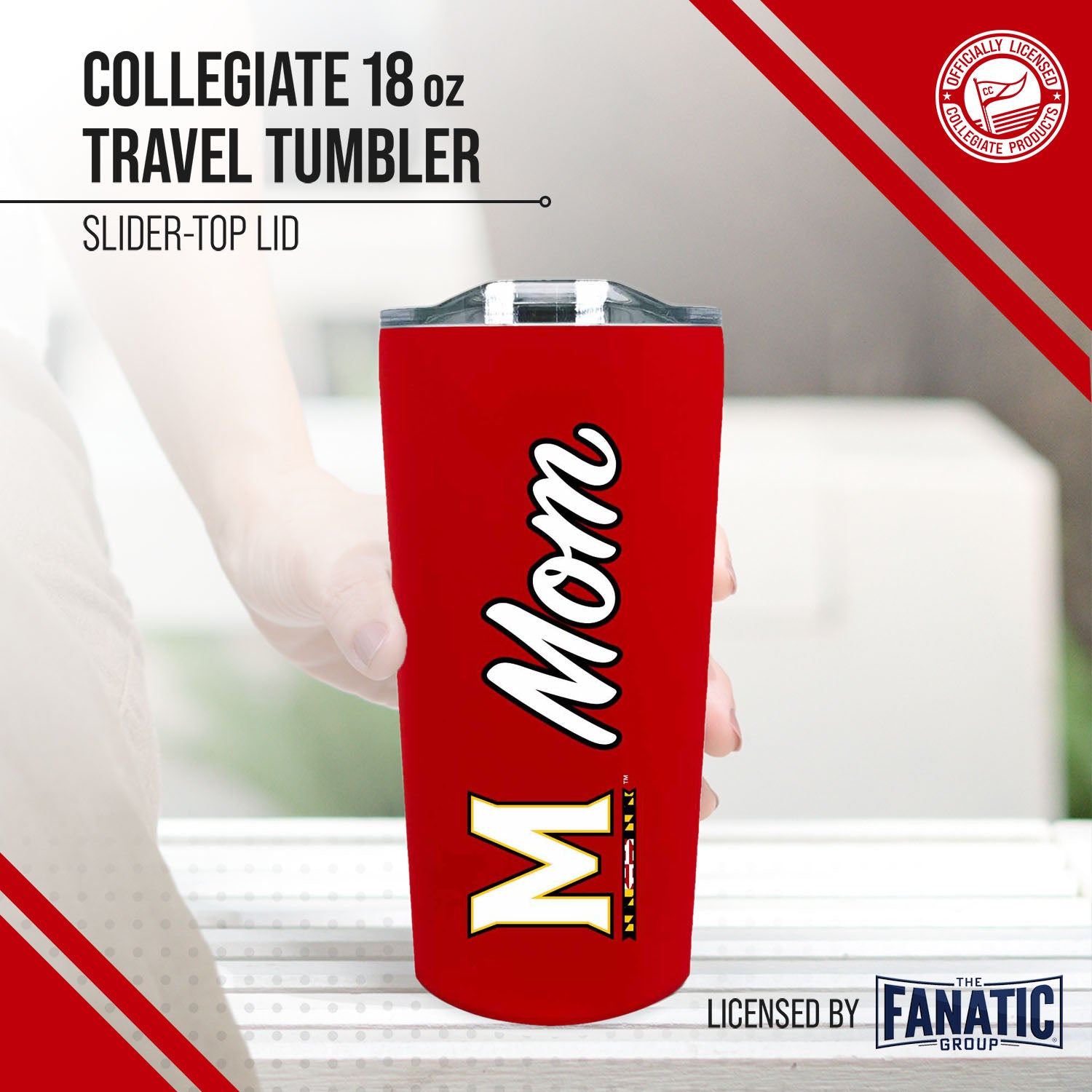 Our stainless steel tumbler mugs for mom are designed for constant use in any type of setting! At a sports game? These insulated tumblers are compact and can fit in most cup holders. On the move? Our contoured spout makes it easy to sip on the go! Your tumbler is there to compliment your Maryland sweatshirt when you need to stay warm and there when you're looking for an ice-cold refreshment. No matter the setting, show your school and mom pride while properly and efficiently preserving the desired temperature of your beverage! This Maryland Terrapins MOM travel mug also makes a great gift if you're looking to give your mom, step mom, or mother figure in your life a present! All of our products feature the official team colors, logos and lettering. We don't skimp on quality in any way. The colors are always vibrant and the graphics are always accurate and brimming with team spirit. Let everyone know you're a cool mom and get this mom tumbler today!