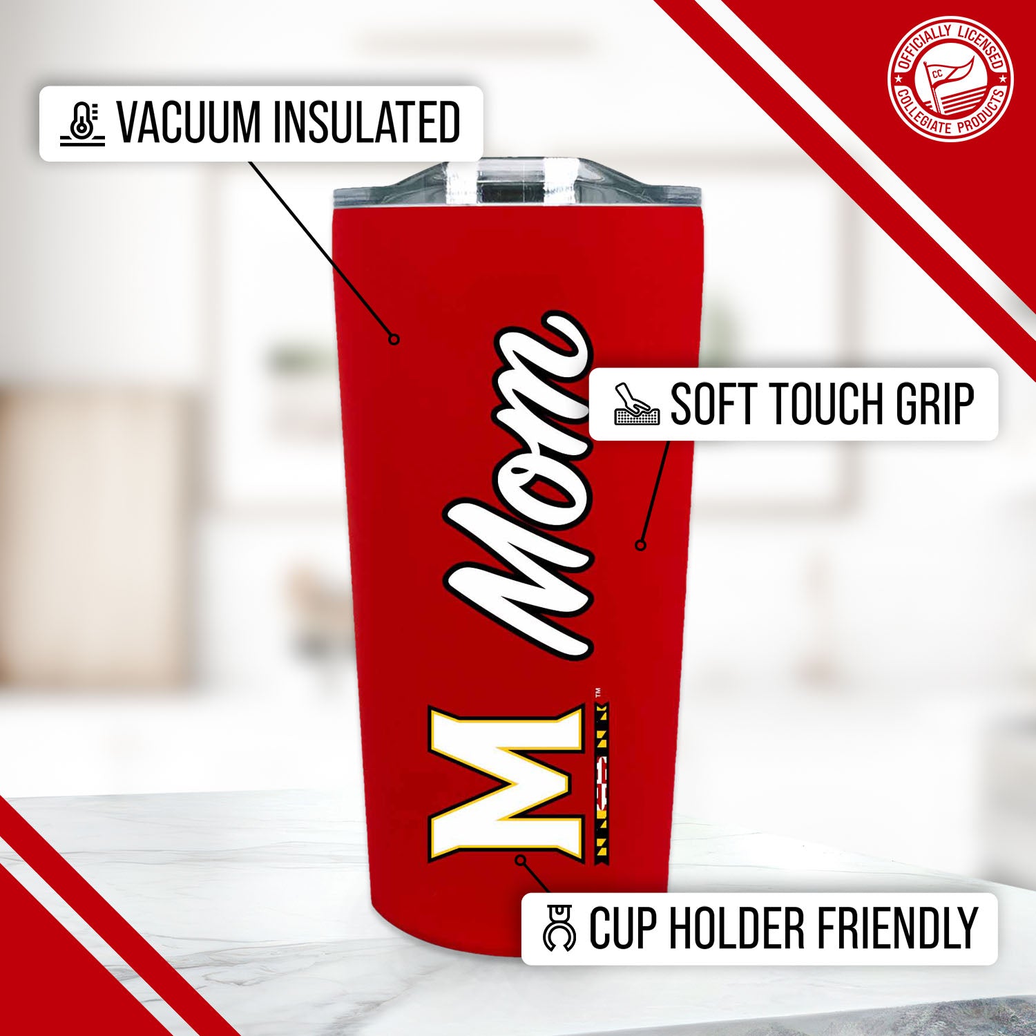 Maryland Terrapins NCAA Stainless Steel Travel Tumbler for Mom - Red