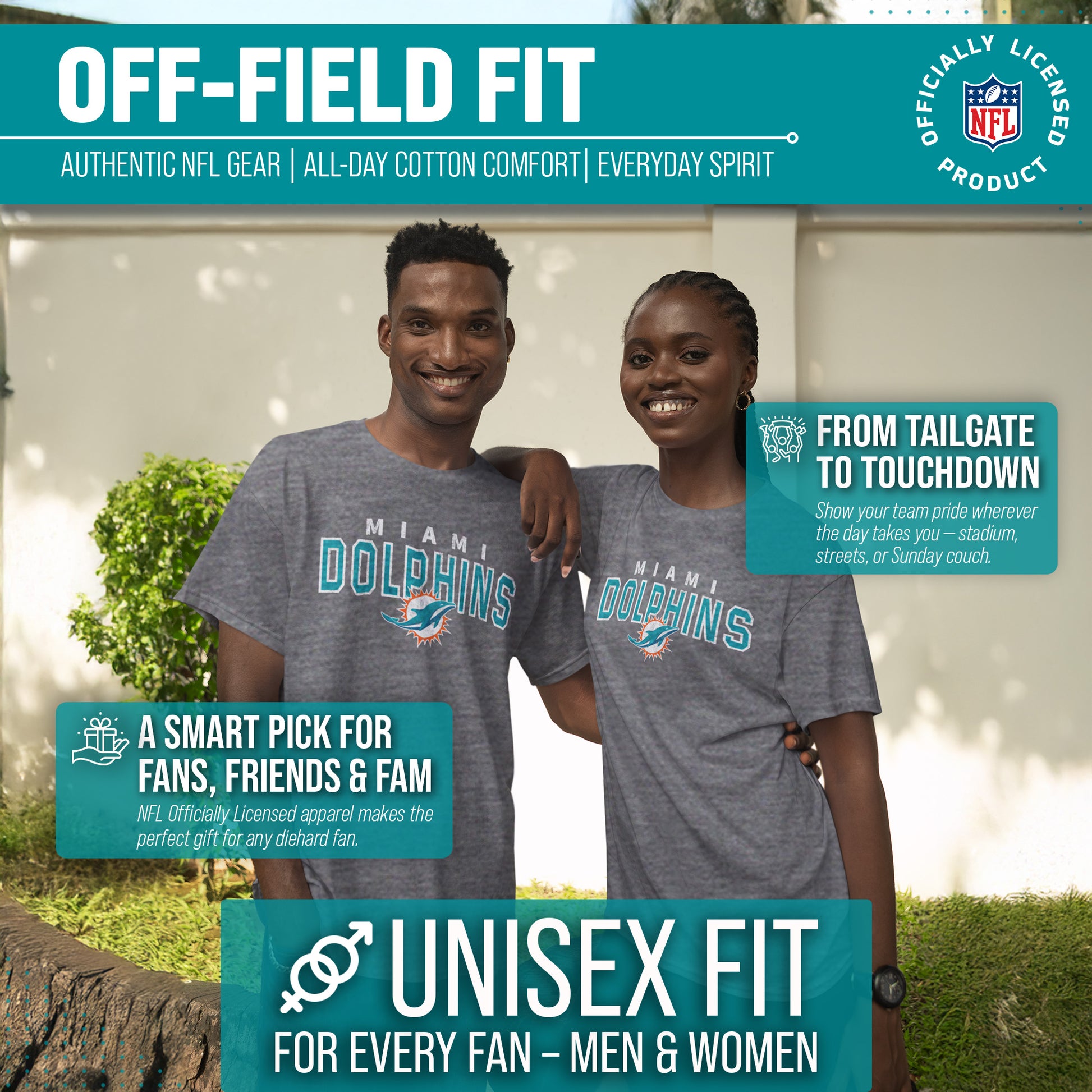 The Starting Fresh Tee is the perfect shirt for any fan of the Miami Dolphins. The Miami Dolphins cotton shirt is made from a polyester/cotton blend and has a soft feel. The material is lightweight, durable, and beyond comfortable. This Miami Dolphins tee also features an officially licensed team wordmark design in a minimalistic style that shows off your fandom without being too flashy or bold. Whether you're wearing this shirt to the football game or just lounging around at home, you'll love how great it feels against your skin. This Miami Dolphins t-shirt makes the perfect gift for Miami Dolphins fans. If you're looking for Miami Dolphins gifts for men, Miami Dolphins for women, athletic shirts, Dolphins merchandise, Dolphins gear, Miami Dolphins Christmas gifts or Miami Dolphins birthday gifts, look no further than the Dolphins shirt. It's the best Dolphins gear for men and short-sleeve Dolphins pro football t-shirt. Get yours today!