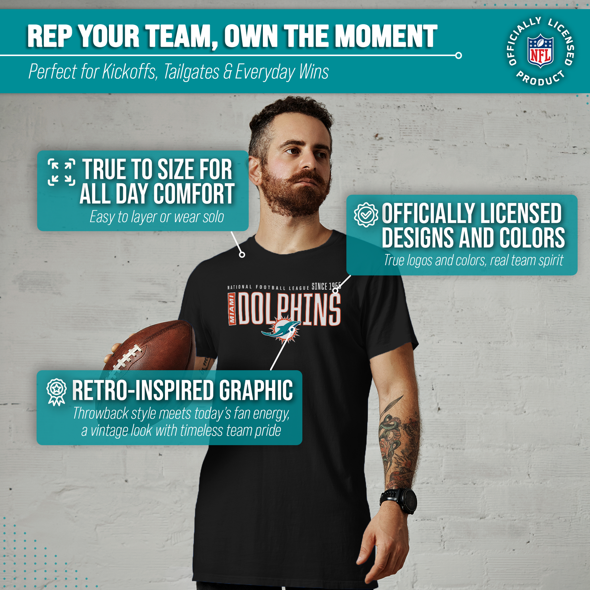 Miami Dolphins NFL Adult Modern Endzone Tag-Less T-Shirt - Black