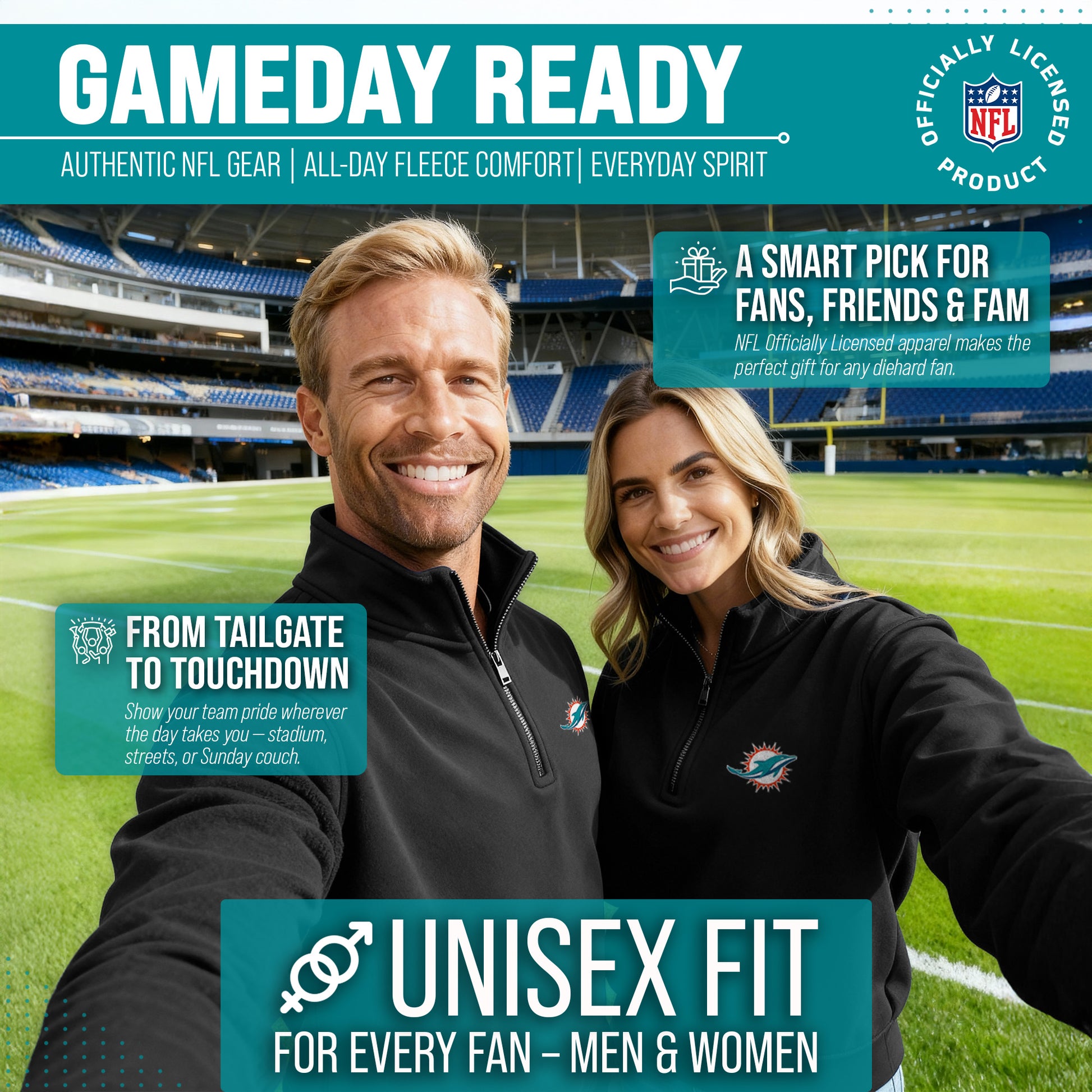 Show off your Miami Dolphins pride with the officially licensed NFL Team Logo 1/4 Zip Fleece Pullover Sweatshirt! Designed with fans in mind, this cozy and stylish pullover is the perfect way to represent your favorite team all season long. Crafted with ultra-soft fleece fabric, it delivers warmth and comfort whether you’re braving chilly stadium seats, tailgating with friends, or simply cheering on the Dolphins from home. The classic quarter-zip design adds versatile style and makes layering easy, so you can throw it on over a tee or under a jacket as the temperature drops. With the authentic Miami Dolphins logo proudly displayed on the front left chest, your loyalty will be clear to everyone around you. No matter where game day takes you, this pullover is a statement piece that showcases true Dolphins spirit. Made for both men and women, this sweatshirt features a flattering unisex fit that looks great on all body types. It’s available in a full range of sizes to ensure every Dolphins fan finds the right fit. Whether you’re hunting for your next go-to tailgate outfit, upgrading your cold-weather game-day look, or shopping for the perfect gift for a fellow football fan, this 1/4 zip fleece is an unbeatable choice. Durable, versatile, and stylish, the Miami Dolphins 1/4 Zip Fleece Pullover Sweatshirt is a must-have addition to any fan’s wardrobe. From Sunday kickoffs to casual everyday wear, you’ll stay warm, comfortable, and proud to rep the Dolphins every time you put it on. Don’t miss your chance to gear up—this essential fan favorite is ready to help you cheer on your team in style!