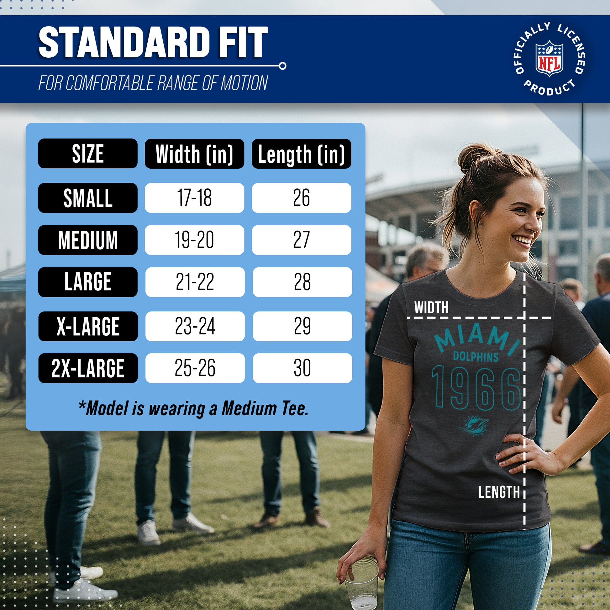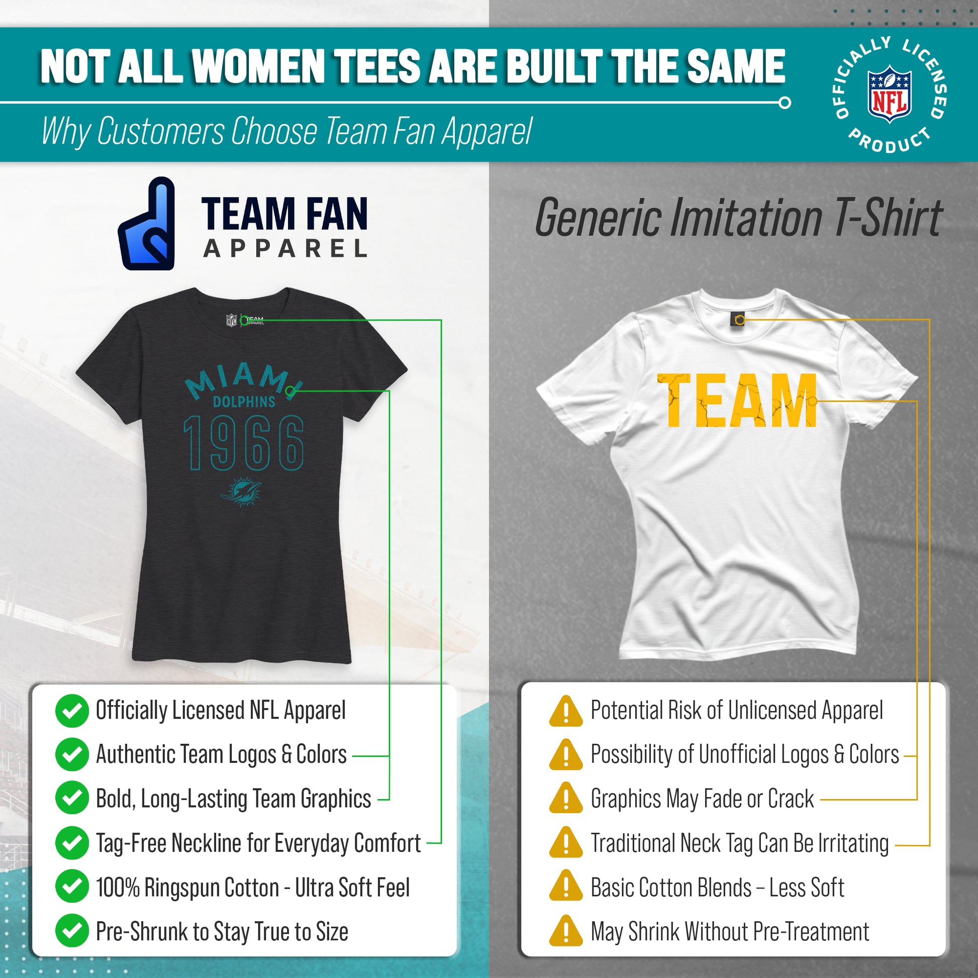 Calling all ladies! Get ready to rock game day with the Women's Team Fan Apparel Big Date T-Shirt! This comfortable and stylish Miami Dolphins womens tee is perfect for any female football fan, whether you're cheering on your favorite team at the stadium or watching from home. Made from a super soft cotton fabric , this shirt will keep you cool and comfortable all game long. The text, logo and official team color adds a touch of retro flair, while the tag-less design ensures itch-free wear. Whether you're a die-hard fan or just love a good simple look, this shirt is perfect for showing off your team spirit. Available in a wide range of women's sizes, it's suitable for all shapes and sizes! So grab your girlfriends and get ready to cheer on your team in style with the Women's Team Fan Apparel Big Date T-Shirt!