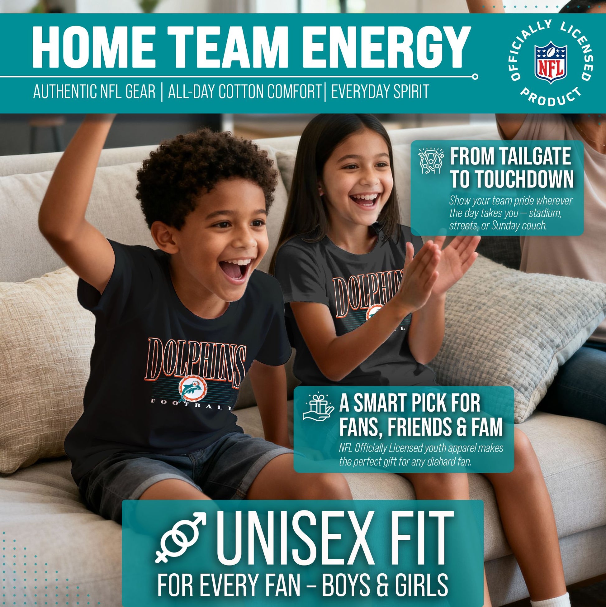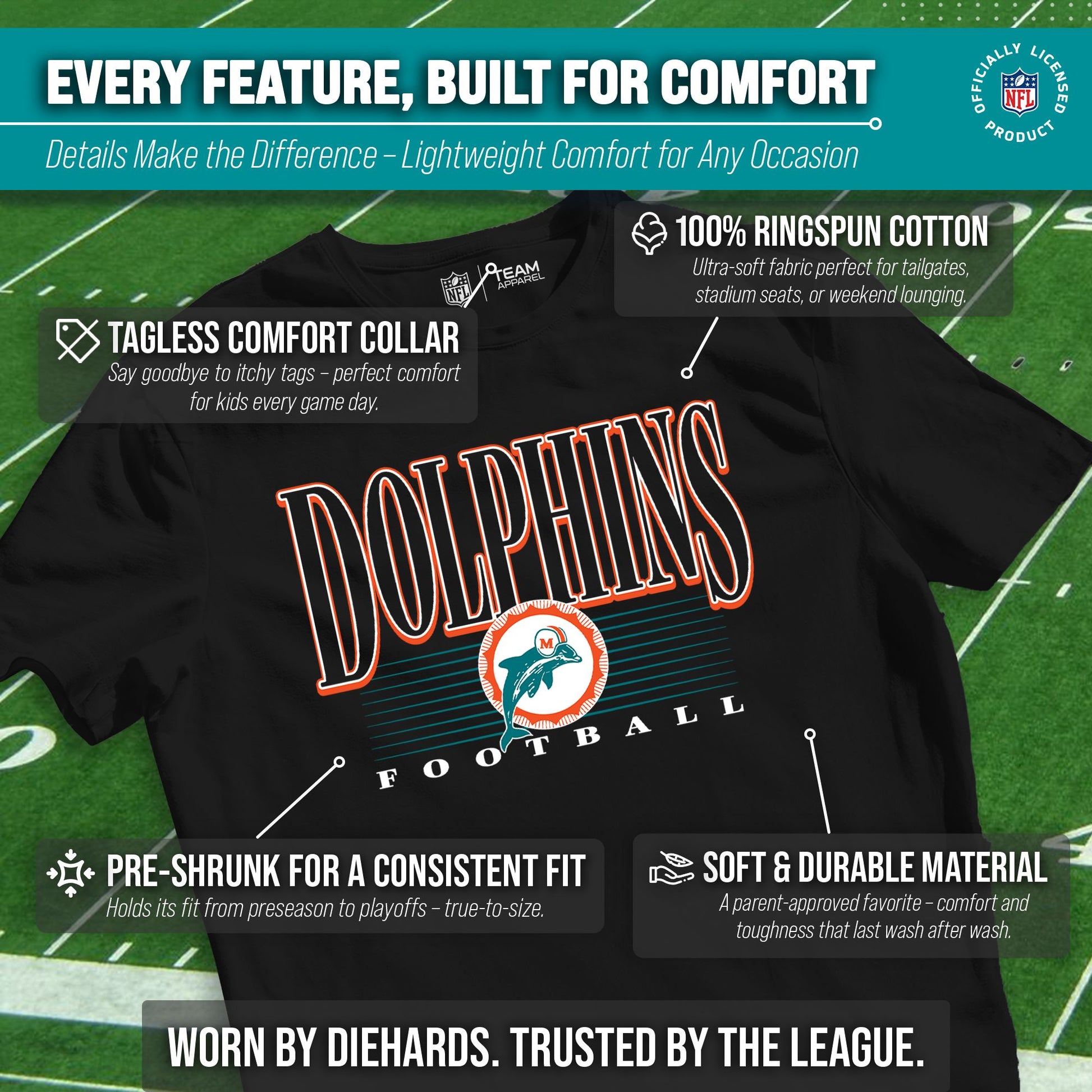 Miami Dolphins NFL Youth Overtime Blueprint Football T-Shirt Unisex Tag Free Comfortable - Black