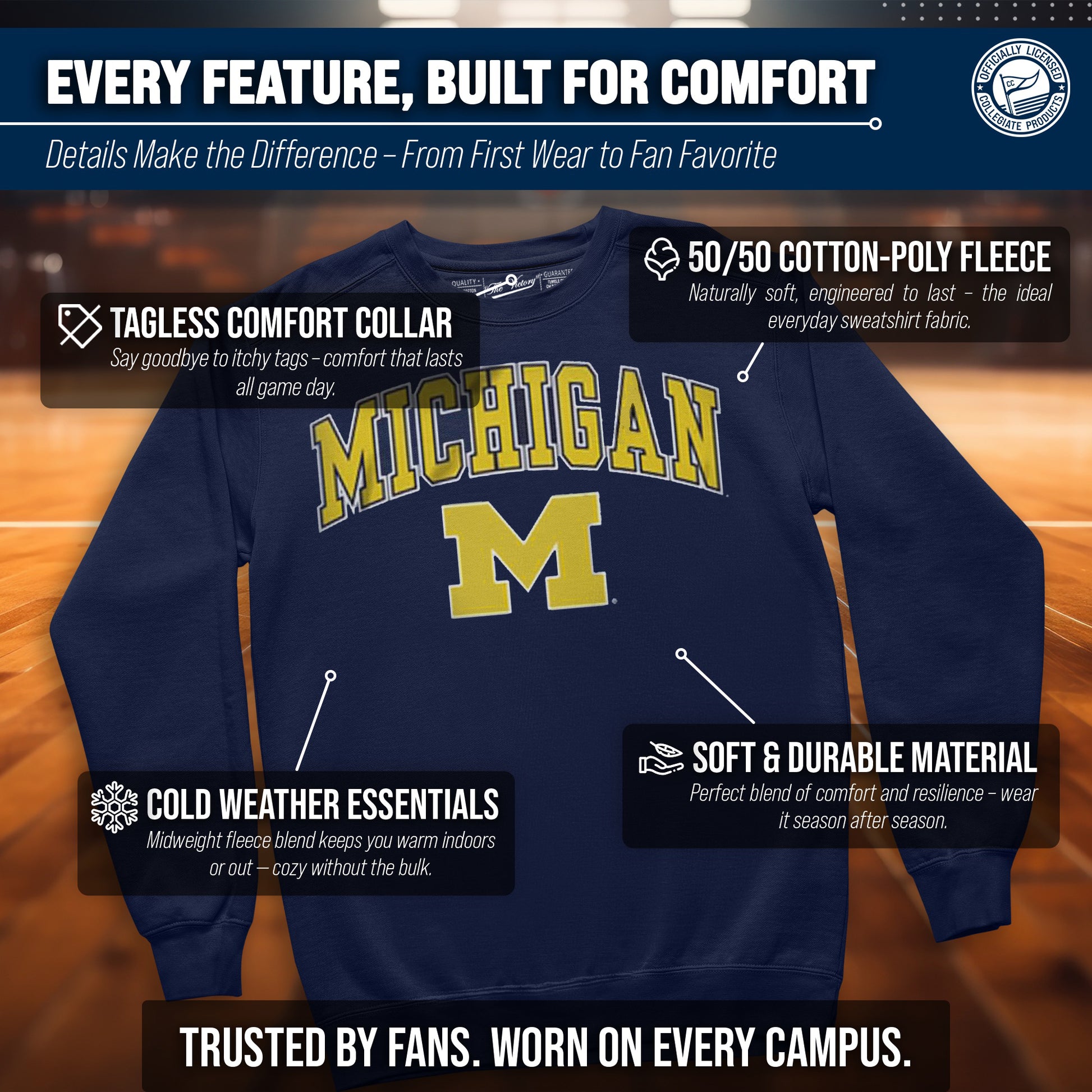 You know what's better than a perfect game? Scoring the best merch! Go ahead and show your team pride at the big game or any time! This premium-quality Gameday crew pullover is super comfy, fits both male and female adults, and comes in small, medium, large, XL, and XXL. So needless to say, it fits Michigan Wolverines fans of all types! Maybe you aren't a Michigan fan but you know someone who is? Don't worry! This high-quality design machine washable unisex fit crew is perfect for anyone who loves their team. We use only the highest quality screen printing techniques to bring you the most comfortable, durable, and stylish team apparel possible. It doesn't matter if your headed to the next big game or just hanging out at home, the love of your favorite team never stops. So, make sure the everyone know who's the number one team you support. Our crew sweatshirts make the perfect gift for Father's Day, birthdays, Christmas, and more.