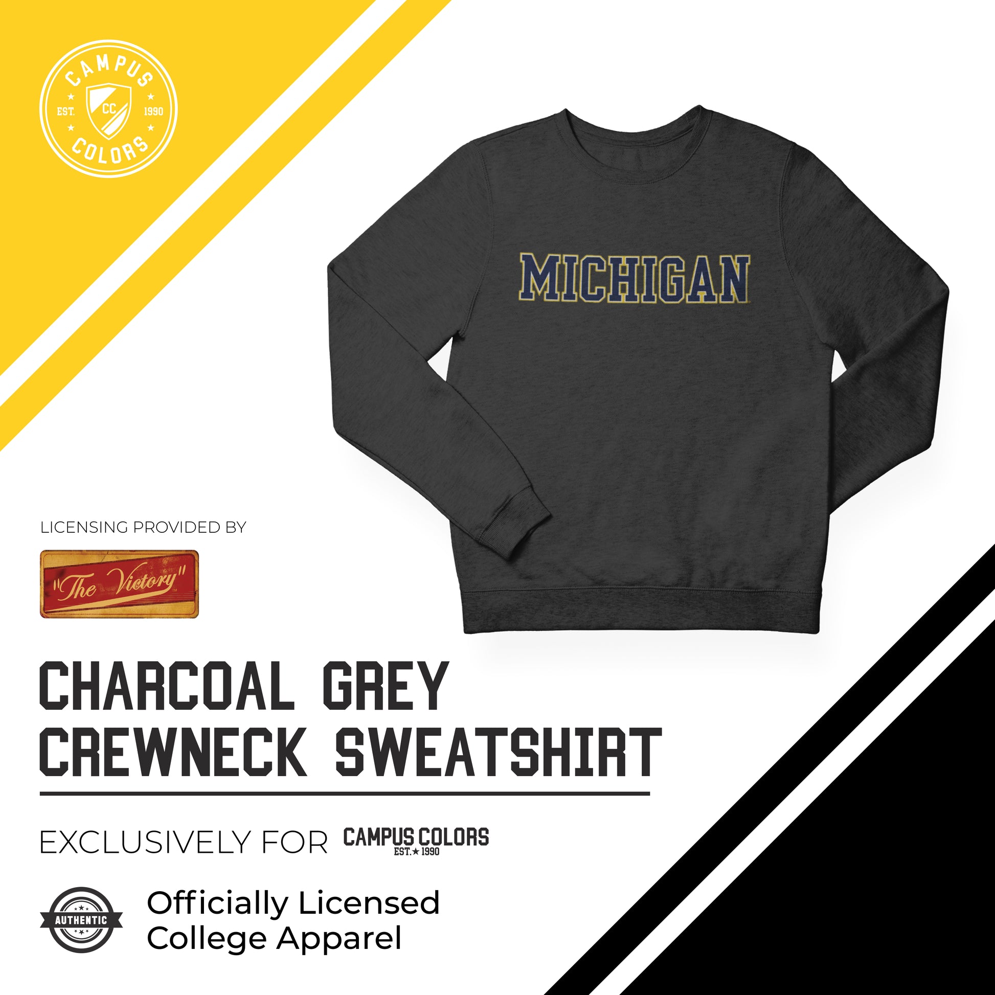 Michigan Wolverines NCAA Adult Charcoal Crewneck Fleece Sweatshirt - Charcoal