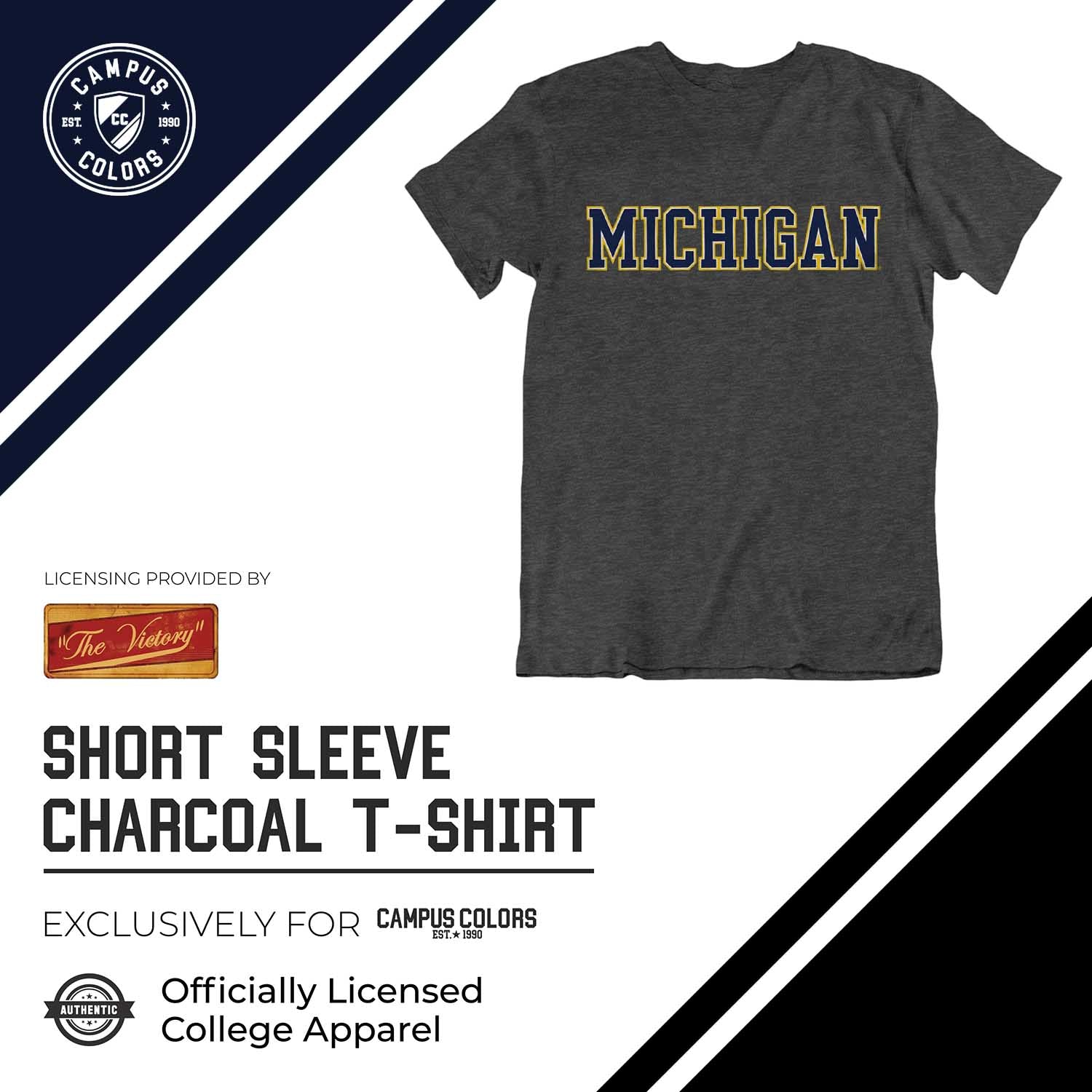 Michigan Wolverines Campus Colors NCAA Adult Cotton Blend Charcoal Tagless T-Shirt - Charcoal