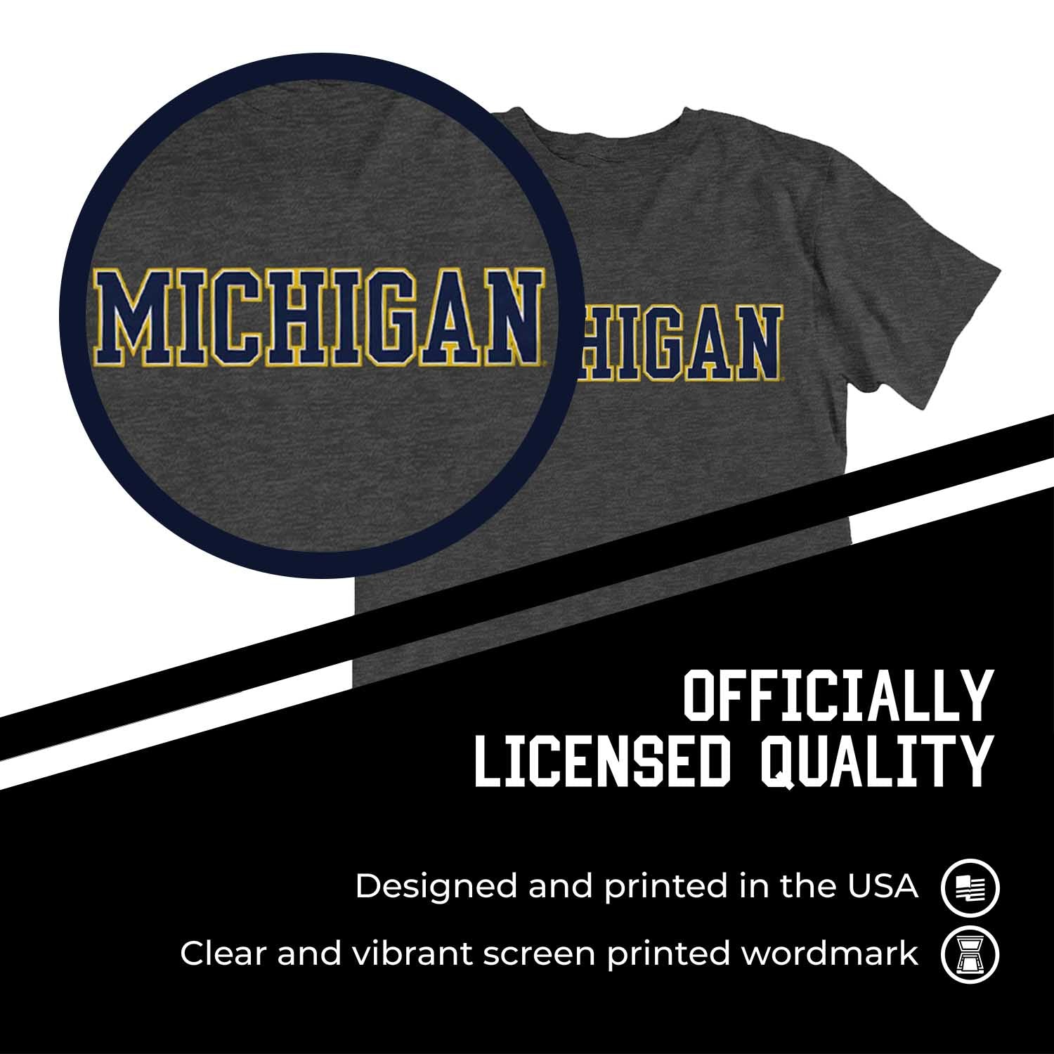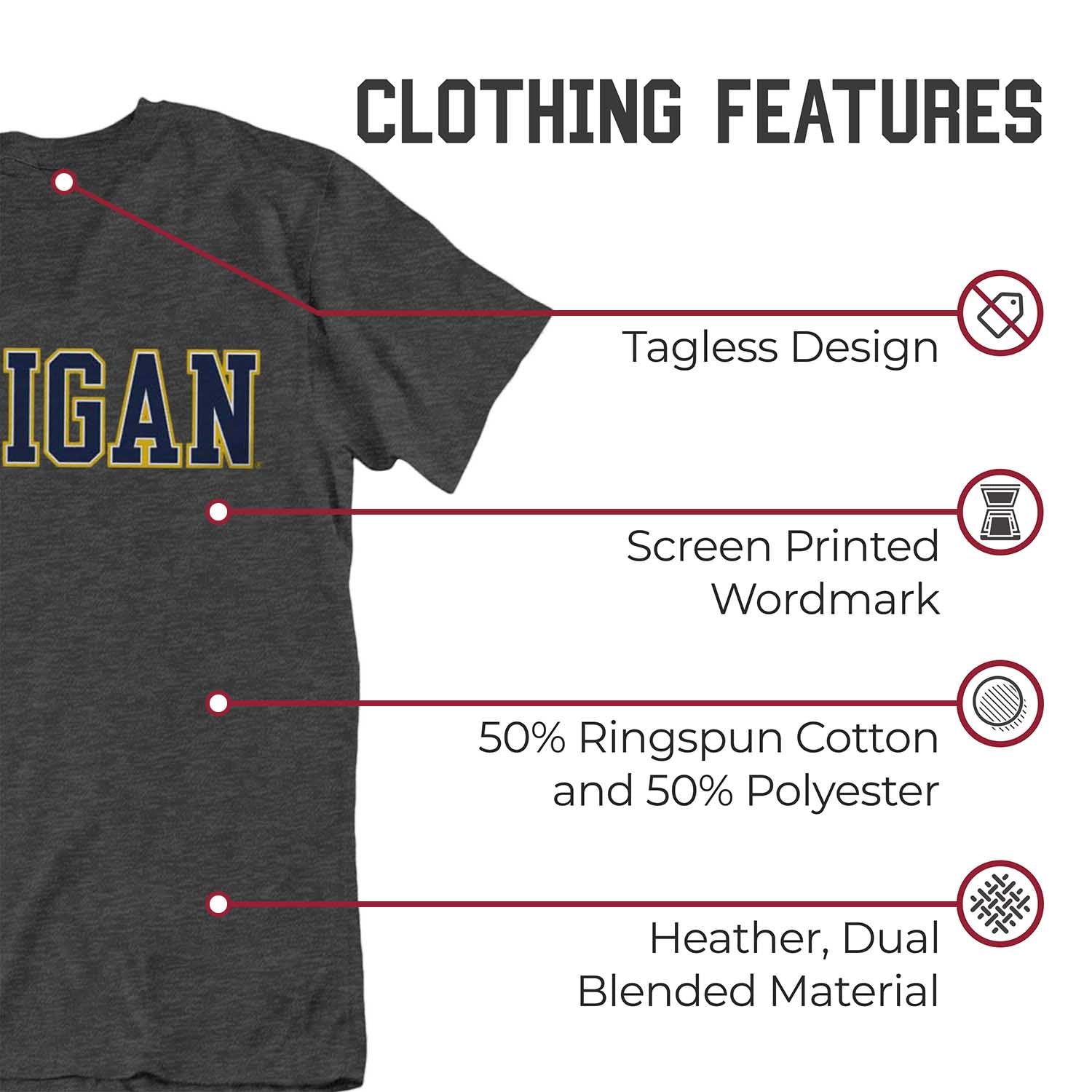 The Campus Colors Adult Heather College wordmark T-Shirt is the ultimate light, soft, and comfortable college tee. These college tshirts for mens and womens short sleeve shirt is the most versatile college or university apparel. Let us help you celebrate and showcase school pride with our durable and lightweight t-shirt. This tee features a quality, screen printed wordmark that will last wear after wear. The official wordmark design gives you the look of a loyal and seasoned sports or school fan and the unique heather, dual-blended material gives a trendy, distressed look without that heavy printed feel. Made of 50% ringspun cotton and 50% polyester, the dual blend material is extremely soft, smooth and comfortable. These Michigan t shirts comes without a tag, so you'll never feel annoyed or irritated by those pesky neck tags again! This tee is essential apparel for any college sports fan or university student. This classic college apparel t-shirt will stand out and is perfect for walking around campus, going to class, hanging out with friends, or wearing to the gym. It's the perfect college shirt for staying cool at a hot gameday tailgate! The unisex fit and design makes it ideal for both men and women! Quality college t shirt makes the best birthday, Christmas, or graduation gifts for current students, alumnus, upcoming graduates, proud parents or NCAA fans; Our university t-shirts run true to size. All quality logos and colors are officially licensed and are of the highest quality. Show off your school pride with this official short sleeve t-shirt! Be confident and wear this Michigan shirt knowing your fandom is superior.