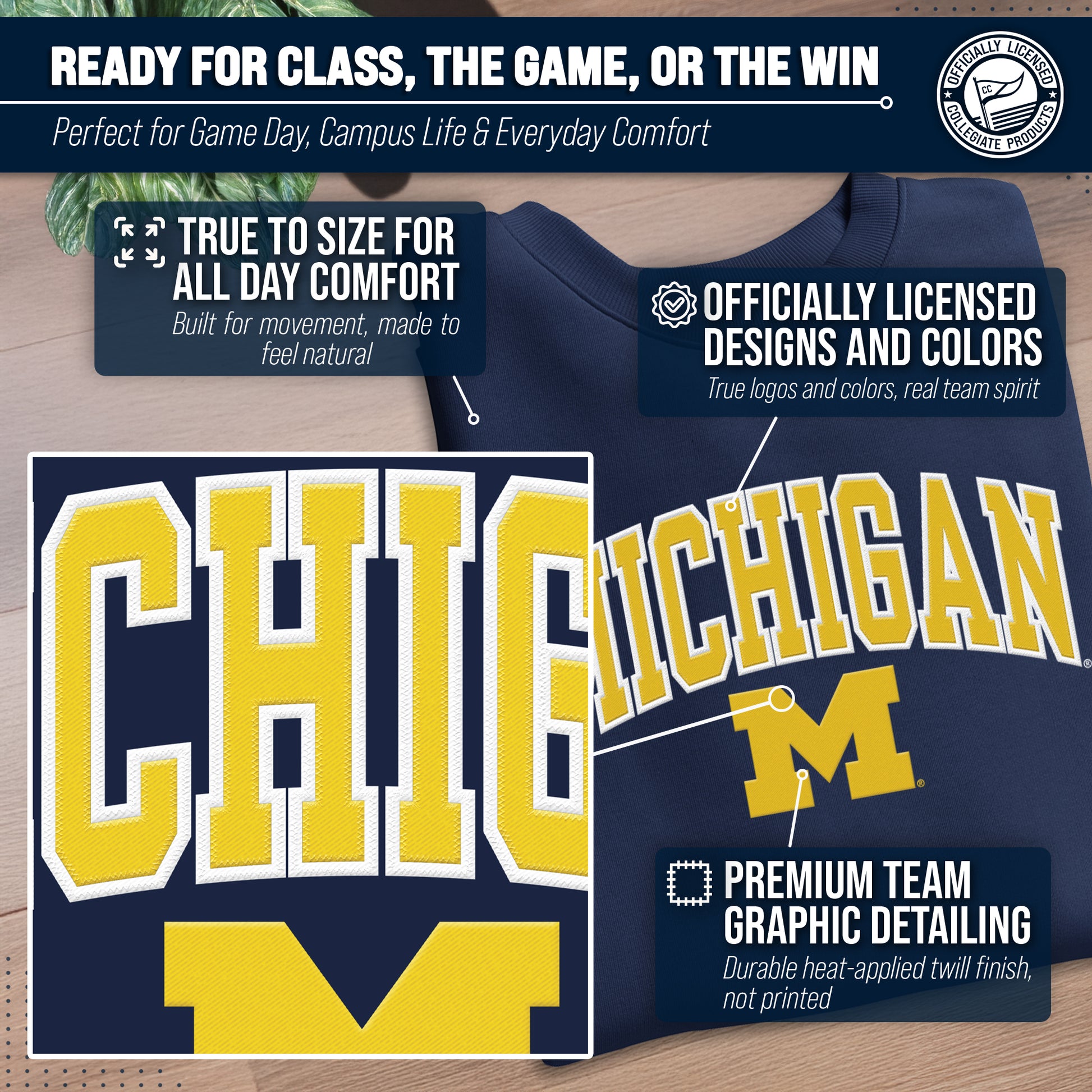 Michigan Wolverines Adult Tackle Twill Crewneck - Navy